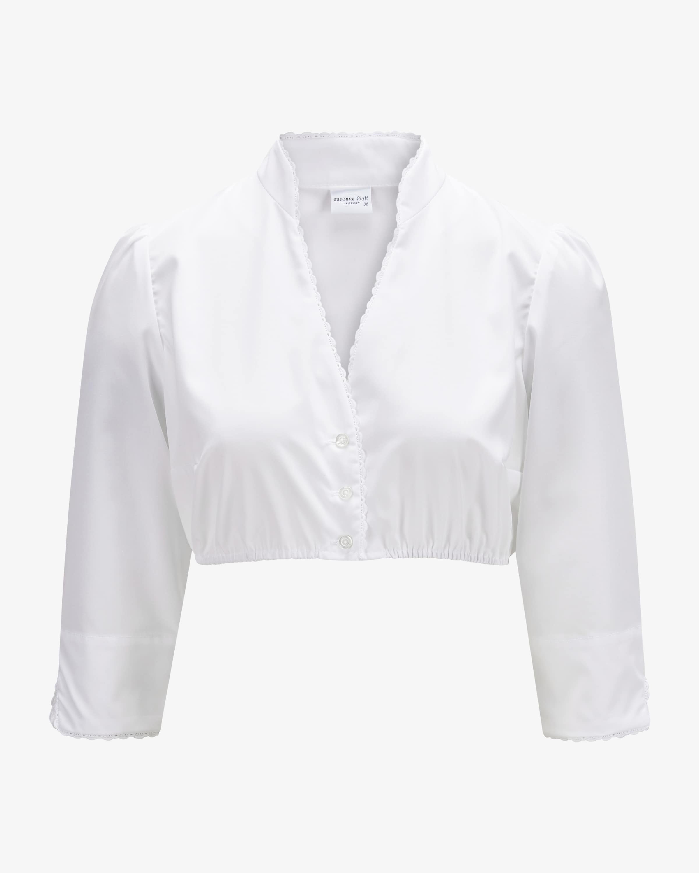 Kitty Dirndlbluse für Damen von Susanne Spatt in Weiß. Handgearbeitete Trachtenmode aus Salzburg – Das traditionelle Modell erhält dank hochwertiger Baumwolle sowie feiner Spitzenborten eine feminine Leichtigkeit.