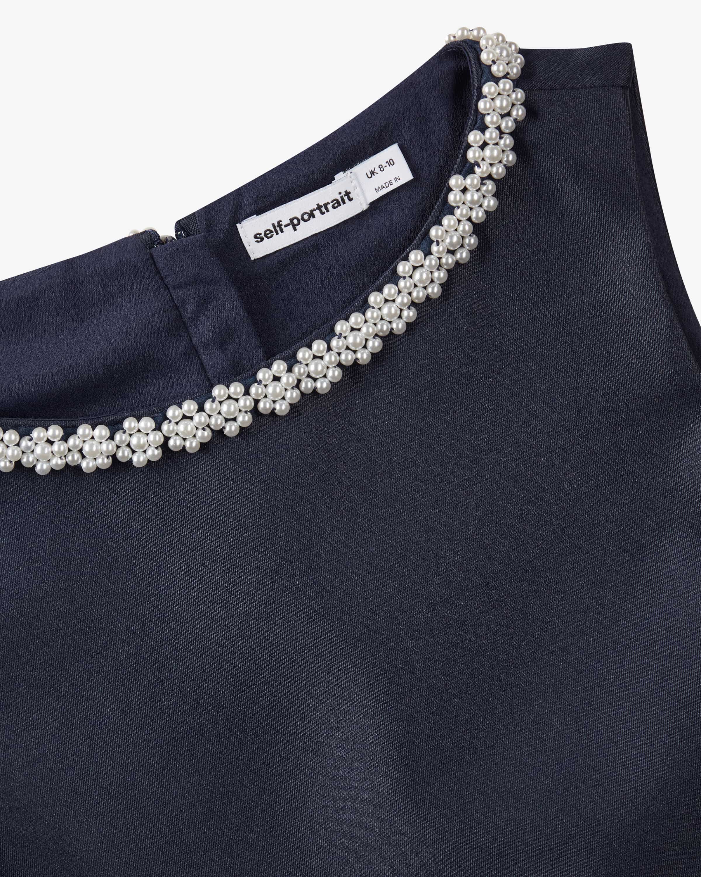 Kleid für Mädchen von Self-Portrait Kids in Navy. Die Londoner Marke bringt ihren eleganten Stil nun auch in die Kindermode – verspielt, mädchenhaft, besonders. Das Modell in changierender Aufmachung überzeugt mit Perlen besticktem Ausschnitt, während klassische Details den Gesamtlook verspielt abrunden. Ein festiver Look der Ihre Kleine strahlen lässt.