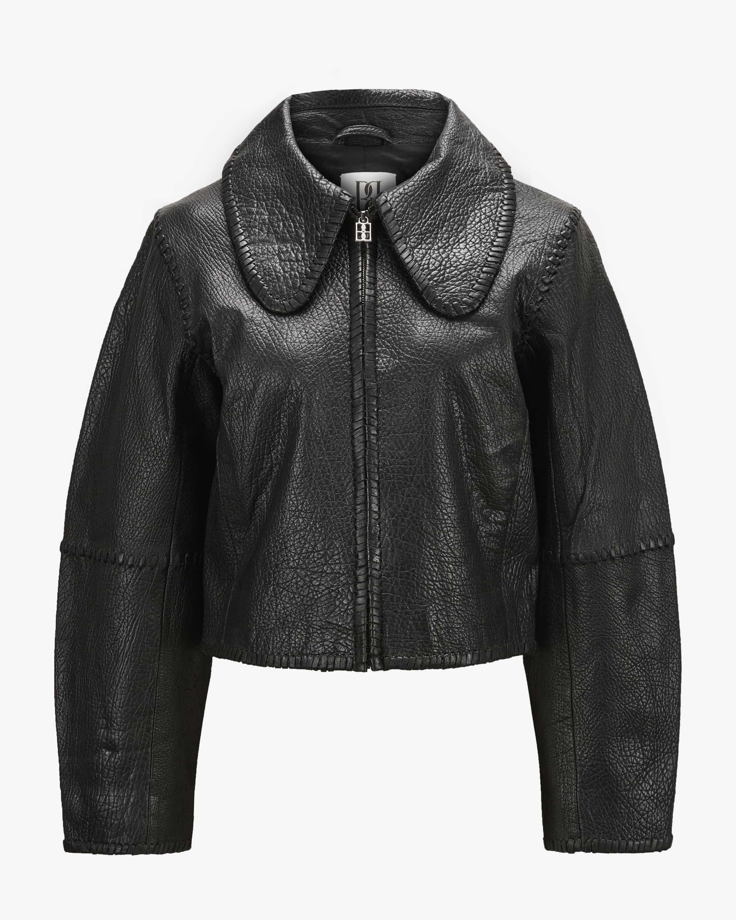 Lederjacke Rowani für Damen von By Malene Birger in Schwarz. Das dänische Label verbindet skandinavischen Minimalismus mit femininer Raffinesse – stilvoll, klar, modern. Auch dieses Modell besticht dank des strukturierten Nappaleders mit einer angenehmen Haptik sowie modischer Ausstrahlung. Zugleich setzt der markante Kragen gepaart mit extravaganten Ziernähten stilvolle Akzente.
