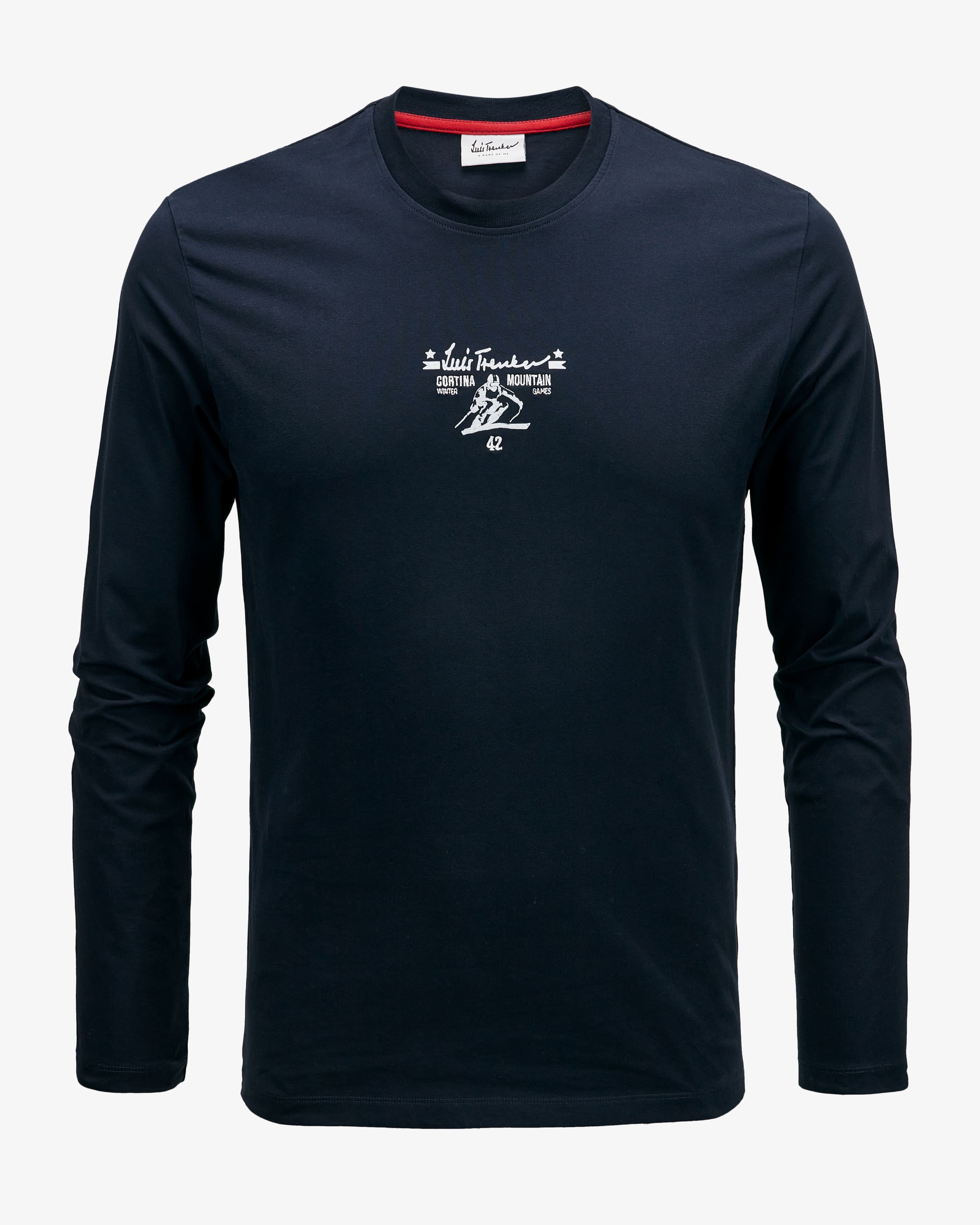 Luclaudio Longsleeve für Herren von Luis Trenker in Marine. Das Modell der traditionsreichen Trachten-Marke überzeugt dank der legeren Schnittführung aus angenehmer Baumwoll-Qualität in sportiver Aufmachung, während der Logo-Druck im Winter-Motiv das Gesamtbild gekonnt vollendet.