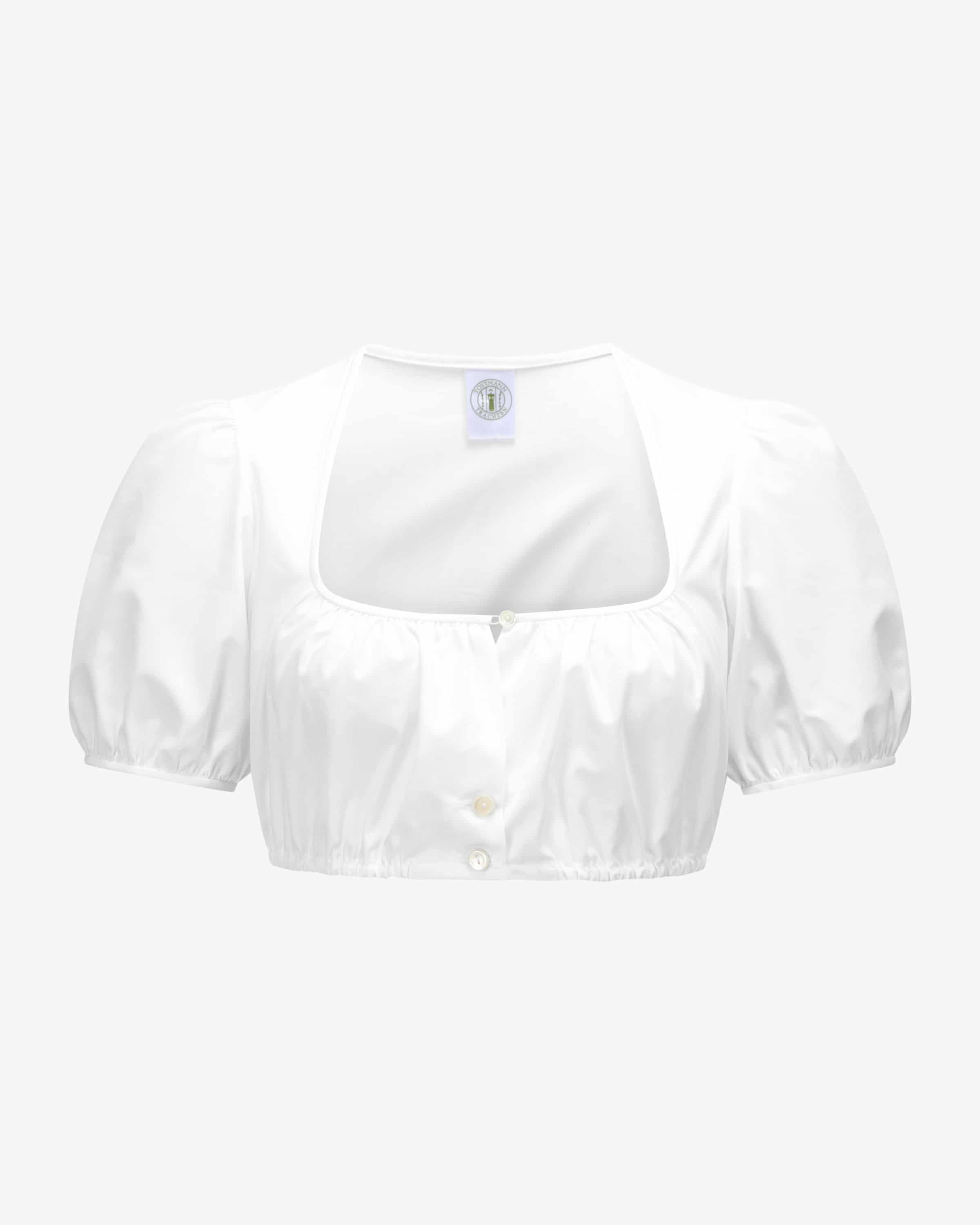 Mattsee Dirndlbluse für Damen von Tostmann in Weiß. Das Modell avanciert dank dem minimalistischen Design mit geknöpftem Karree-Ausschnitt zum stilvollen Liebling für Ihre liebsten Trachten-Looks.