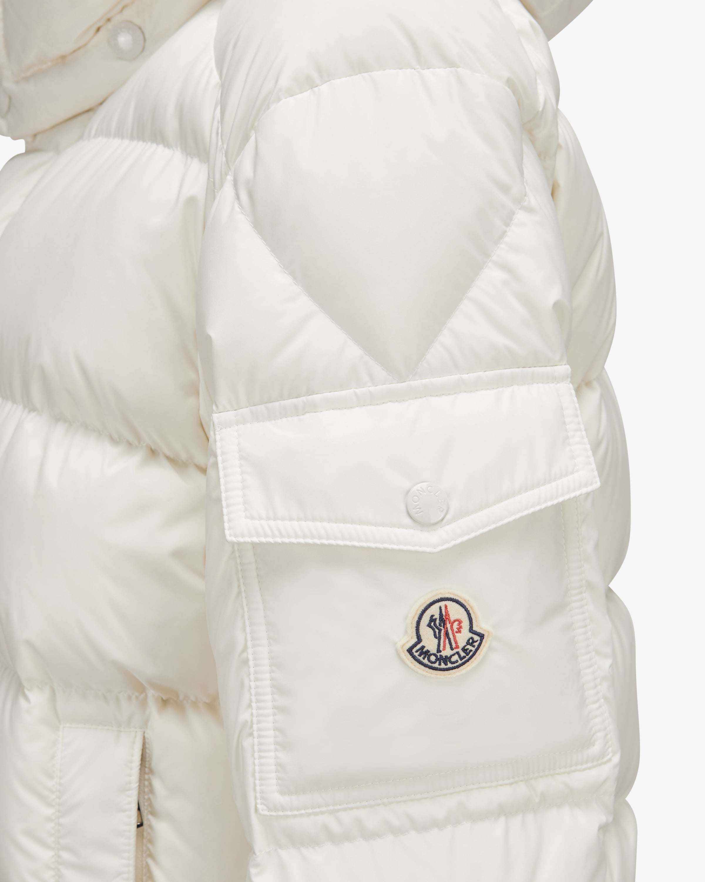 Maya Daunenjacke für Damen von Moncler in Creme. Denkt man an hochwertige, warme Daunenjacken, kommt einem unweigerlich das italienische Traditionslabel Moncler in den Sinn. Auch mit diesem Modell präsentiert das Label dank der hochwertigen Daunen-Feder-Füllung einen sportiven Begleiter, während die labeltypische Logo- Applikation und die abnehmbare Kapuze einen vielseitigen Favoriten kreieren.