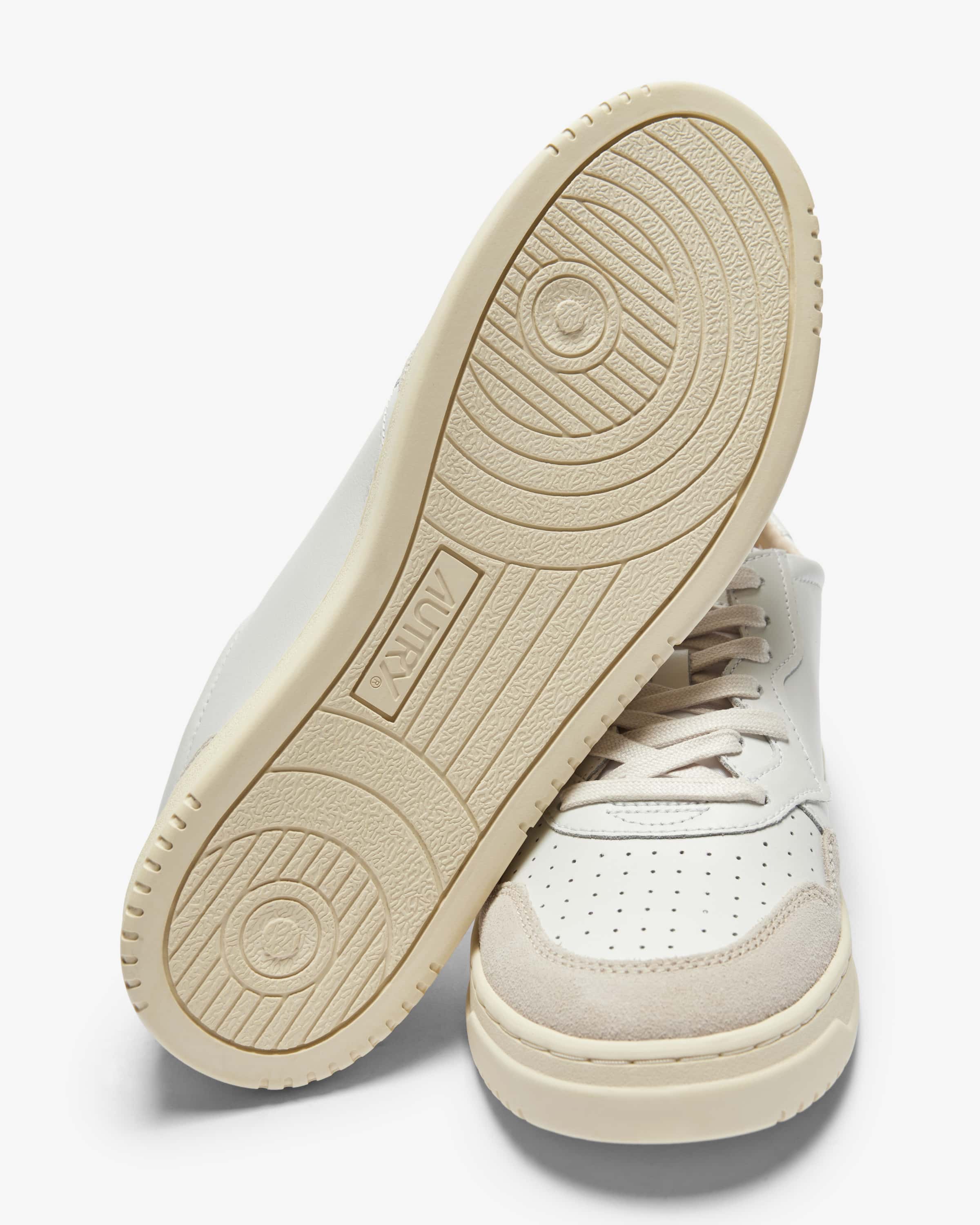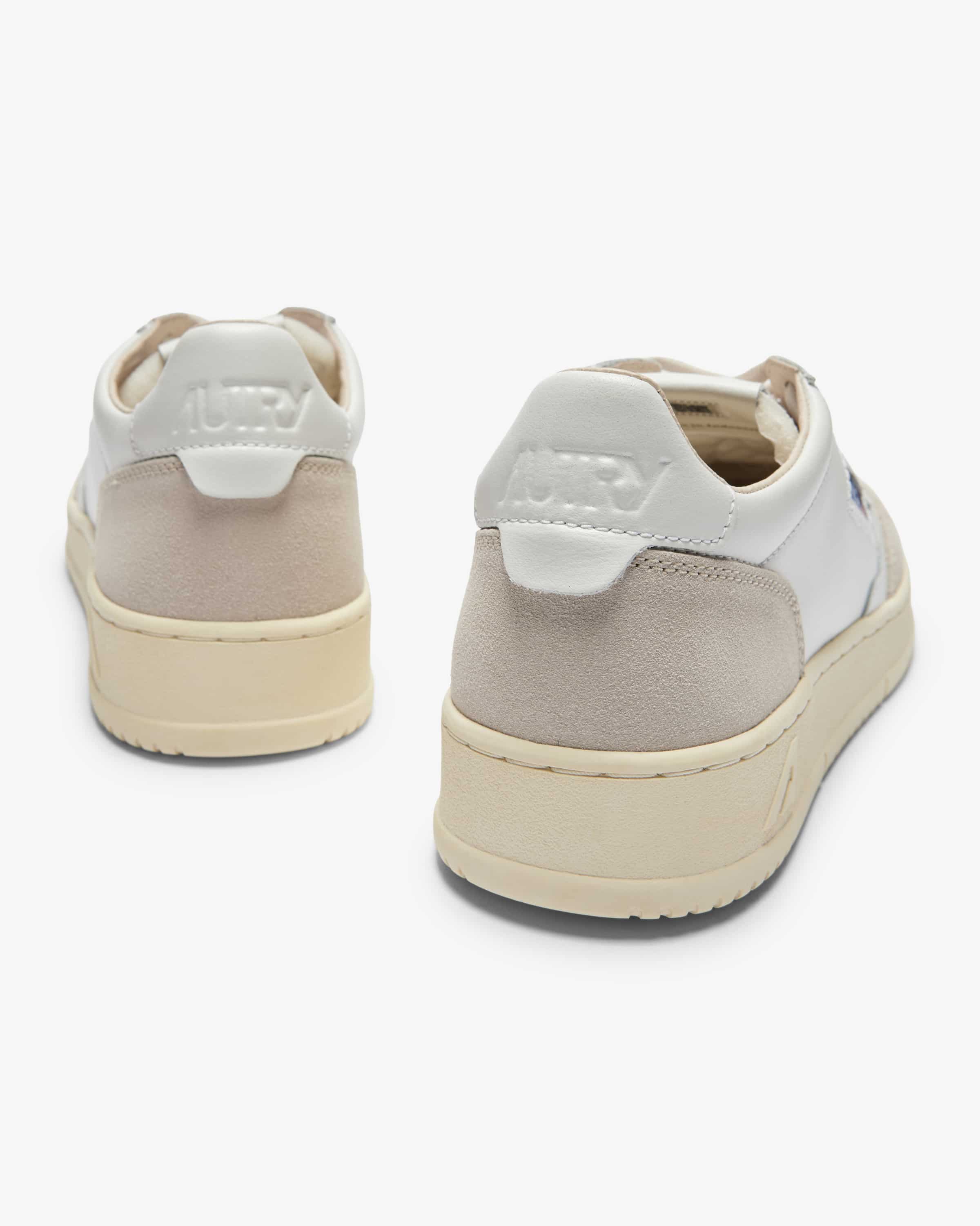 Sneaker für Herren von Autry in Weiß und Stein. Das 1982 in Dallas gegründet Label etablierte sich zu einem der beliebtesten Sneaker- Marken der 1980er Jahre und feierte 2019 sein Comeback. Auch dieses Modell aus hochwertigem Leder präsentiert sich in zeitlos-sportivem Look. Die amerikanische Flaggen- Applikation, welche als das Markenzeichen des Labels gilt, vollendet das Gesamtbild harmonisch, während die Kombination aus Glatt- und Veloursleder das gewisse Etwas verleiht. Zugleich sorgt die Frottee- Innenseite für angenehmen Tragekomfort.