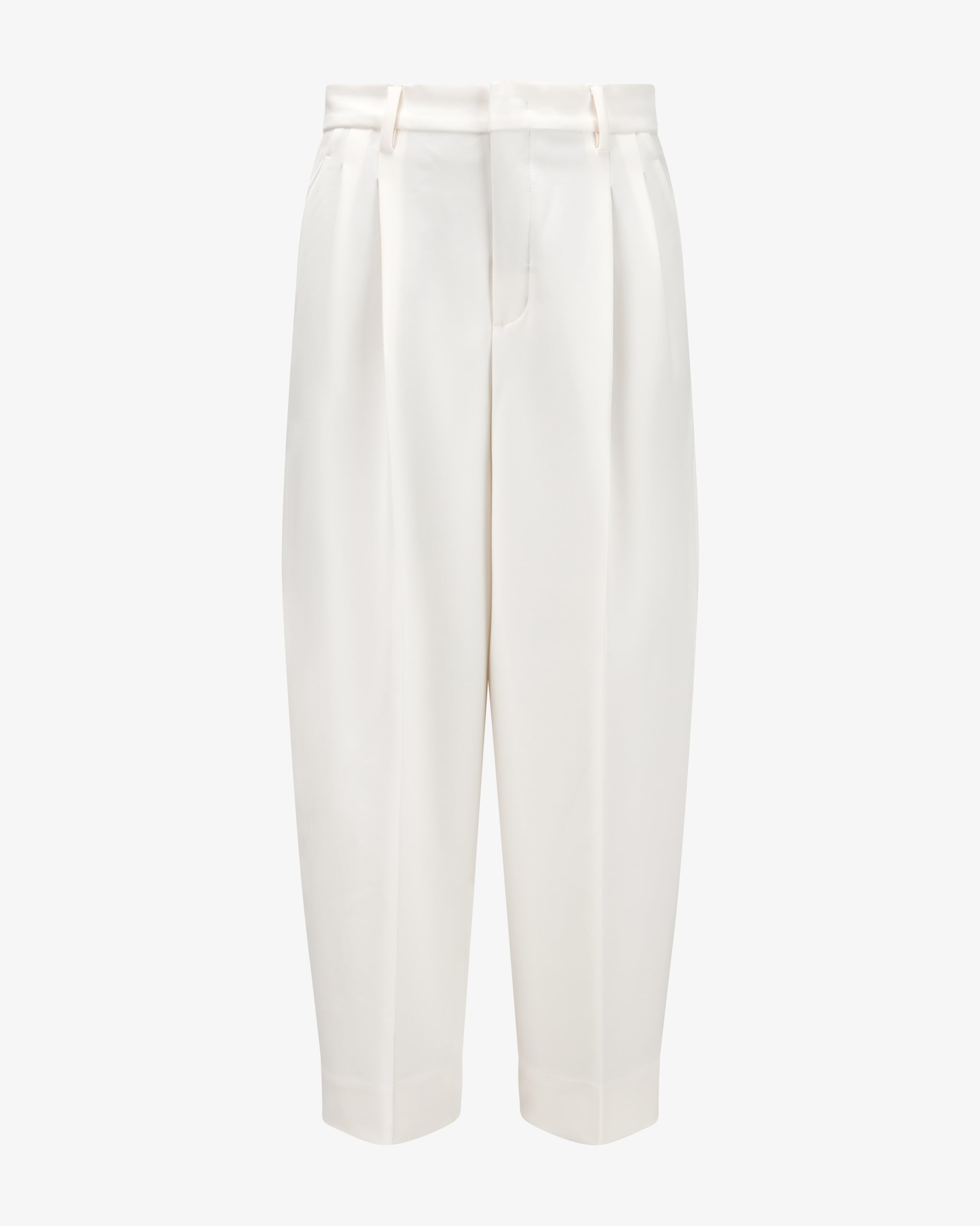 Noa Crop 7/8-Hose für Damen von Rossi in Creme. Das verkürzte Modell überzeugt mit elastischer Material-Qualität und weiter Schnittführung, während elegante Details wie die Bundfalten einen stilsicheren Begleiter für vielseitige Looks im Casual-Chic-Style kreieren.