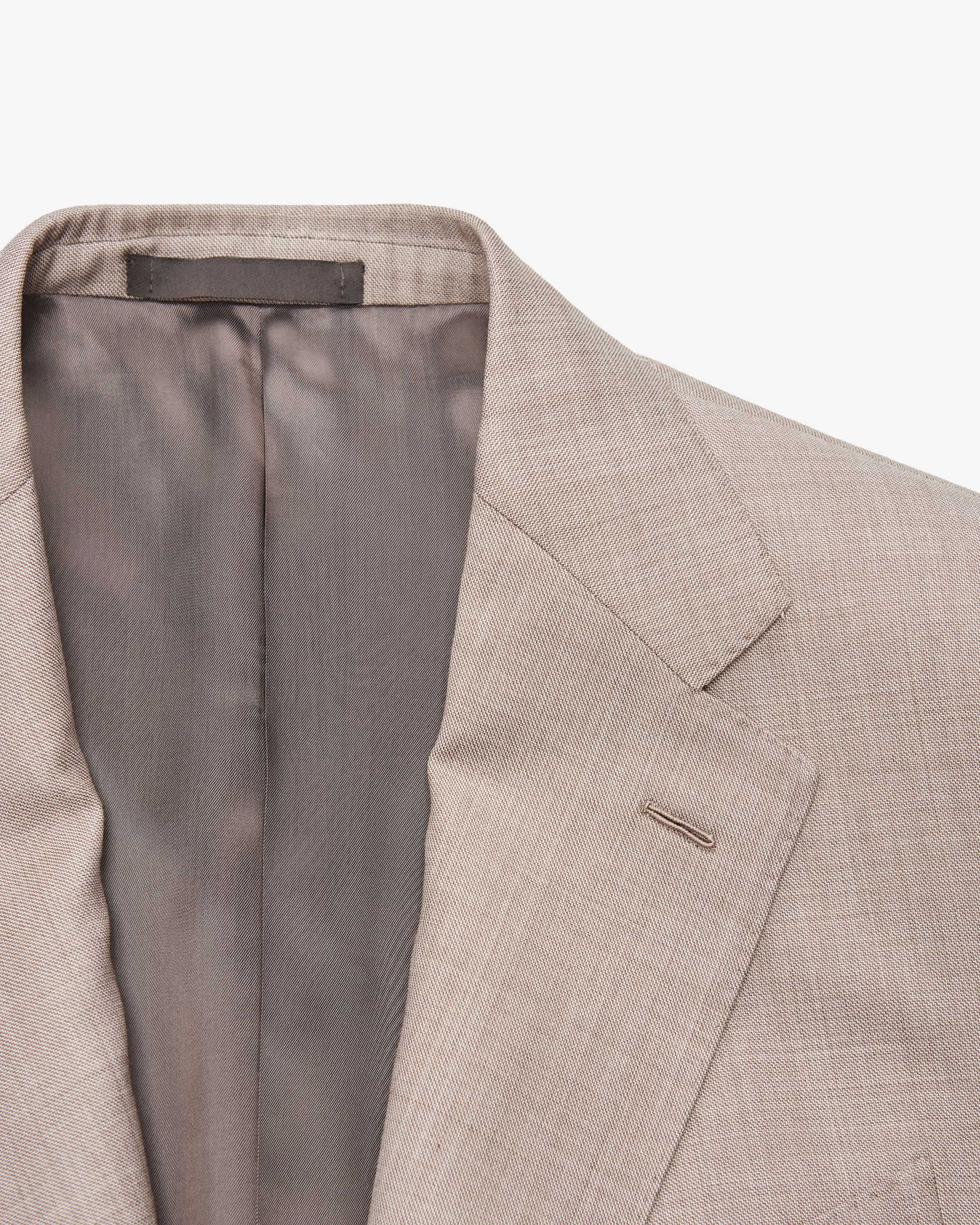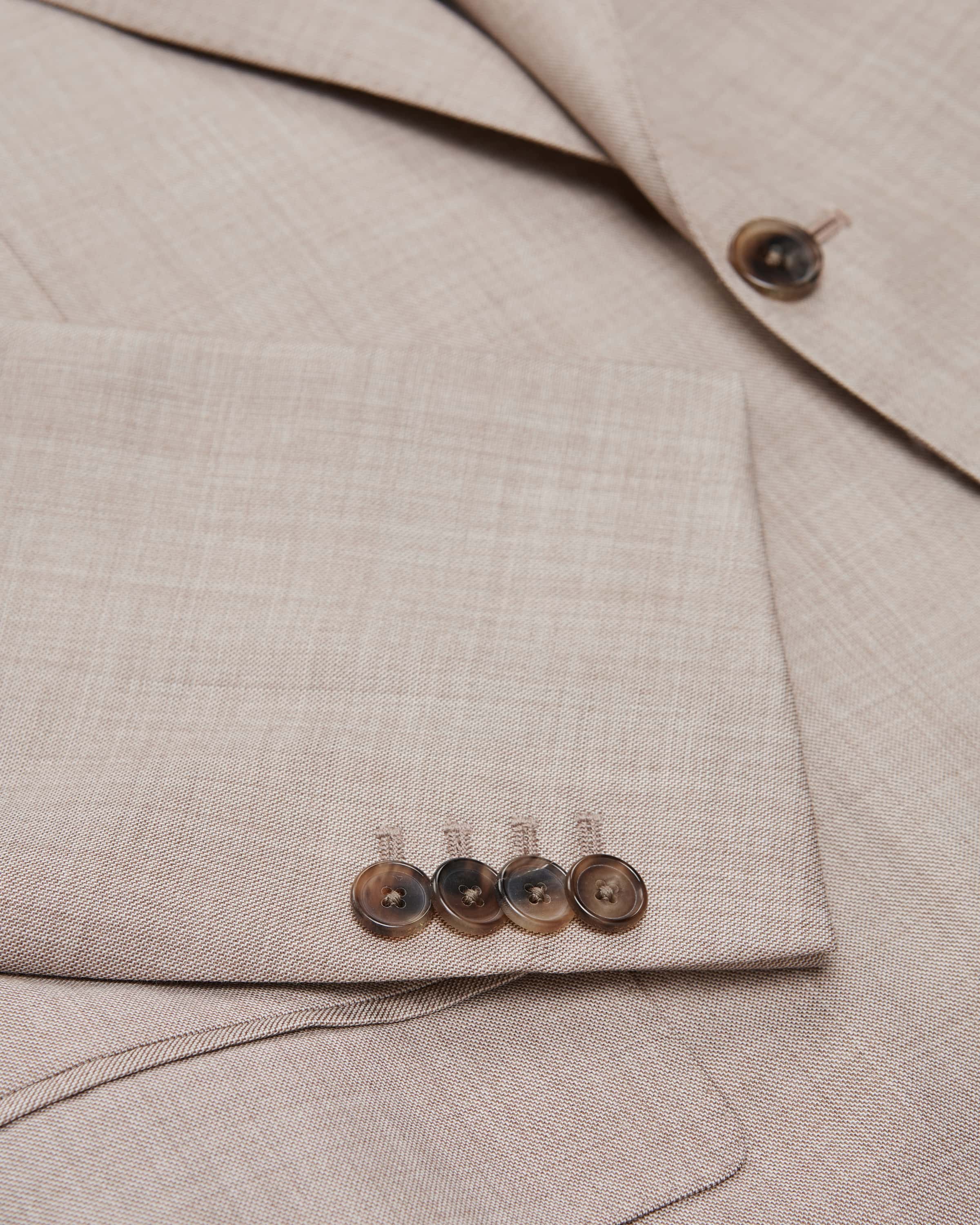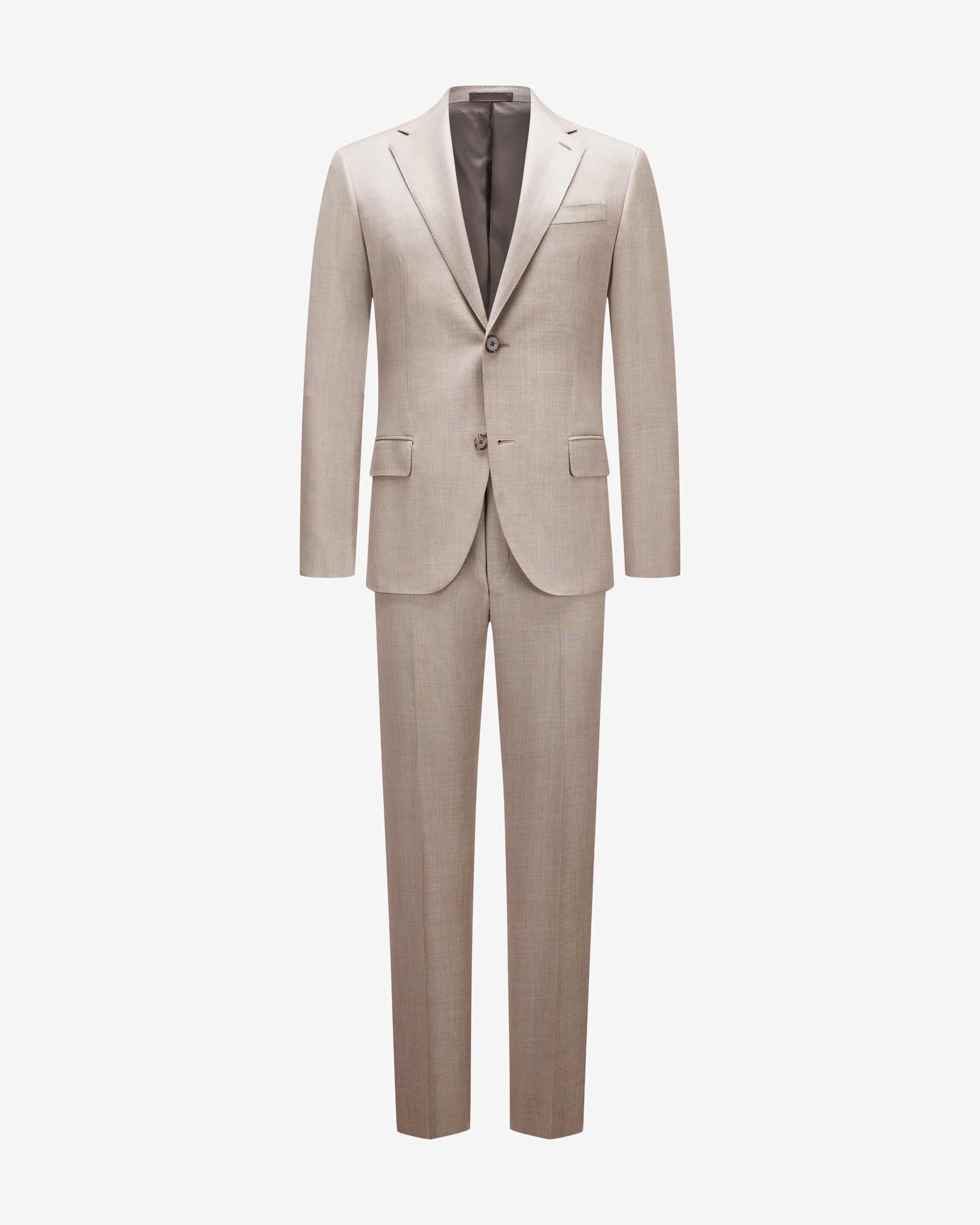 Norma Anzug für Herren von Caruso in Sand. Das antaillierte Modell überzeugt mit leichter Woll-Verarbeitung, die für angenehmen Tragekomfort sorgt. Das dezente Strukturmuster verleiht dem zweiteiligen Modell einen melierten Effekt und rundet das klassische Gesamtbild gekonnt ab.