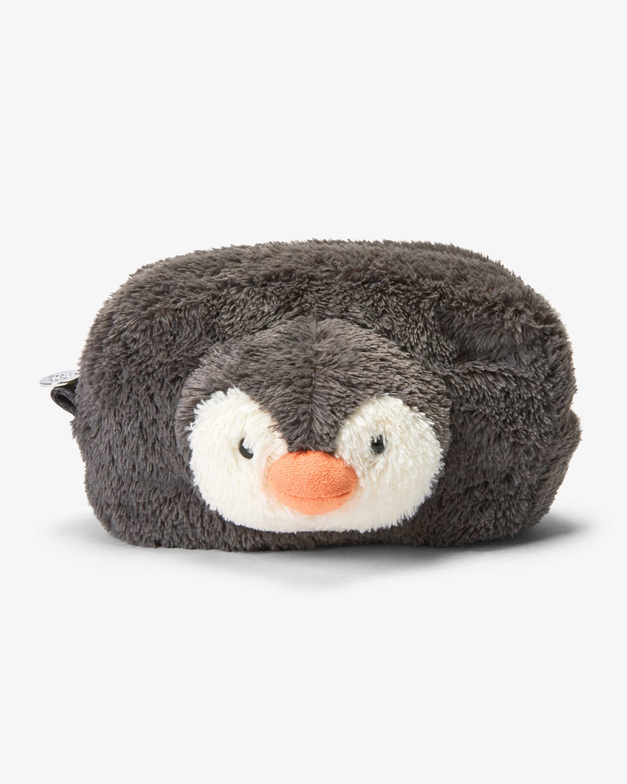 Peanut Pengiun Pouch für Kinder von Jellycat in Grau. Das Label, welches seit 1999 in London Kuscheltiere entwirft, begeistert durch die Kombination aus luxuriösen Stoffen sowie süßen und kreativen Designs. Das Täschchen besticht dank des flauschigen Stofftier-Materials und der fröhlichen Pinguin-Applikation, die nicht nur Kinder am Südpol zum Spaß haben einlädt.