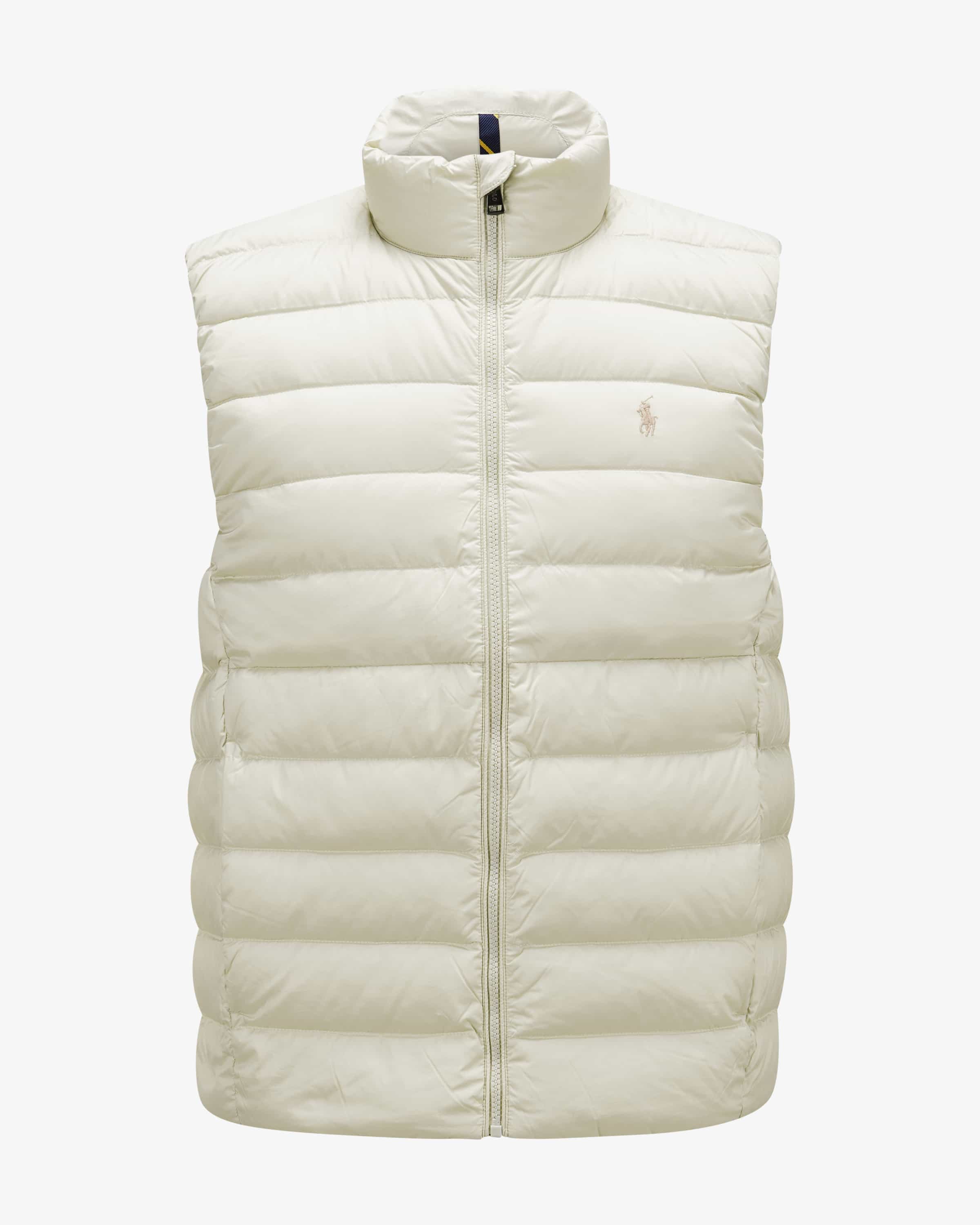 Performance Daunenweste für Herren von Polo Ralph Lauren in Ecru. Eine Ikone des amerikanischen Lifestyles – sportlich, preppy, klassisch. Dieses Modell überzeugt mit wärmender Daunen-Feder-Füllung und wasserabweisender Eigenschaft, während die matt-changierende Stepp-Aufmachung einen maskulinen Begleiter für Layering-Looks schafft. Zugleich können Sie die Jacke dank der verstaubaren Funktion ideal mitnehmen.