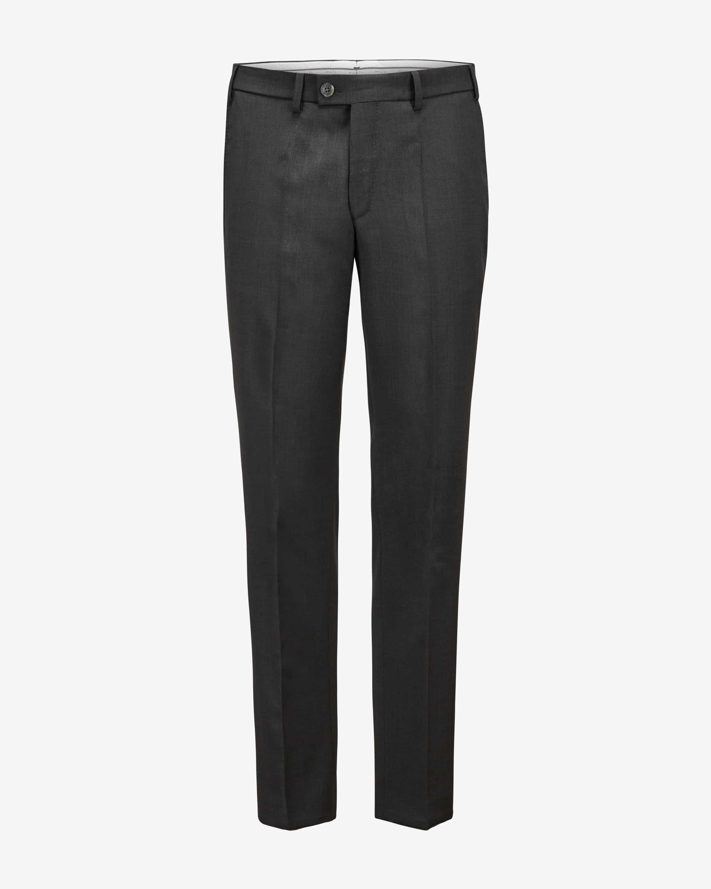 Piacenza Businesshose für Herren von Hiltl in Anthrazit. Das Modell begeistert durch zeitloses Design in edler Flanell-Qualität aus reiner Schurwolle. Bügelfalten und die mit Stoßband verarbeiteten Säume ergänzen die maskuline Aufmachung stilvoll.