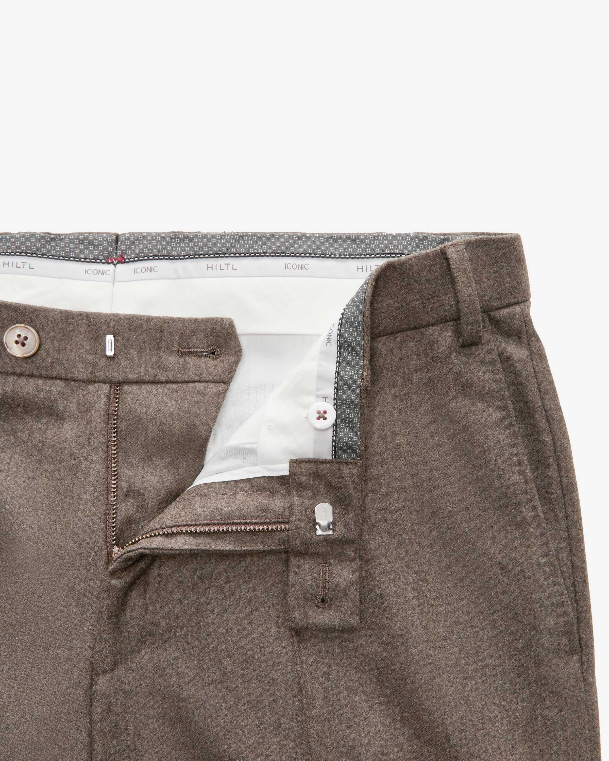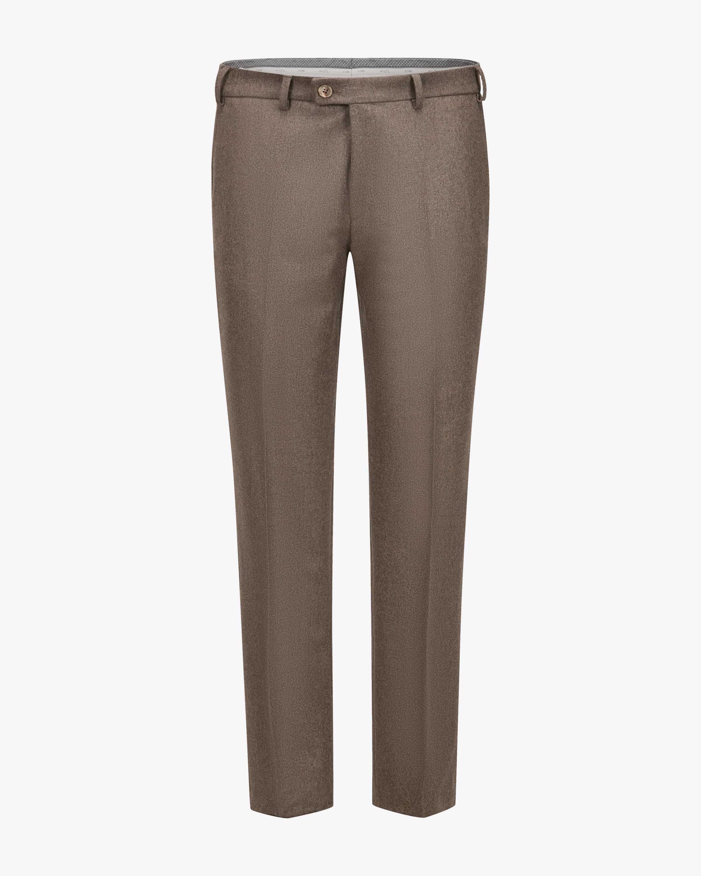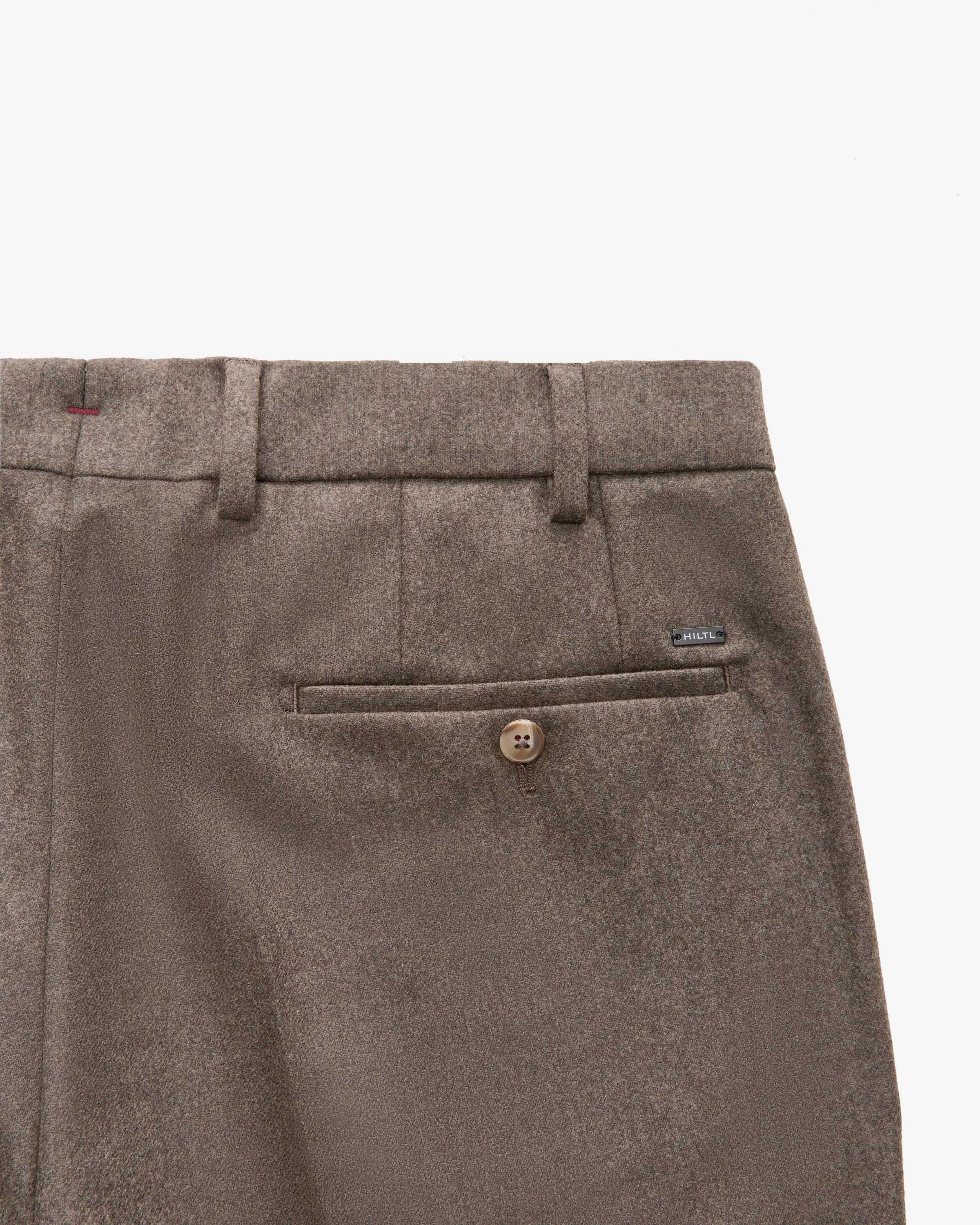Piacenza Hose Contemporary Fit für Herren von Hiltl in Oliv. Das Modell begeistert durch zeitloses Design in edler Flanell-Qualität aus reiner Schurwolle. Bügelfalten und die mit Stoßband verarbeiteten Säume ergänzen die maskuline Aufmachung stilvoll.