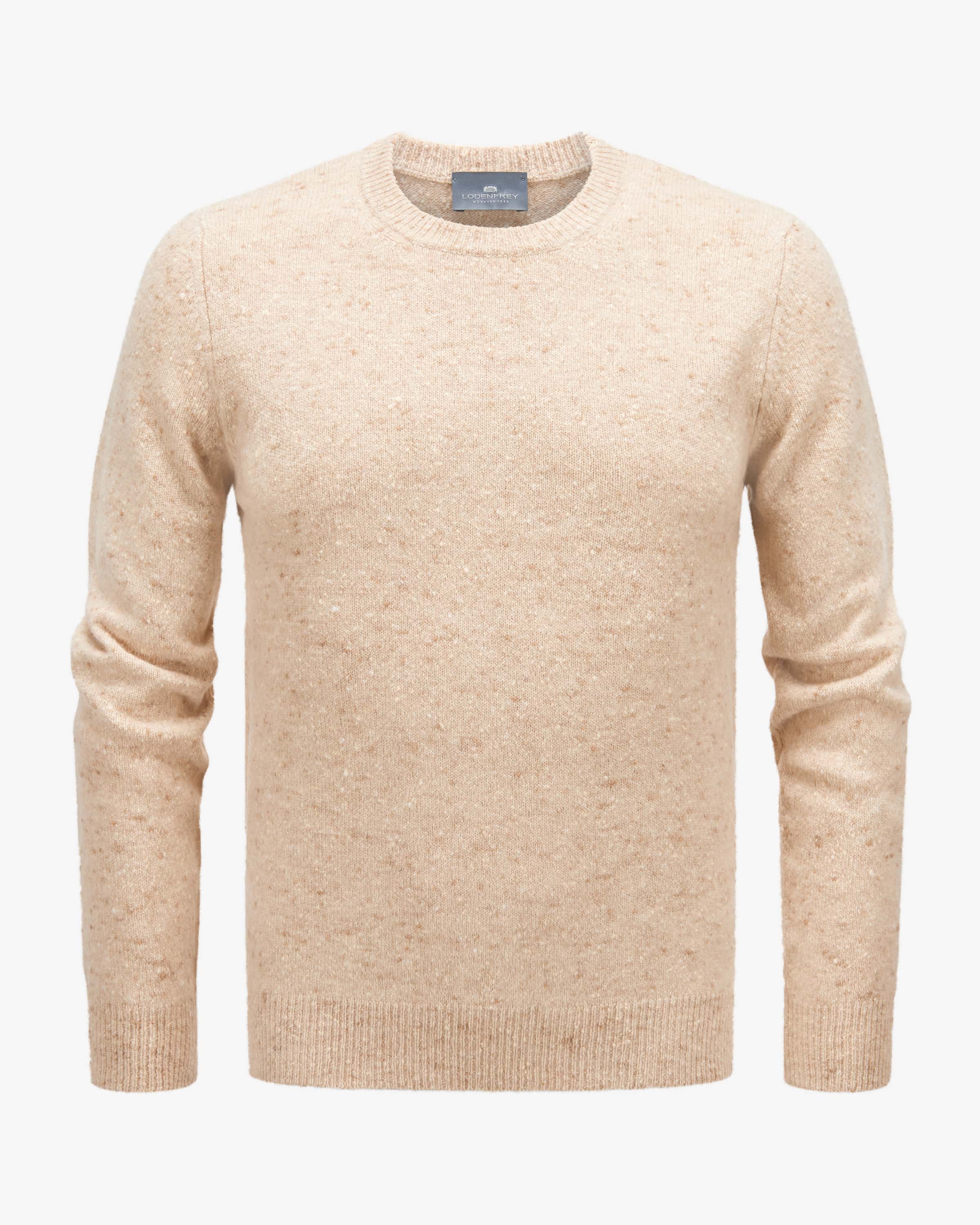 Pullover für Herren von LODENFREY in Beige und Creme. Das Casual Modell zeichnet sich durch seinen weichen Griff aus dank der hochwertigen Woll-Cashmere- Verarbeitung in Bouclé-Optik, während klassische Details den maskulinen Look unterstreichen.