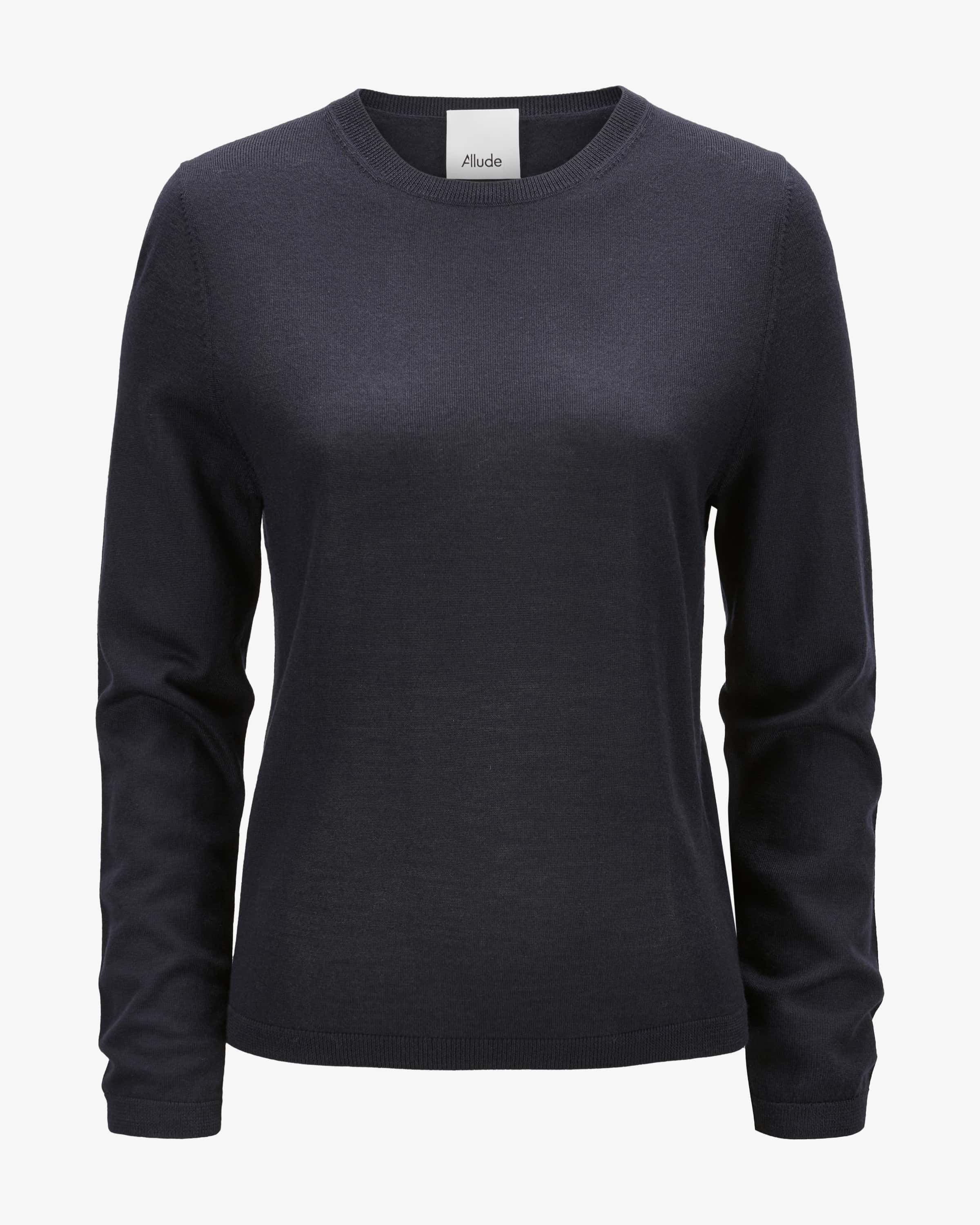 Pullover für Damen von Allude in Navy. Das Münchner Label wurde 1993 von Andrea Karg gegründet und ist bekannt für luxuriöse Strickmode. Auch dieses Modell aus hochwertiger Schurwoll-Qualität überzeugt mit angenehmen Tragemomenten, während die feine Haptik ein zeitloses Essential kreiert, das sich vielseitig stylen lässt.
