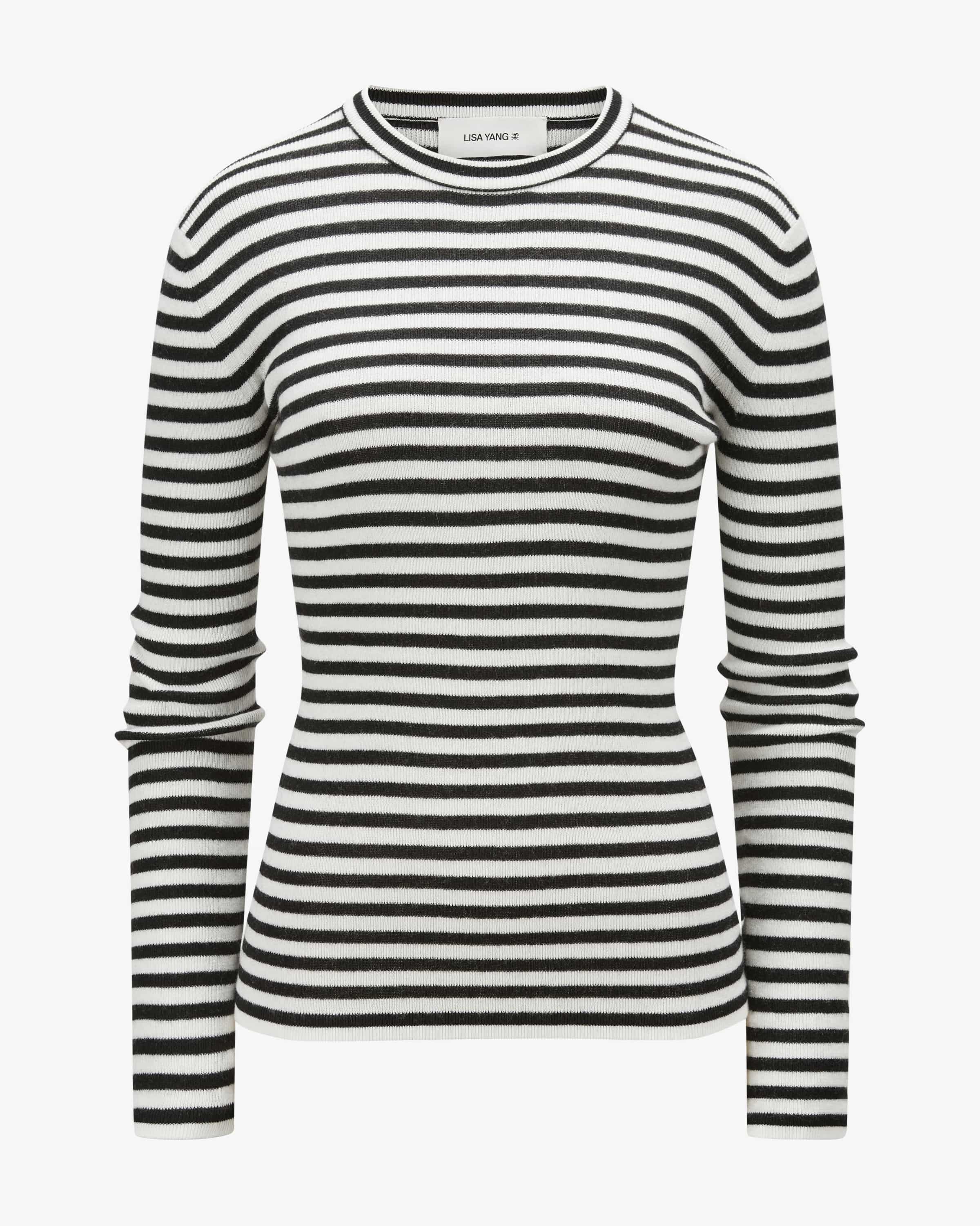 Pullover Vivian für Damen von Lisa Yang in Salt und Noir. Seit 2014 begeistert das skandinavische Label Lisa Yang mit zeitlos-eleganter Damenmode aus feinstem Cashmere, gemacht für die moderne und stilsichere Frau, die sich in ihrer Kleidung wohlfühlen möchte. Mit diesem schmal geschnittenen Modell hat die Designerin dank des leichten und elastischen Baumwoll-Cashmere-Mix ein besonders angenehmes Strick-Essential geschaffen, welches durch das Streifen-Muster modern komplettiert wird.