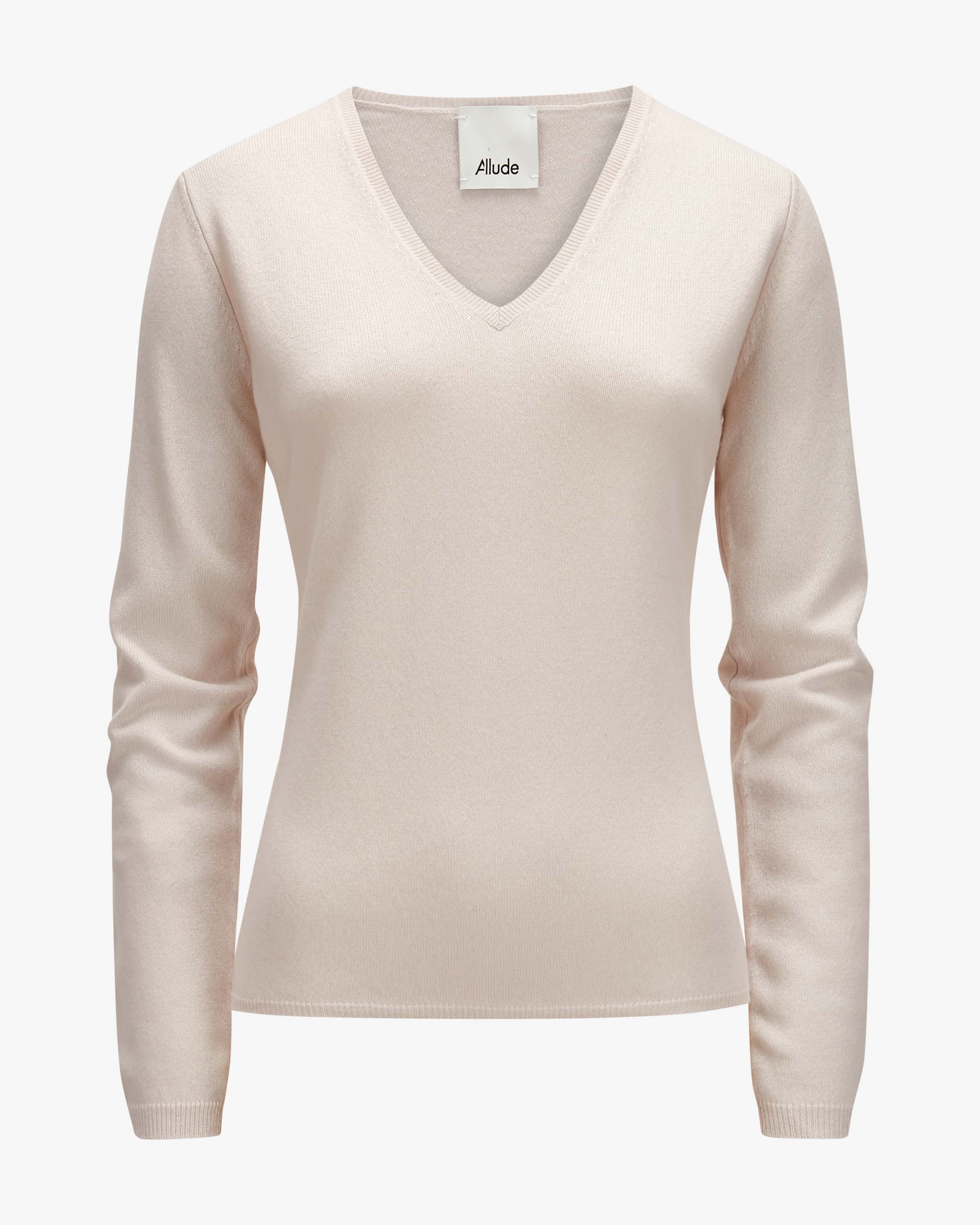 Pullover für Damen von Allude in Stein. Das Münchner Unternehmen Allude steht für Mode, die Selbstbewusstsein und zeitlose Individualität ausstrahlt. Gefertigt aus hochwertiger Cashmere-Wolle, besticht das Modell mit weicher Haptik, während das klassische Design ein zeitloses wie auch kombistarkes Strick-Essential kreiert.