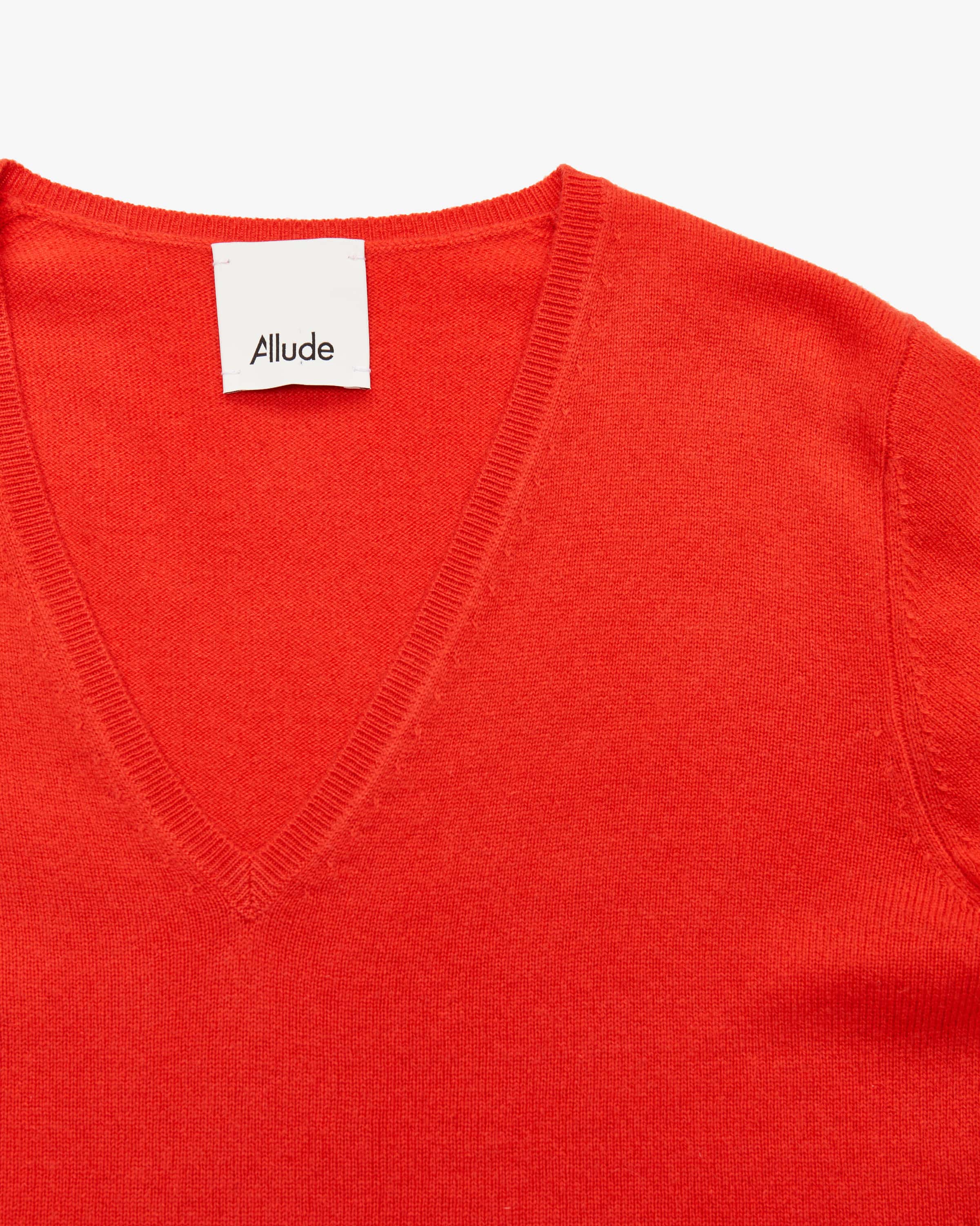 Pullover für Damen von Allude in Rot. Das Münchner Unternehmen Allude steht für Mode, die Selbstbewusstsein und zeitlose Individualität ausstrahlt. Gefertigt aus hochwertiger Cashmere-Wolle, besticht das Modell mit weicher Haptik, während das klassische Design ein zeitloses wie auch kombistarkes Strick-Essential kreiert.