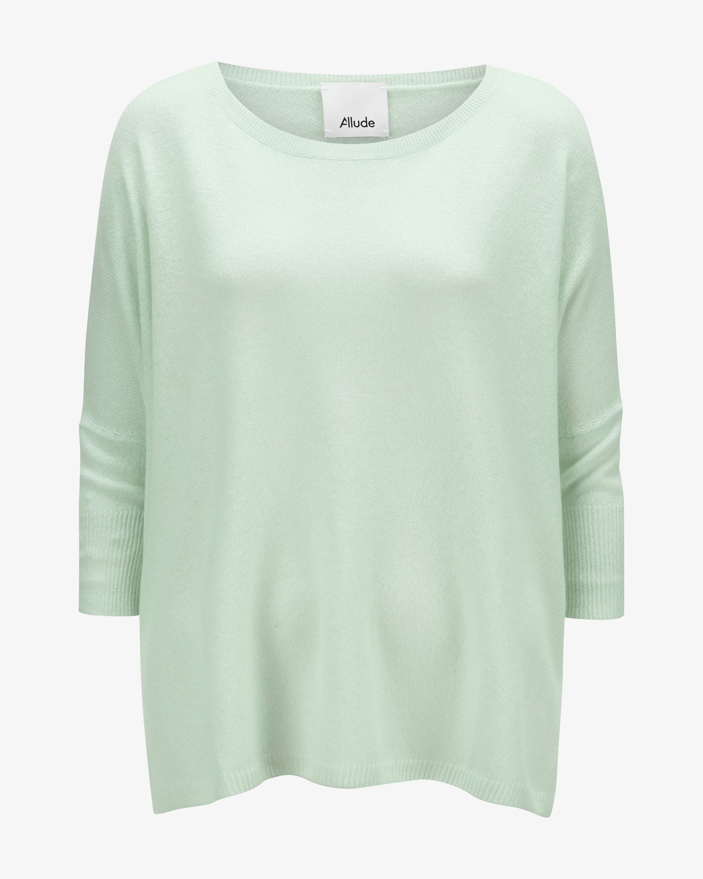 Cashmere-Strickjacke für Damen von Allude in Mint. Das Münchner Label wurde 1993 von Andrea und Christian Karg gegründet und ist bekannt für luxuriöse Strickmode aus edlem Kaschmir. Auch dieses Oversize-Modell aus hochwertiger Cashmere- Qualität überzeugt mit weicher Haptik welche für angenehme Tragemomente sorgt, während klassische Details einen kuscheligen Begleiter für vielseitige Looks kreieren.