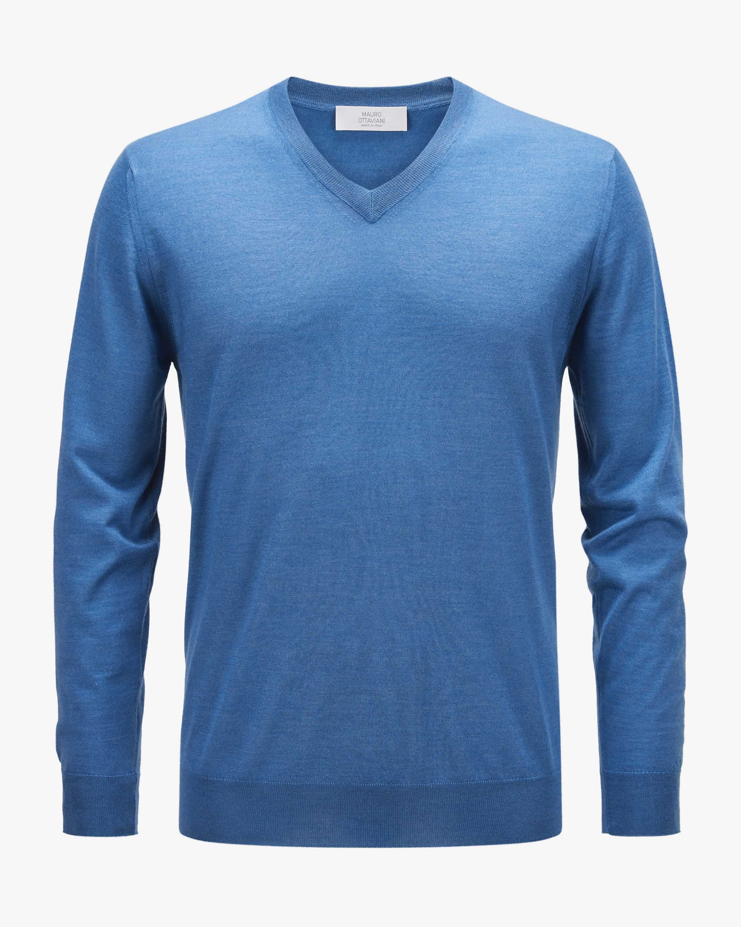 Cashmere-Seiden-Pullover für Herren von Mauro Ottaviani in Blau. Leidenschaft und erstklassige Handwerkskunst, welche perfekt auf die Bedürfnisse moderner Männer angepasst ist, zeichnet das Label Ottaviani aus. Dank der Verwendung von hochwertigem Cashmere-Seiden-Mix punktet das Modell mit feiner, weicher Strick- Qualität, während das klassische Design einen zeitlosen Favoriten für Ihre Casual-Garderobe schafft.