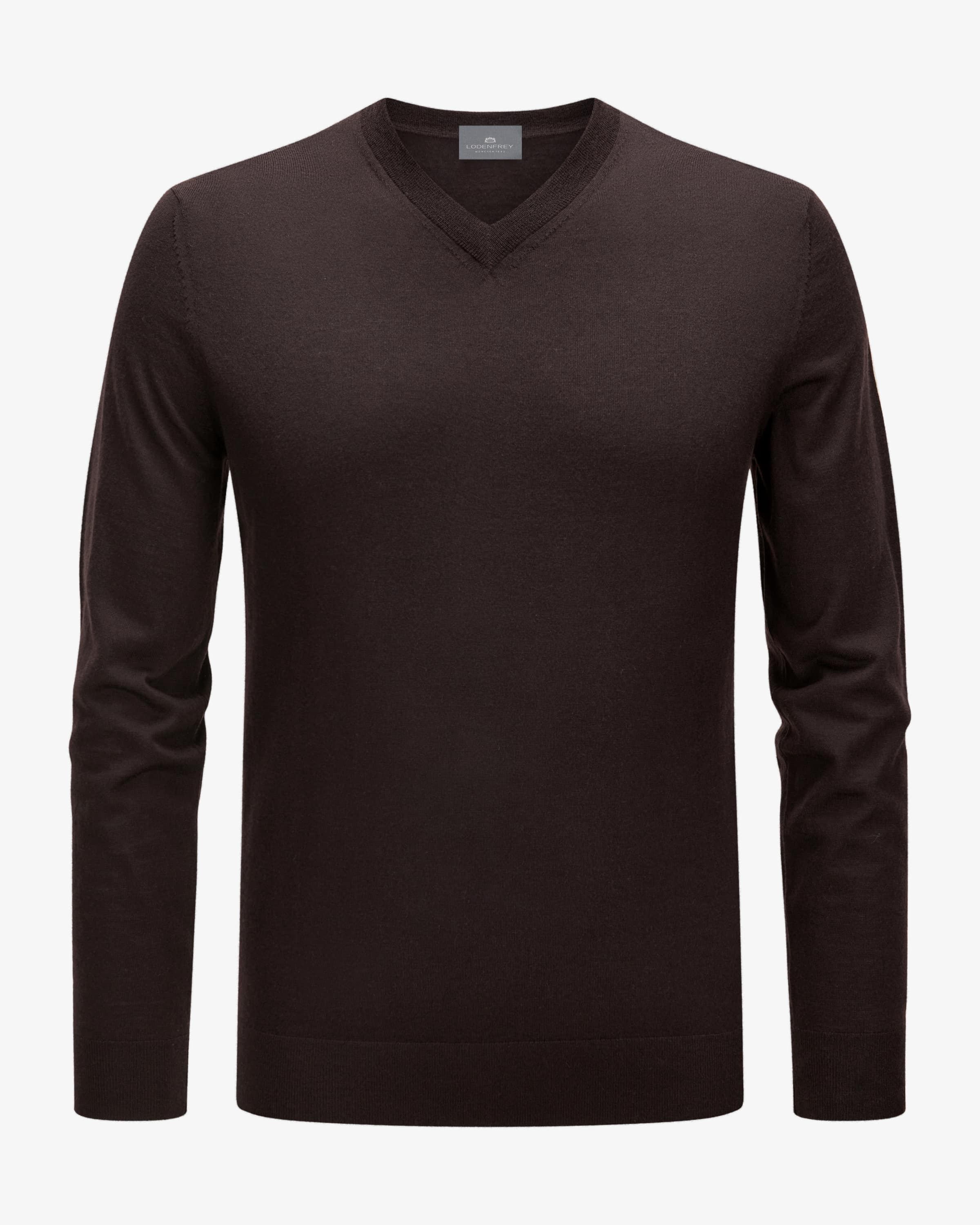 Pullover für Herren von LODENFREY in Schoko. Das Modell überzeugt dank der Verwendung von hochwertiger Merinowolle in Feinstrick-Qualität mit softer Haptik und leichtem Tragegefühl, während das cleane Design ein optimales Layering- Essential schafft.