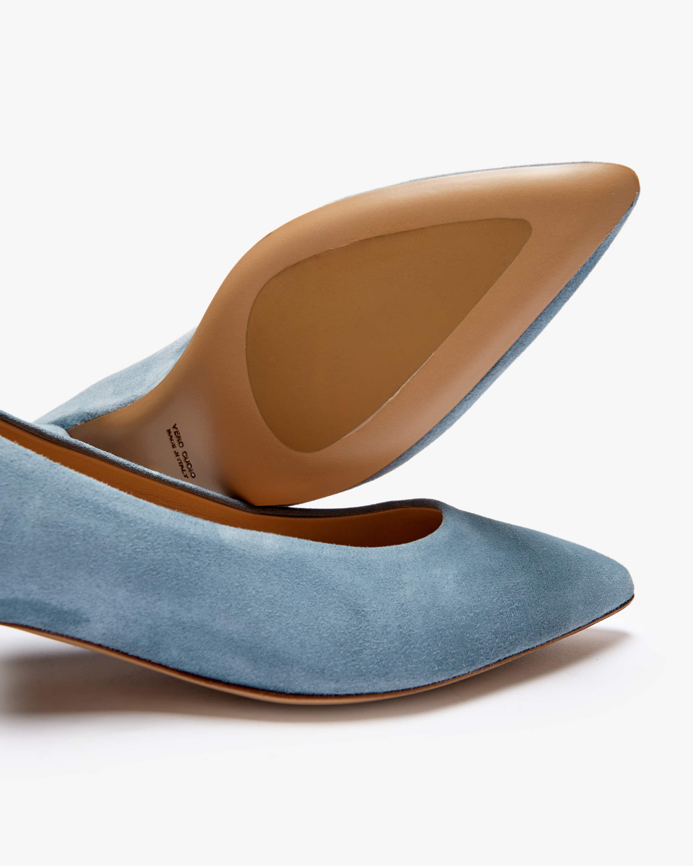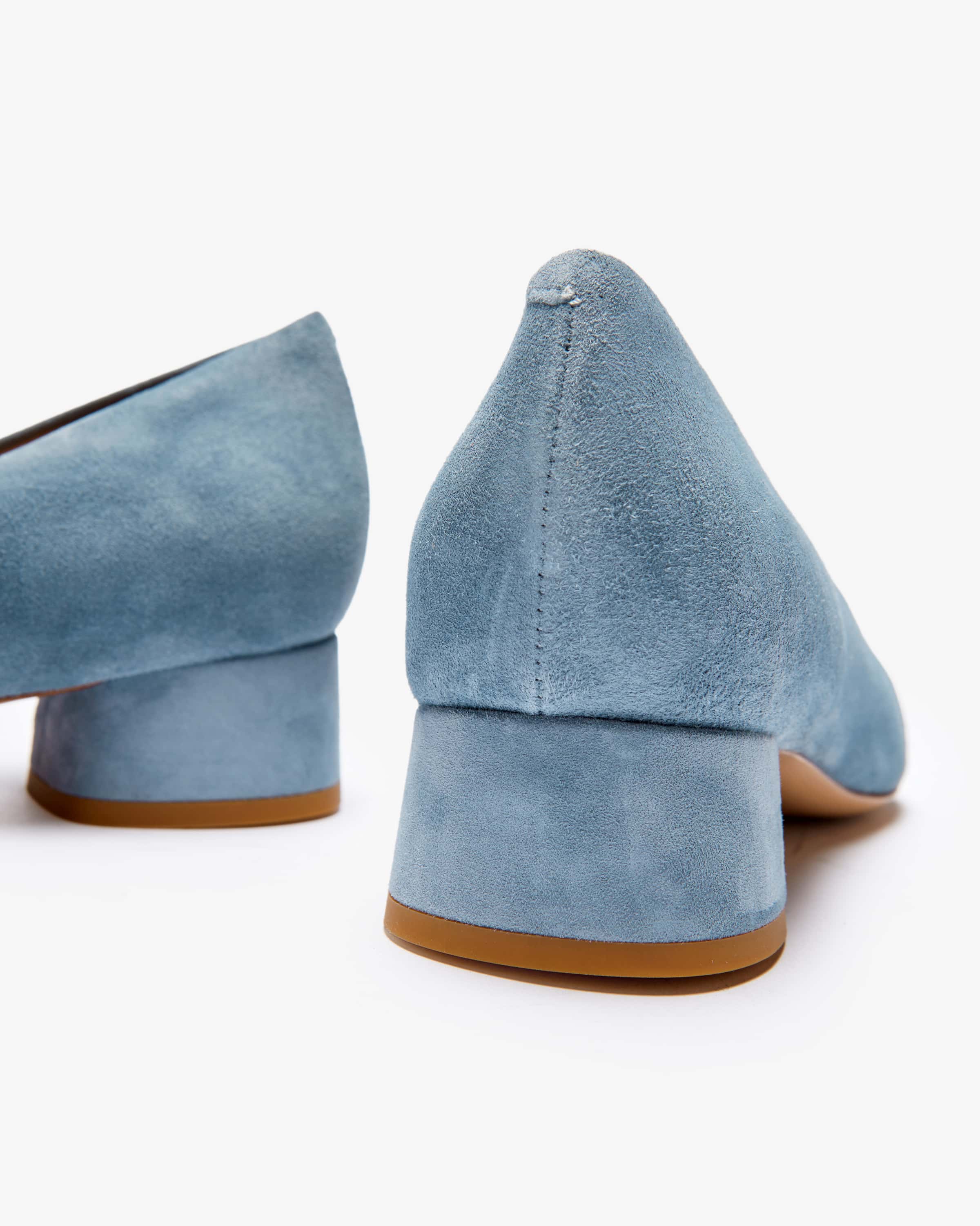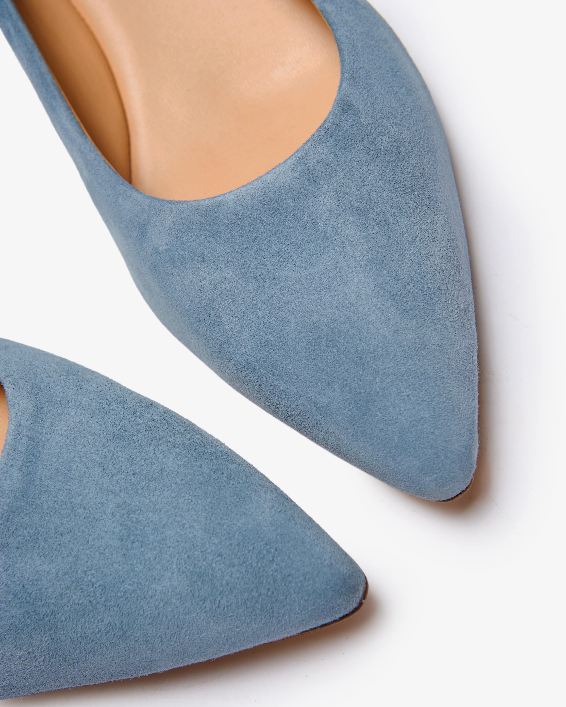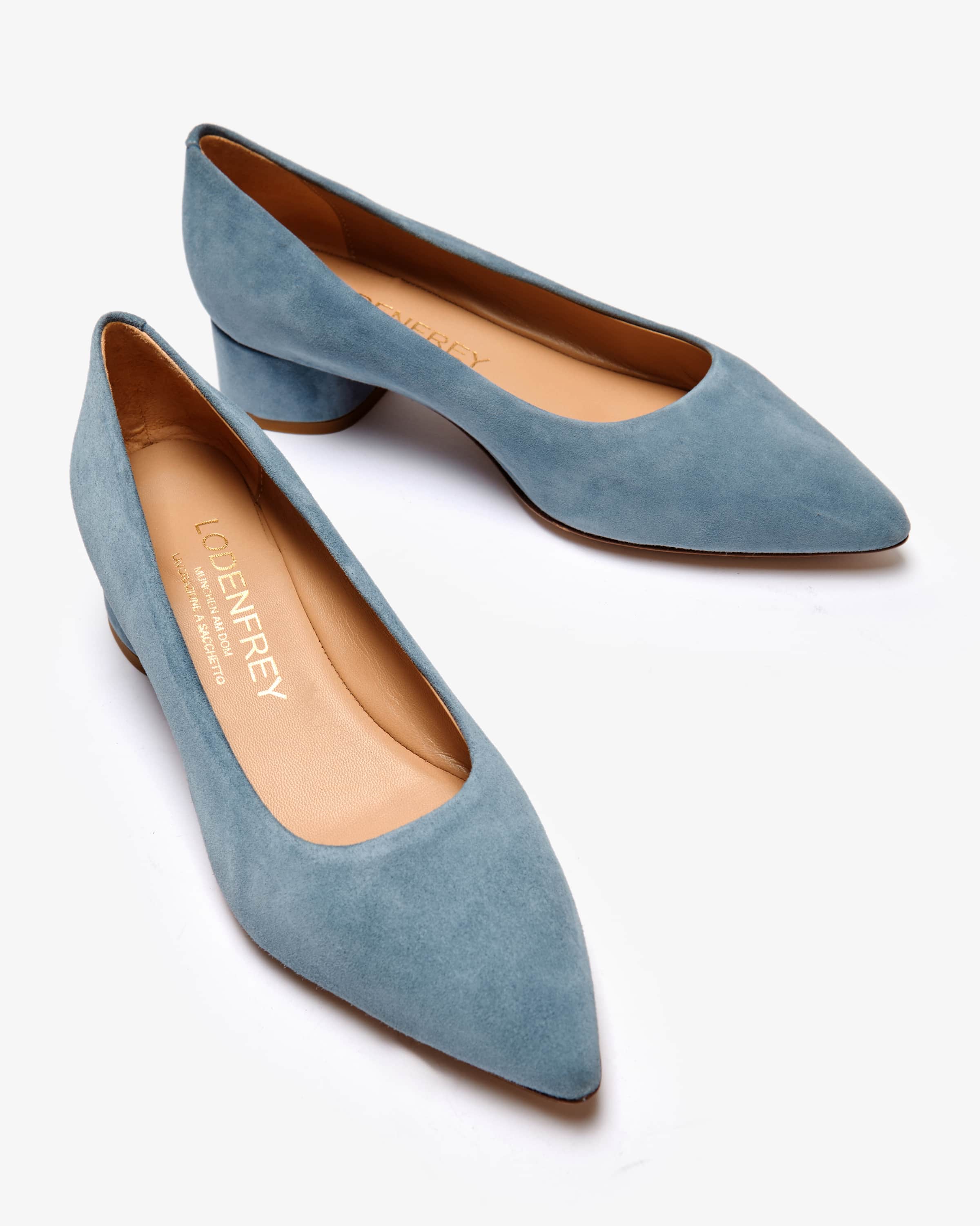Pumps für Damen von LODENFREY in Hellblau. Während sich dieses Modell in zeitlosem Design präsentiert, setzt die spitze Zehenpartie modische Akzente. Die hochwertige Veloursleder-Qualität rundet das Gesamtbild stilvoll ab.