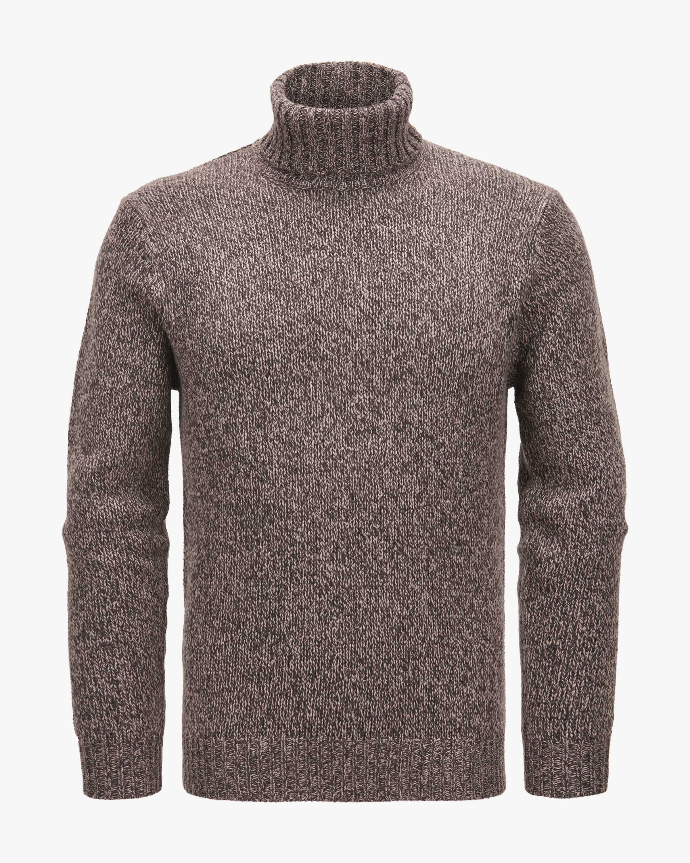 Rollkragenpullover für Herren von LODENFREY in Braun und Beige. Dank dem hochwertigen Woll-Cashmere-Mix erhält das Modell eine weiche Haptik, während das Bicolor Mouliné-Strickmuster einen modernen Alltags-Liebling schafft.