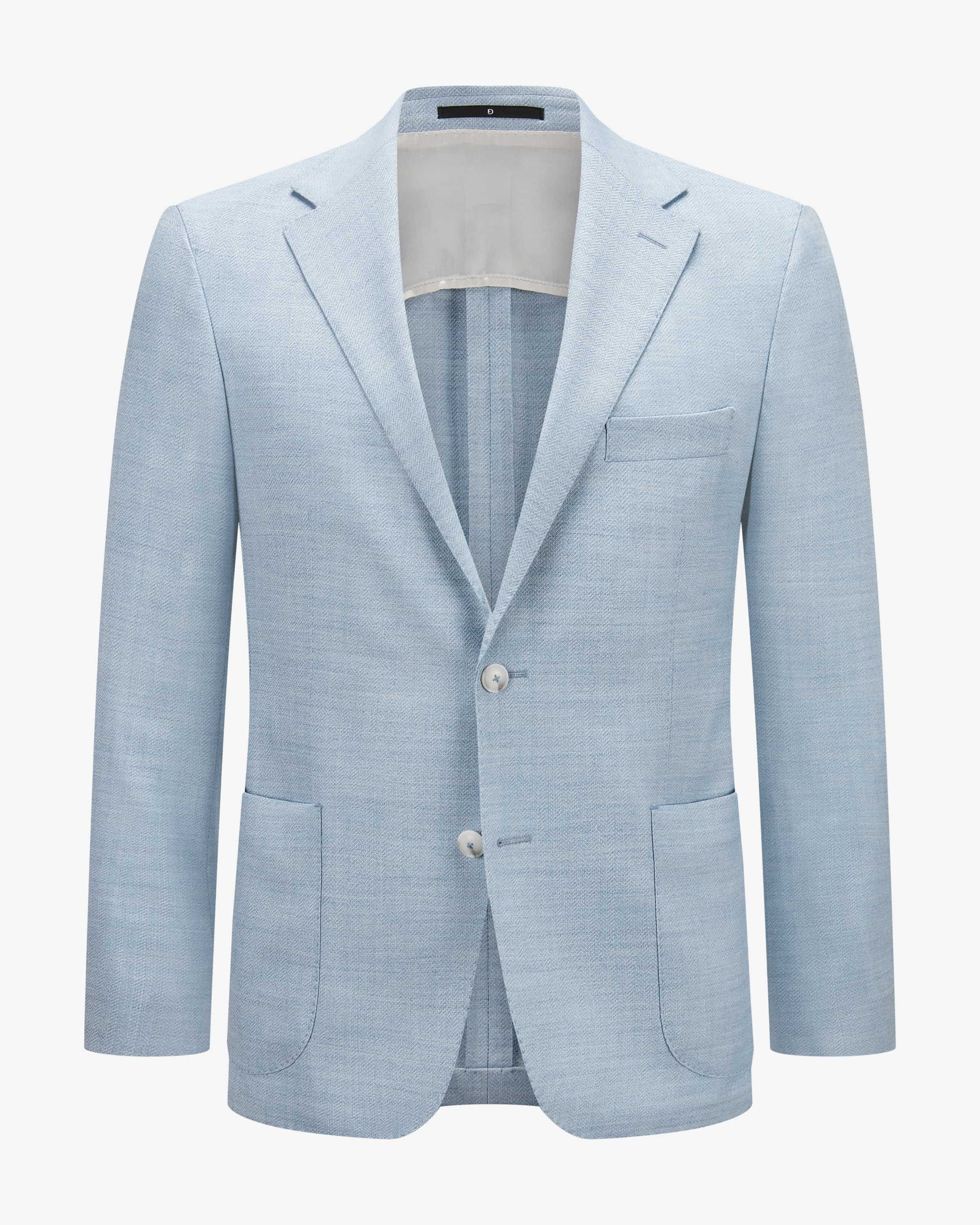 Sakko Sawyer Regular Fit für Herren von Dressler in Hellblau. Die Marke vereint zeitloses Design und handwerkliche Perfektion. Auch dieses melierte Modell überzeugt dank des leichten Material-Mixes mit angenehmen Tragemomenten, während die maskuline Silhouette dank der klassischen Details gekonnt unterstrichen wird und das Fischgrät-Design einen zeitlosen Look kreiert.
