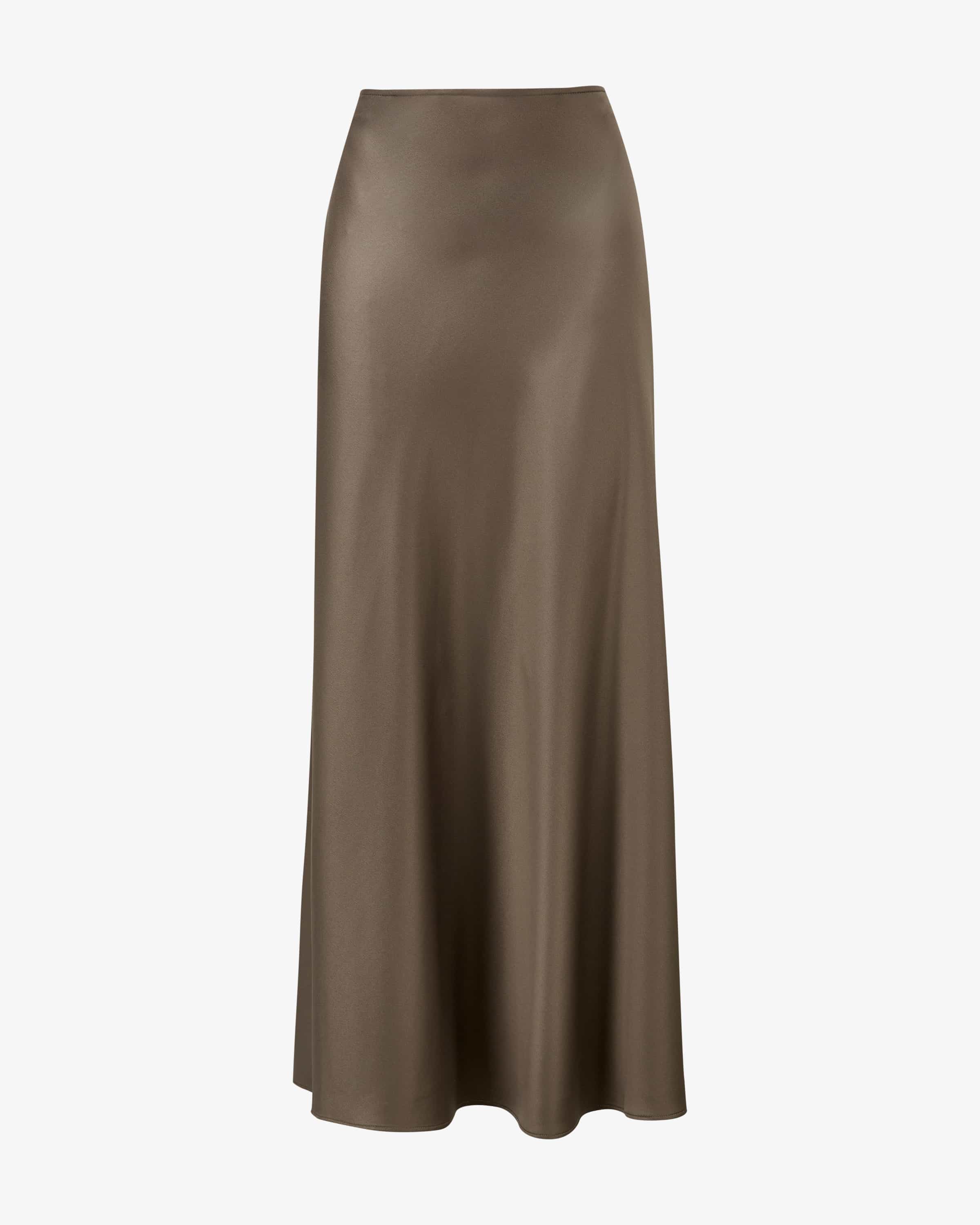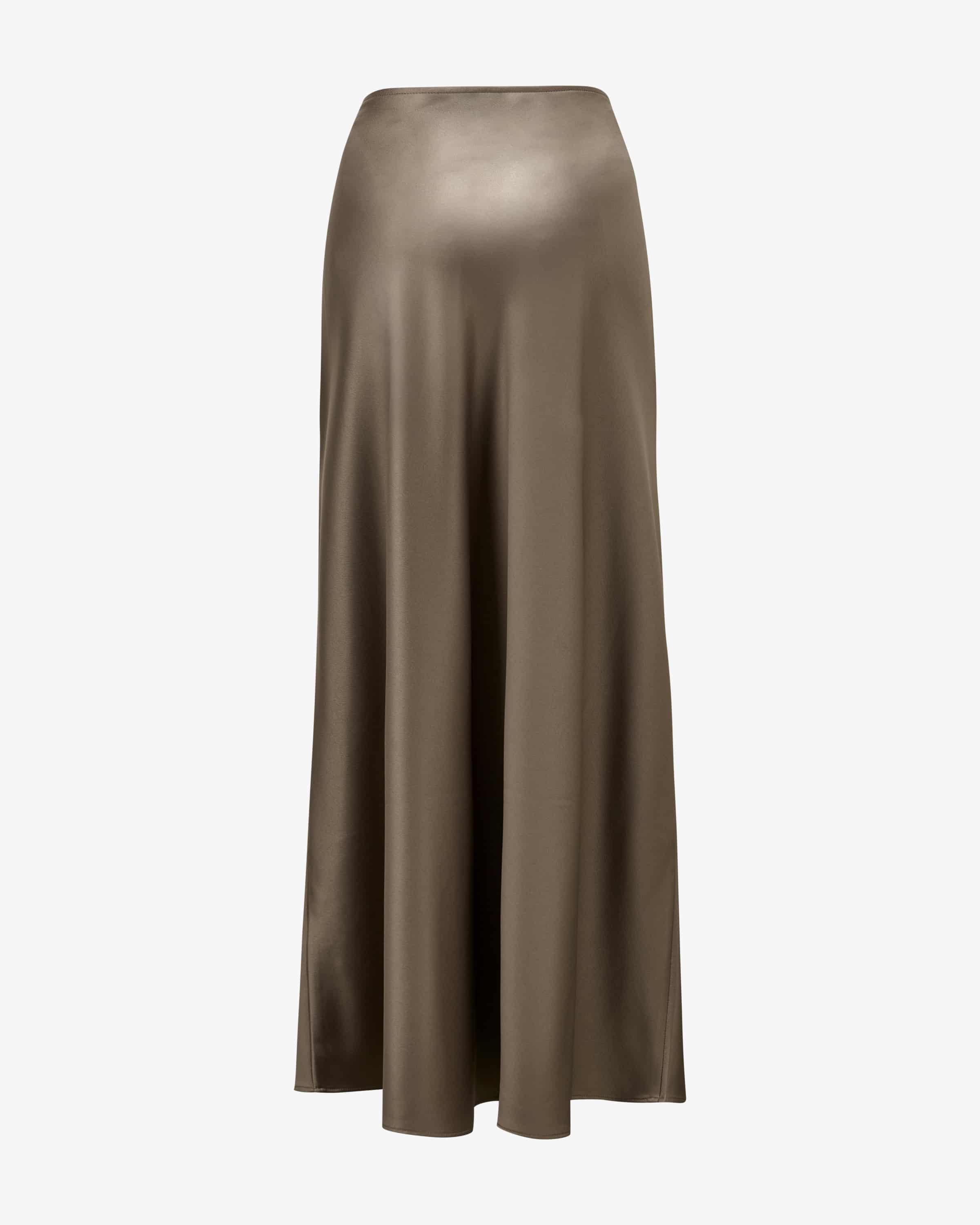 Satin-Maxirock Fina für Damen von Juvia in Taupe. Das Modell besticht mit