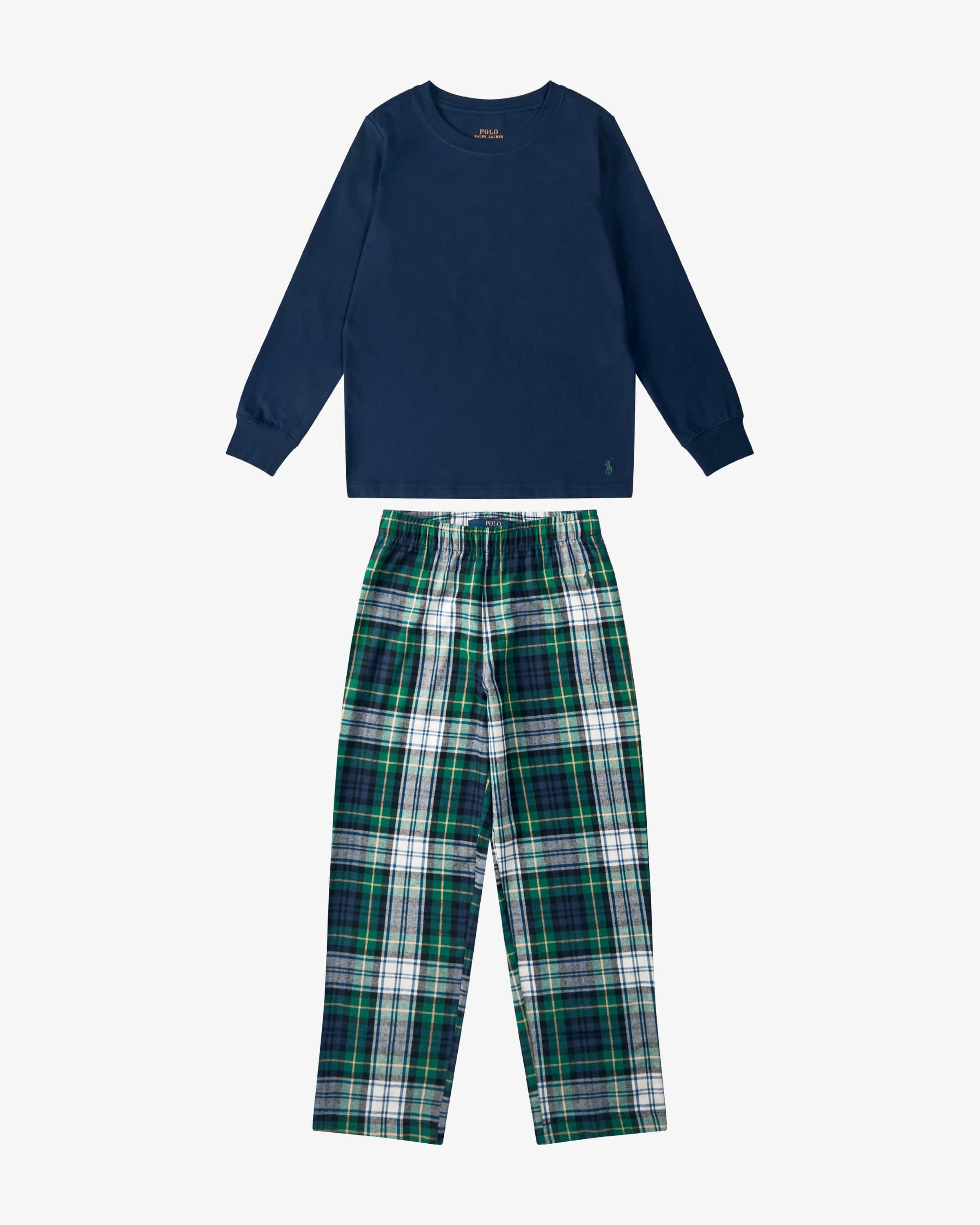 Schlafanzug für Kinder von Polo Ralph Lauren in Blau, Grün und Weiß. Das Modell