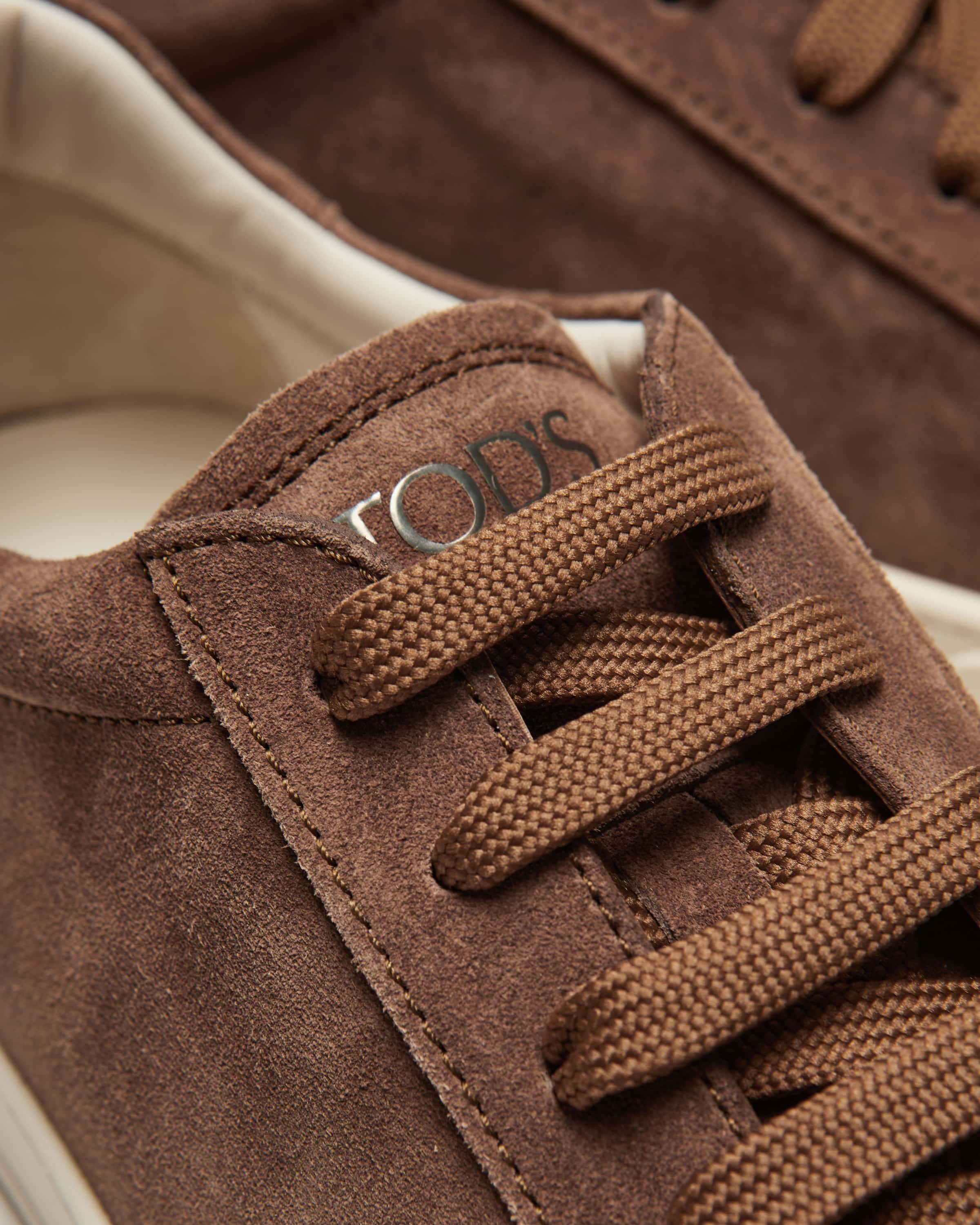 Sneaker für Herren von Tod's in Braun. Das italienische Luxushaus steht für feinstes Lederhandwerk – ikonisch sind vor allem Loafer und Taschen. Dieses Modell besticht durch die klassische Low Top-Aufmachung als kombistarker Casual- Begleiter, während die Verwendung von hochwertigem Veloursleder einen stilvollen Charakter verleiht. Logo-Details und die ikonischen Noppen runden den zeitlosen Style harmonisch ab.