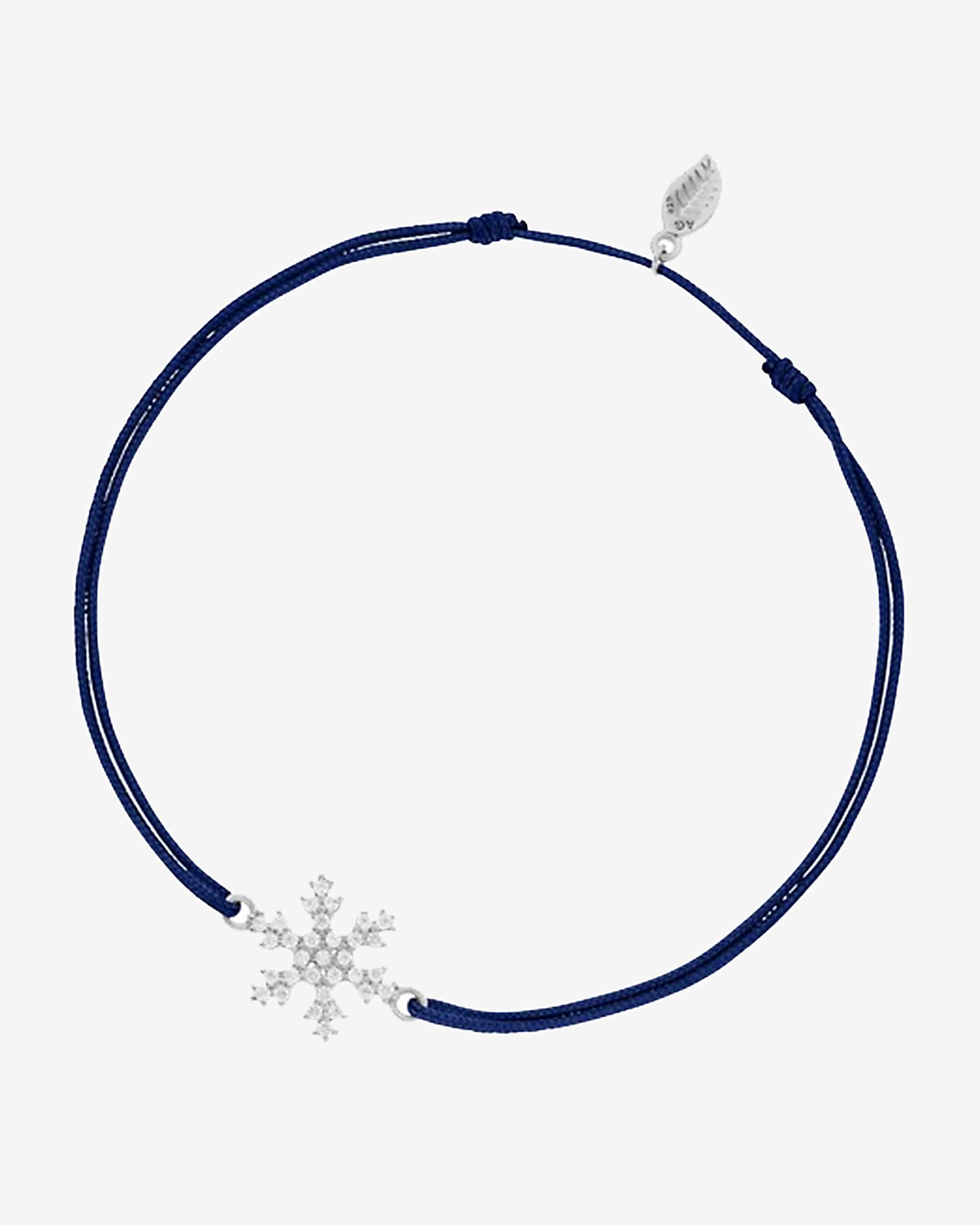 Snowflake Glücksbändchen für Damen von Leaf in Navy und Silber. Dank der silbernen Schneeflocke mit funkelndem Zirkonia-Besatz präsentiert sich das Modell als stilvolles Layering-Accessoire mit besonderem, winterlichem Charme, während das verstellbare Bändchen einen perfekten Sitz verspricht.