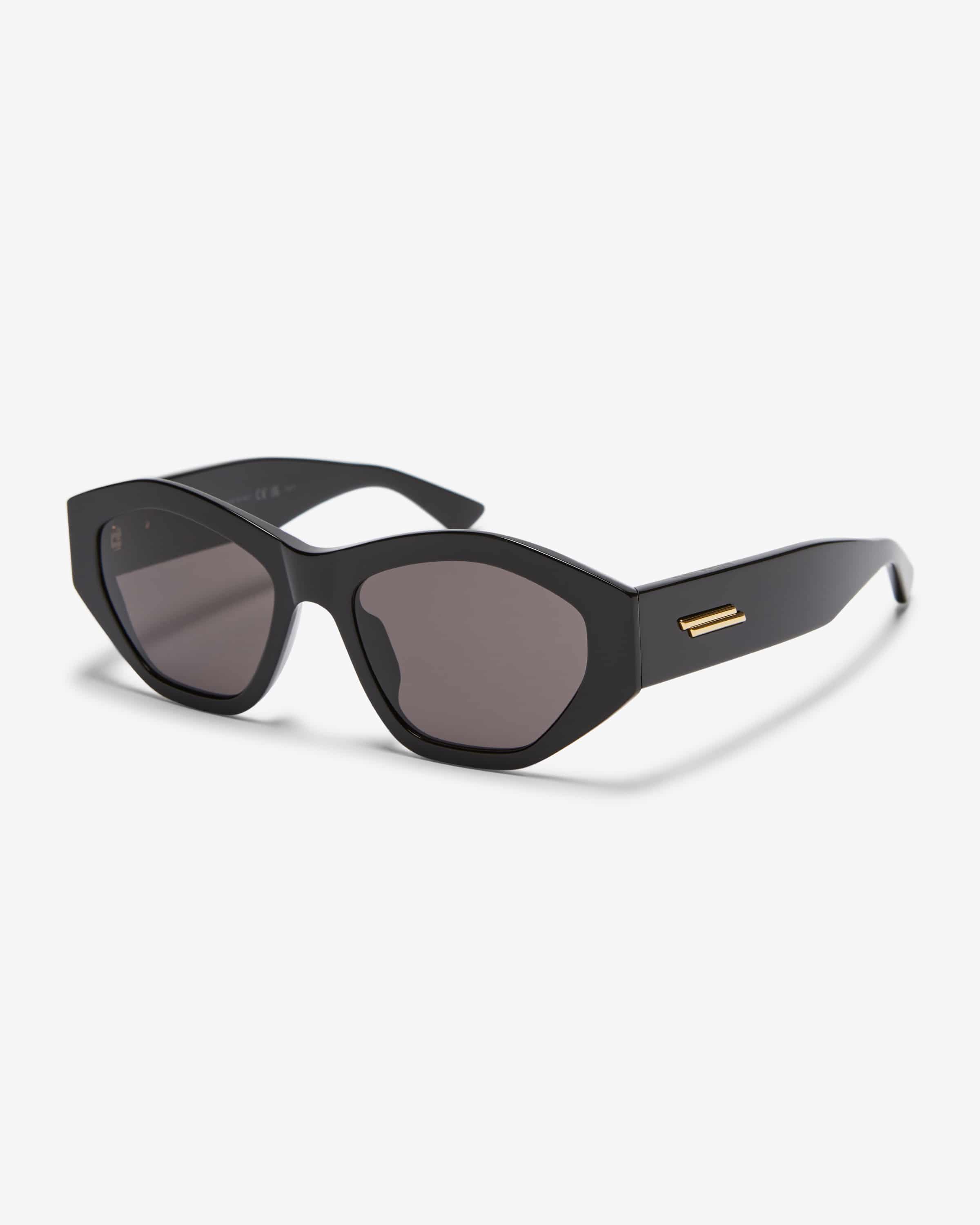 Sonnenbrille für Damen von Bottega Veneta Eyewear in Schwarz. Dank sechseckiger Form avanciert das Modell mit breitem Rahmen in Hochglanz-Optik zum modischen Begleiter an sonnigen Tagen. Die goldfarbenen Elemente fügen dabei einen labeltypischen Akzent hinzu.