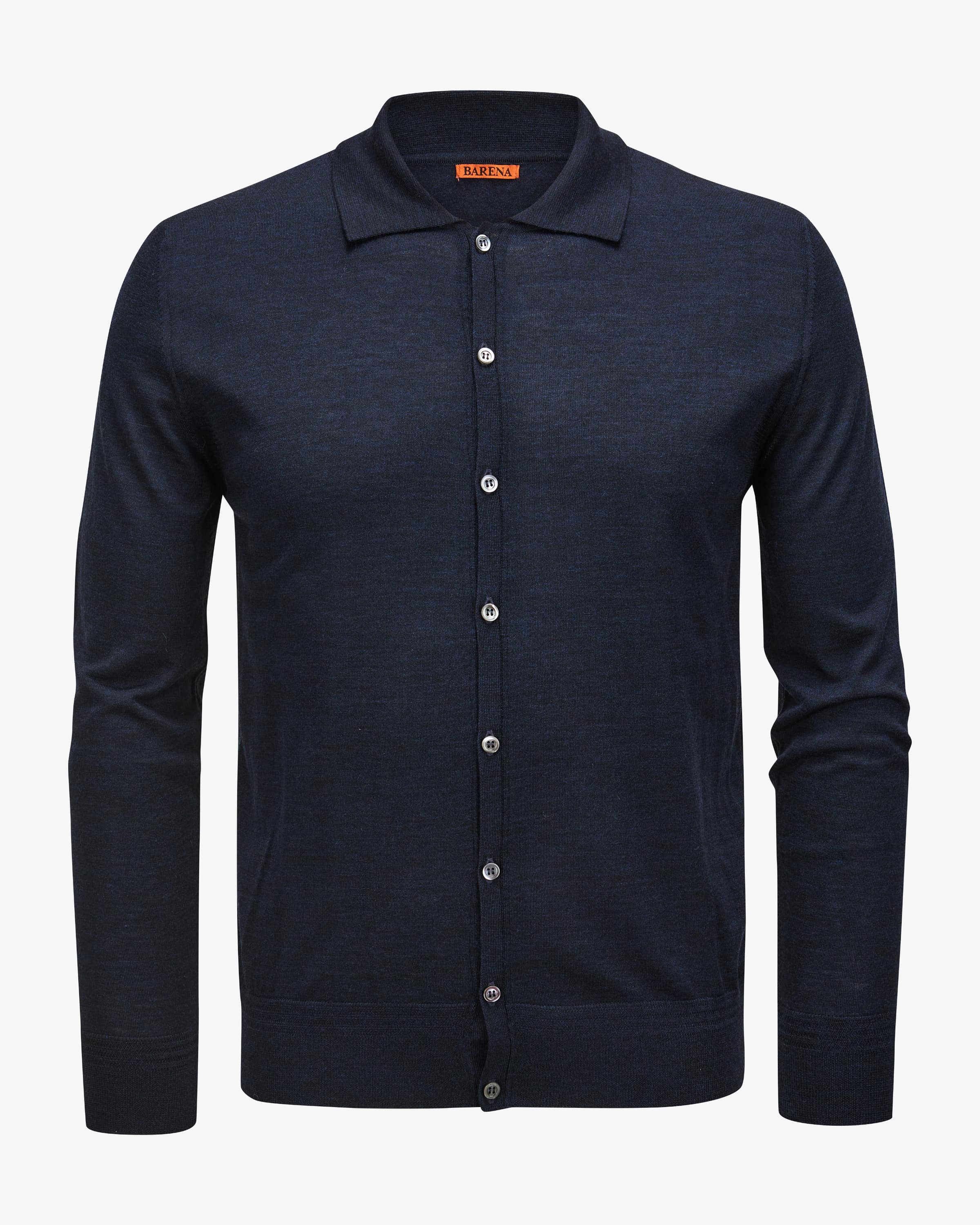 Sorada Brunal Strickhemd für Herren von Barena in Navy. Das Modell in feiner Merinowolle überzeugt mit weicher Haptik, während die Knopfleiste und klassischen Details einen maskulinen Begleiter für edle Strick-Looks schaffen.