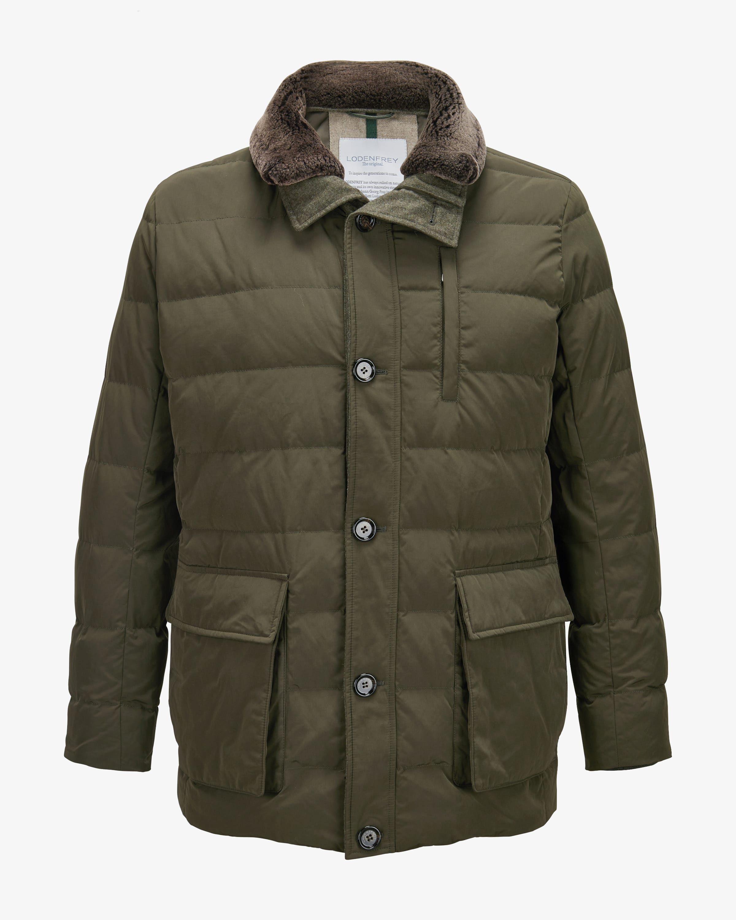 St. Moritz Daunenjacke für Herren von LODENFREY in Oliv. Mit viel Liebe zum Detail entwirft das Label zeitlose Designs für stilsichere Looks, die sich an aktuellen Trends orientieren. Auch dieses Modell präsentiert sich in maskuliner Aufmachung, während der abnehmbare Fellkragen und die hochwertige Daunen-Füllung für wärmende Tragemomente sorgen. Klassische Details und markante Klappentaschen runden das maskuline Design im traditionellen Heritage-Look perfekt ab.