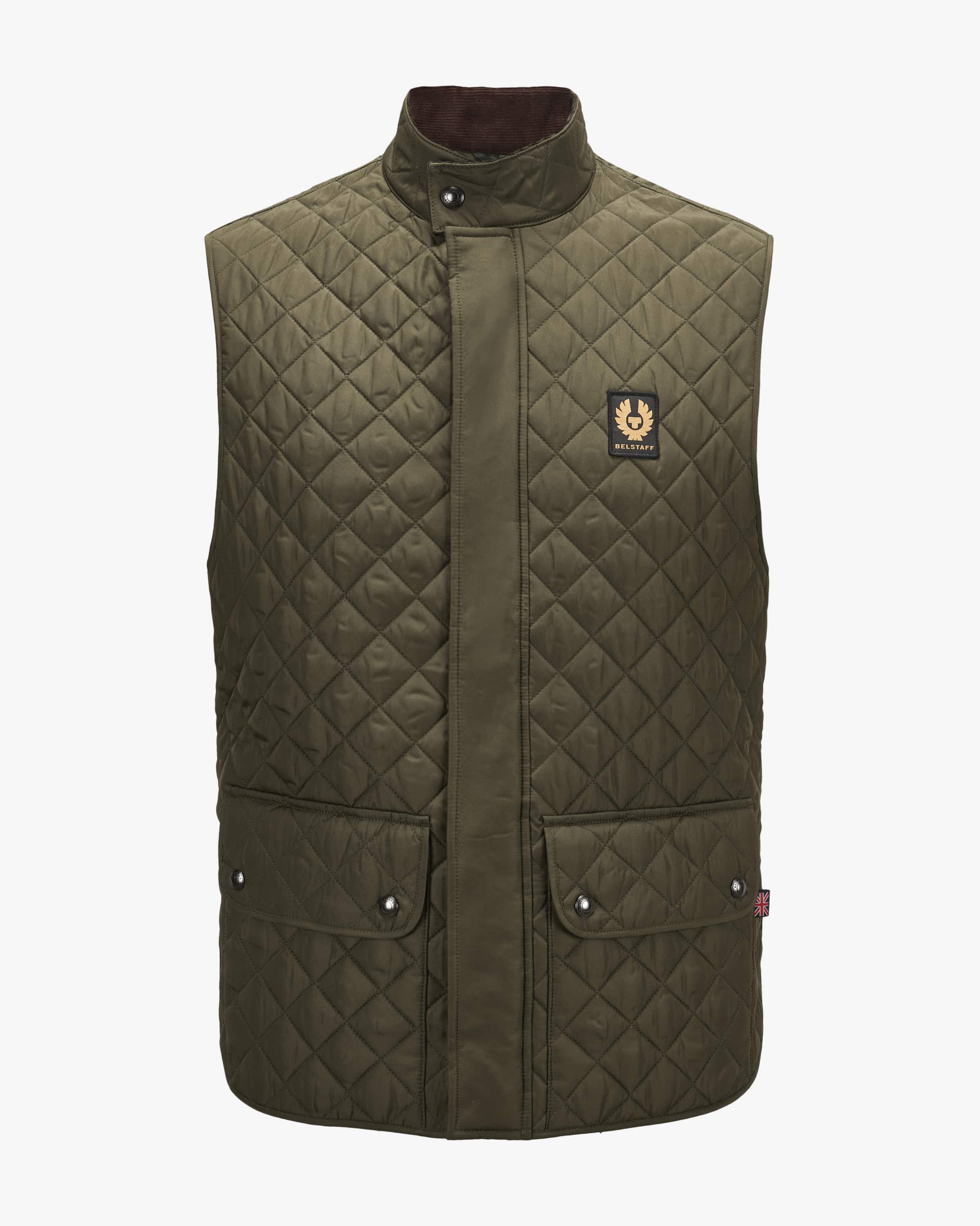 Steppweste Icon für Herren von Belstaff in Oliv. Belstaff ist bekannt für Bikerjacken und Heritage-Outerwear – robust, britisch, ikonisch. Auch dieses Modell begeistert mit leichter Steppung und labeltypischen Logo-Details, während die weite Silhouette mit Stehkragen und markanten Taschen einen maskulinen Heritage-Look kreiert.