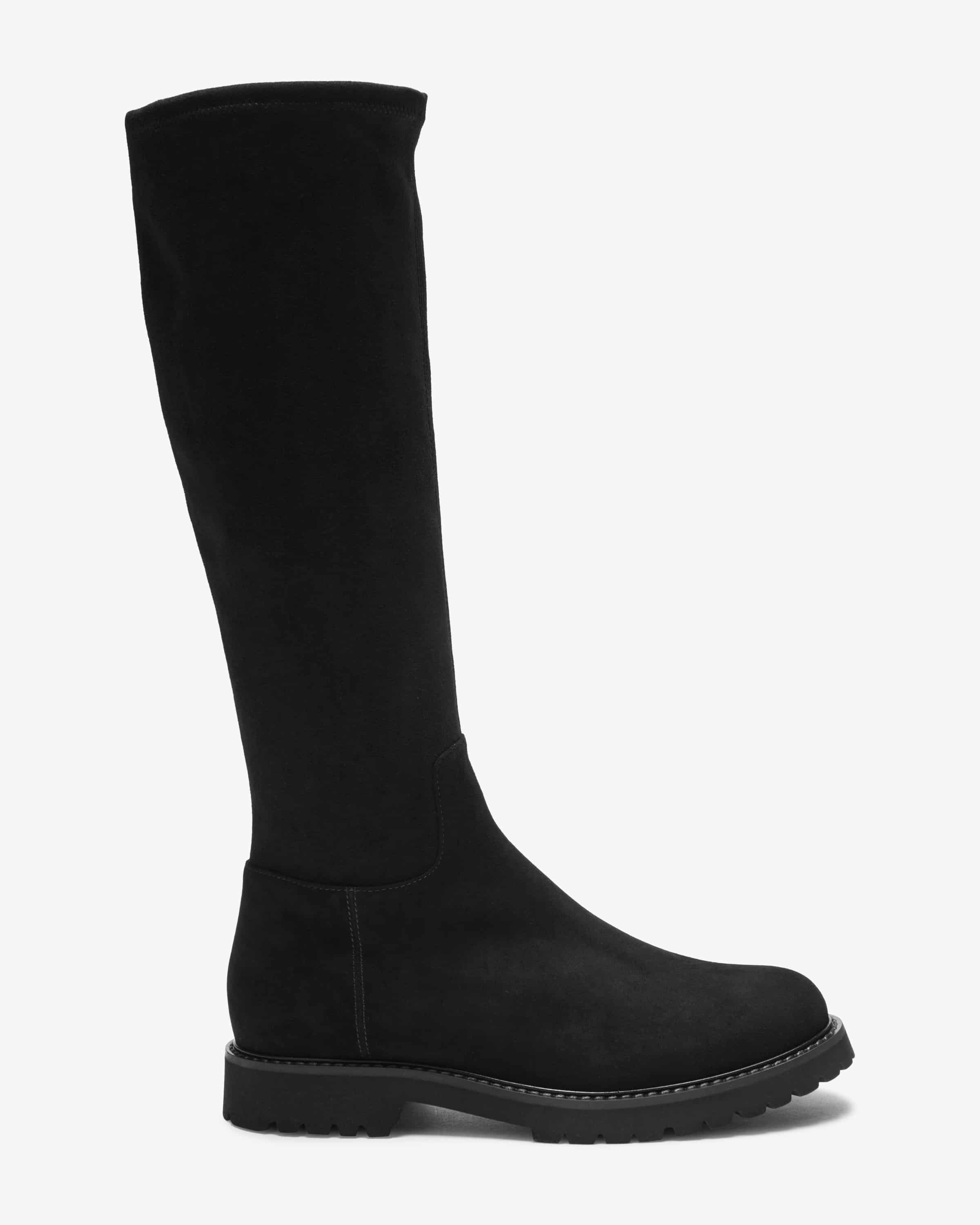 Stiefel für Damen von Unützer in Schwarz. Das Label aus Venedig steht für edle Schuhe, oft mit femininen Details – klassische Handwerkskunst mit italienischem Flair. Dieses Modell präsentiert sich dank der hochwertigen Veloursleder- Verarbeitung sowie dem elastischen Schaft in edler Aufmachung und mit hohem Tragekomfort, während die schmale Silhouette den Equestrian-Charakter gekonnt in Szene setzt.