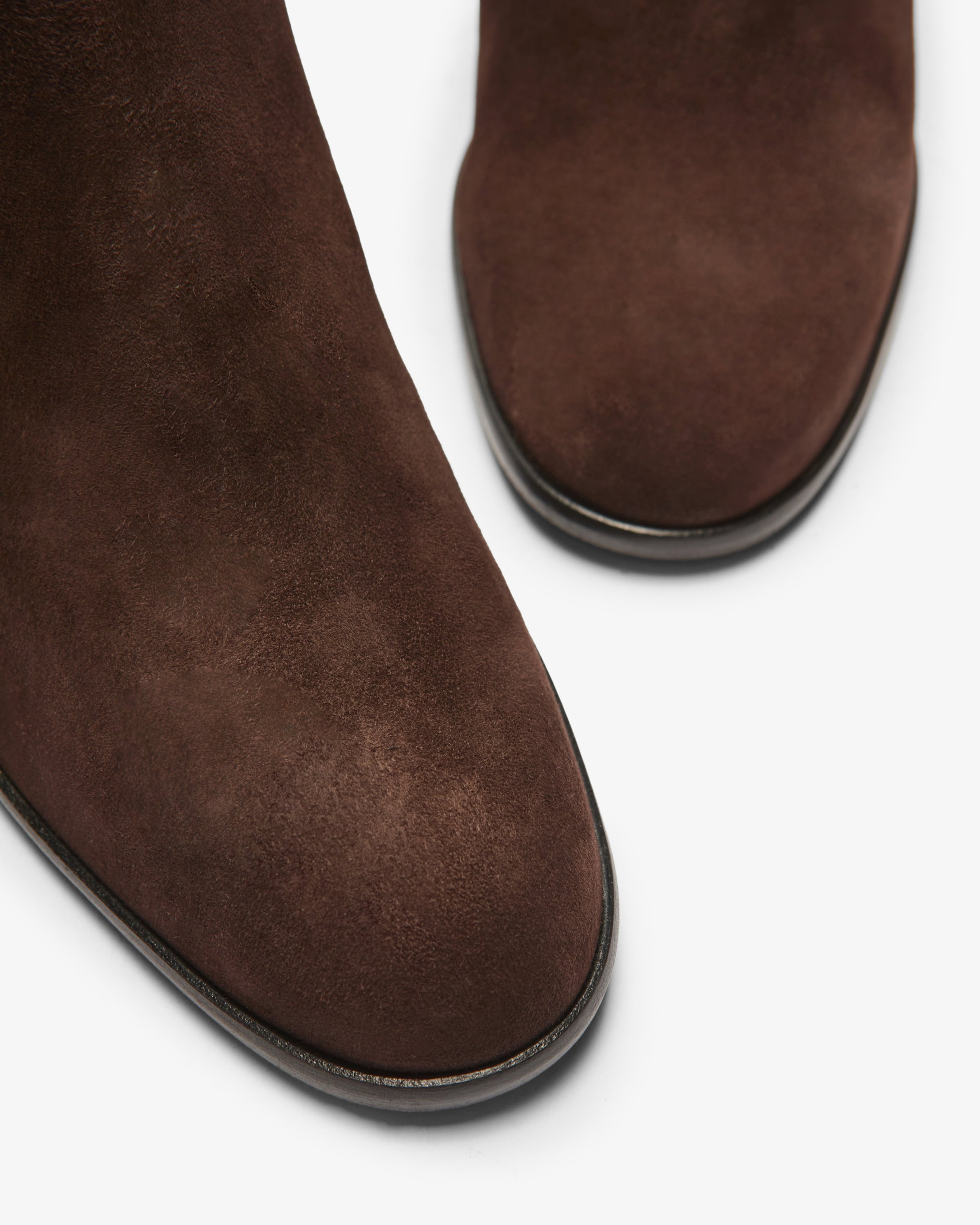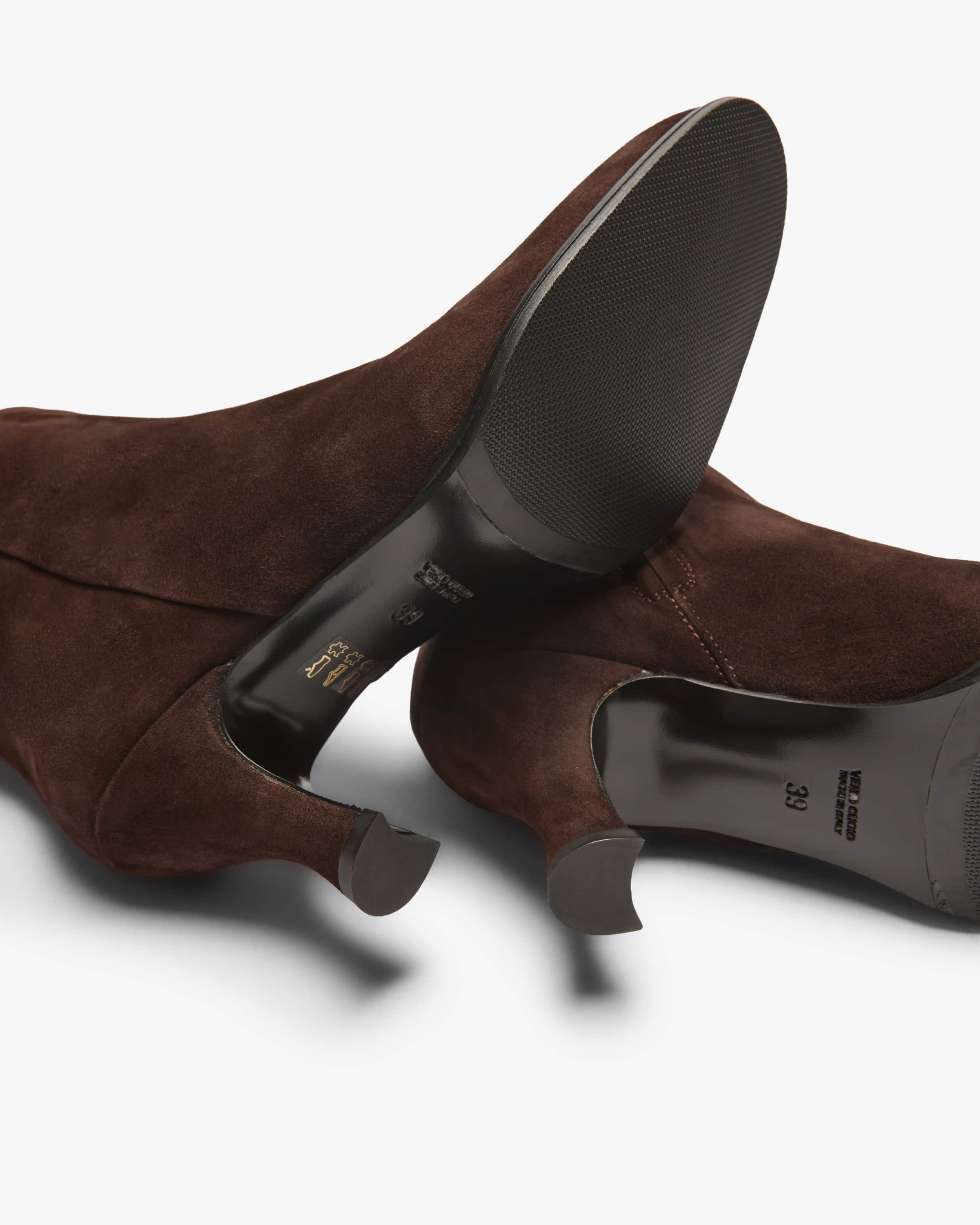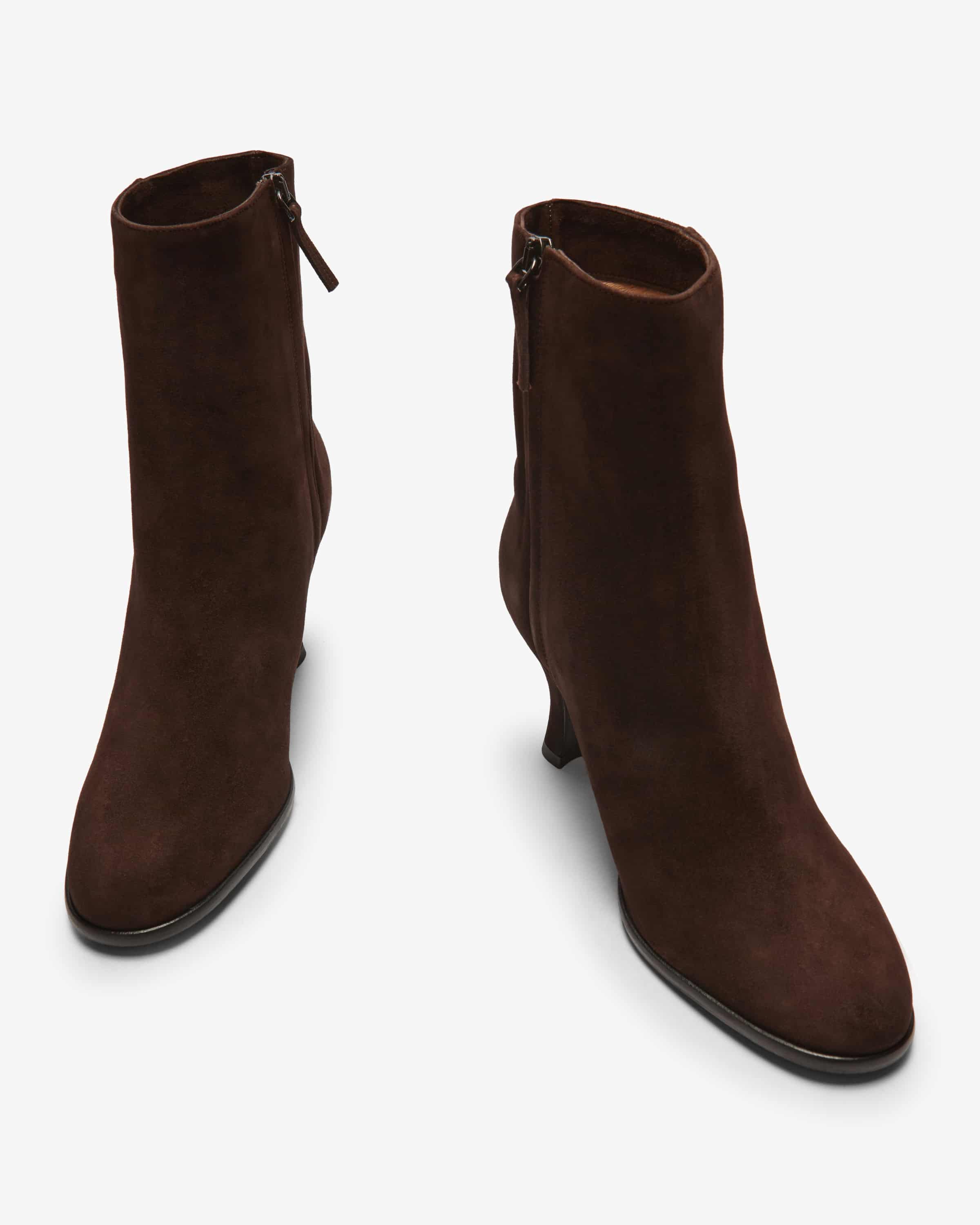Stiefeletten für Damen von LODENFREY in Dunkelbraun. Das Modell aus hochwertiger Veloursleder-Verarbeitung überzeugt dank klassischer Aufmachung und elegantem Blockabsatz als stilvoller Favorit für feminine Looks.