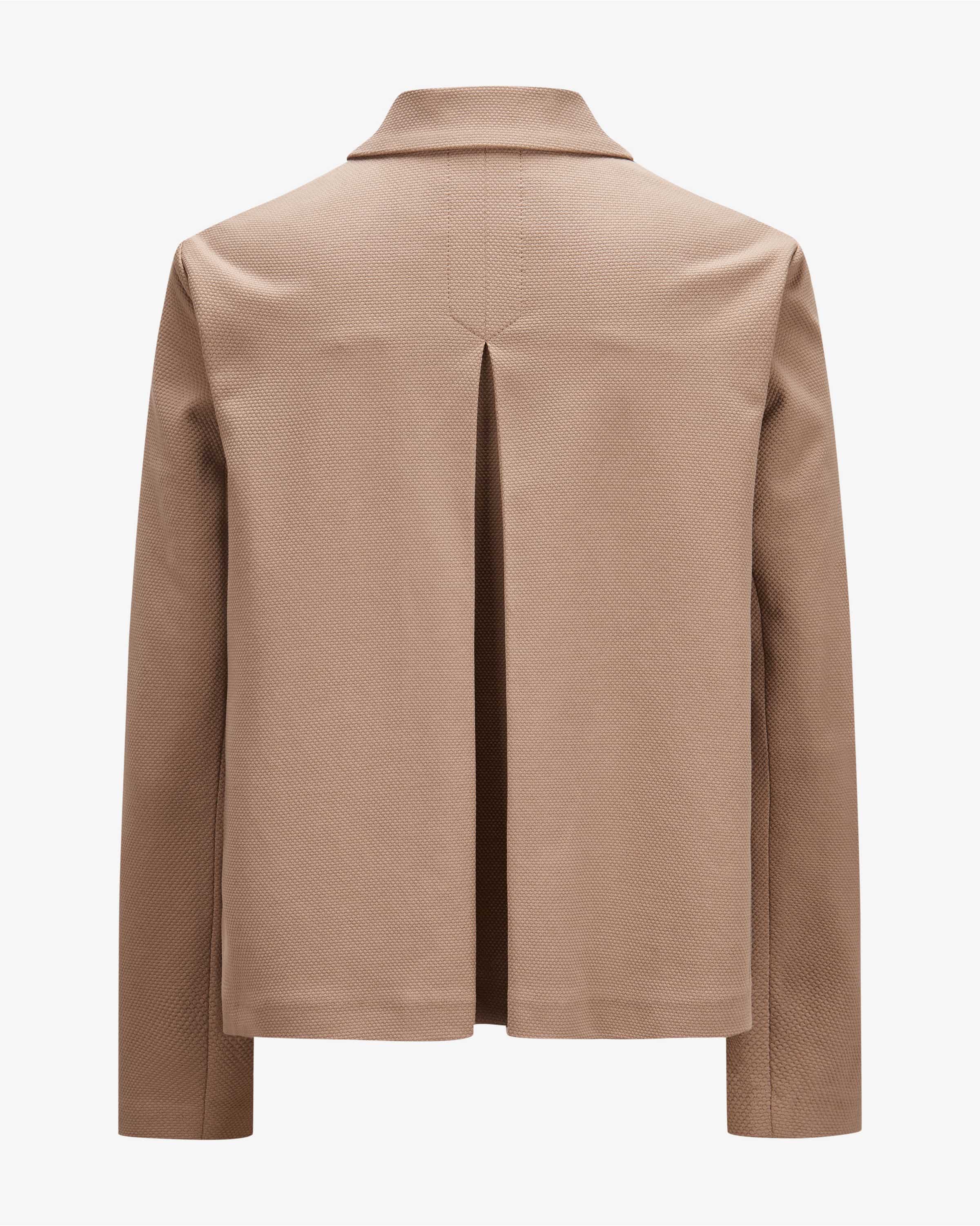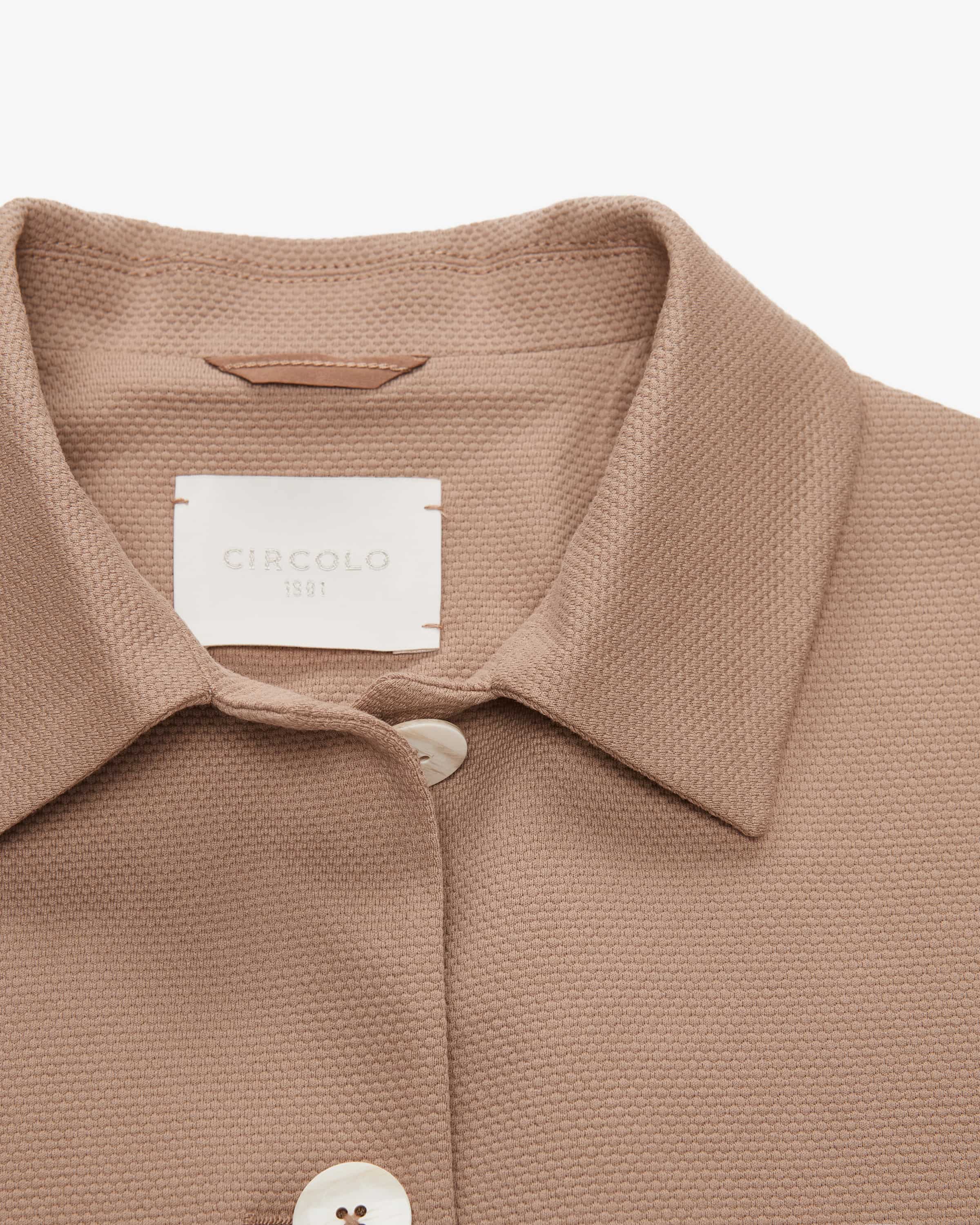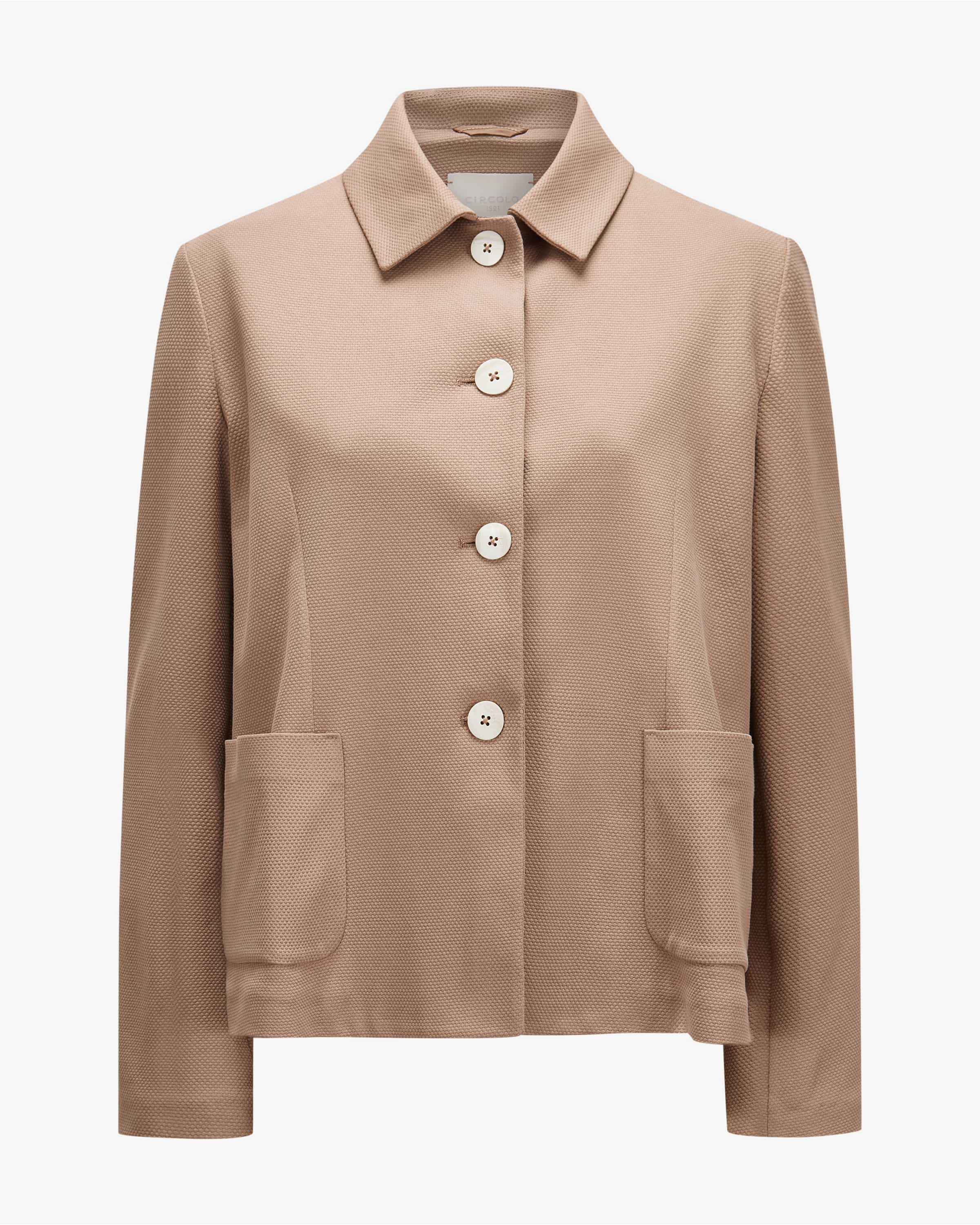 Strickblazer Caban Oxford für Damen von Circolo 1901 in Taupe. Die Marke steht für komfortable Blazer und Jersey-Jacken mit perfektem Sitz – casual tailored made in Italy. Das ungefütterte Modell präsentiert sich mit feiner 3D- Strickstruktur aus elastischem Baumwoll-Mix, welcher für einen hohen Tragekomfort sorgt. Zugleich verleiht die weite, ausgestellte Silhouette mit markanter Kellerfalte einen stilsicheren Charakter.