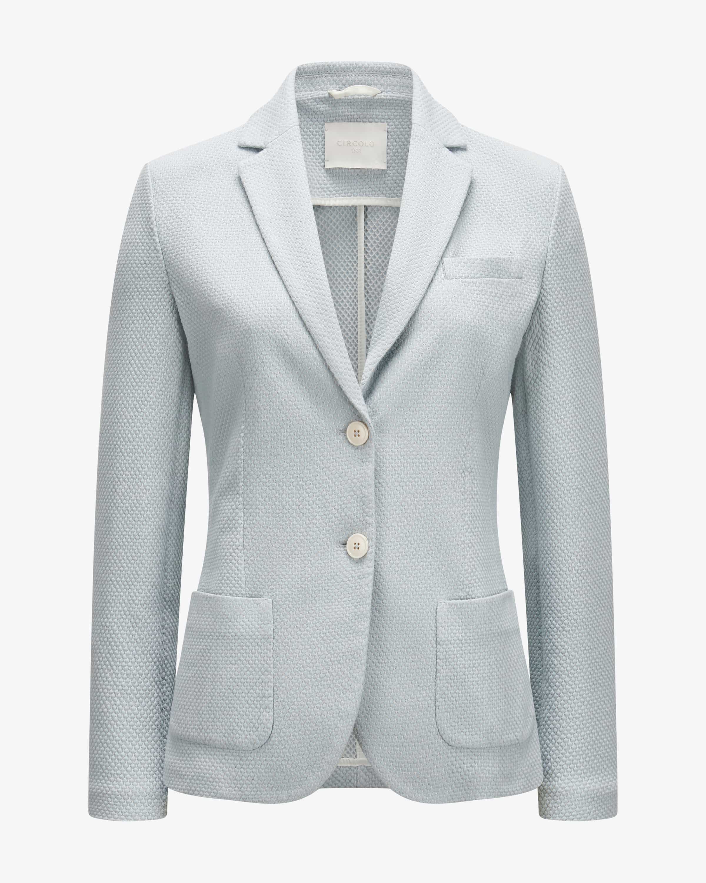 Strickblazer Slim Fit für Damen von Circolo 1901 in Hellblau und Weiß. Die Marke