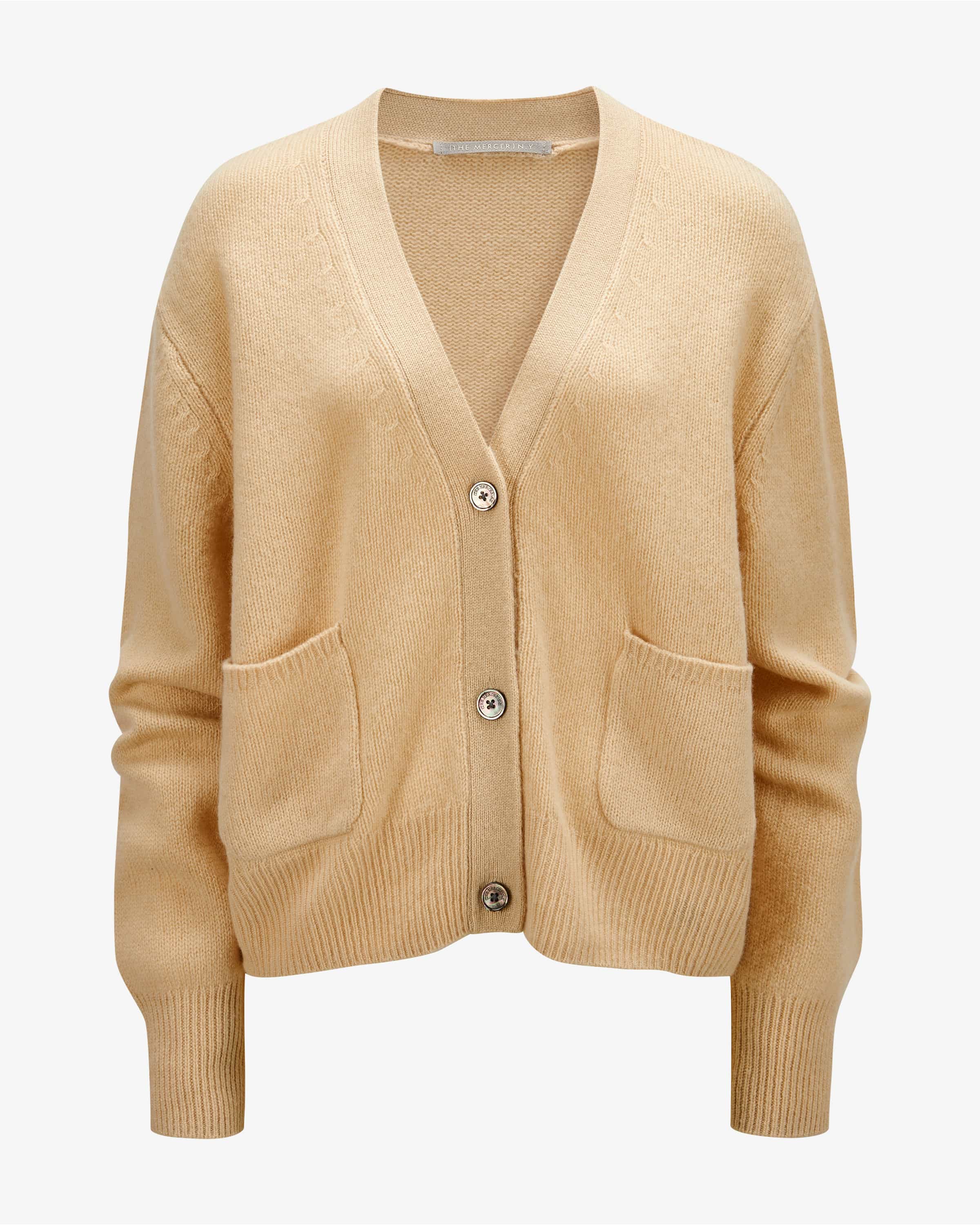Strickjacke für Damen von (The Mercer) N.Y. in Sand. Gegründet in New York, steht die Marke für minimalistischen Luxus mit urbanem Anspruch. Dieses Modell überzeugt dank der hochwertigen Cashmere-Verarbeitung mit besonders weichem Griff, während die changierenden Logo-Perlmuttknöpfe sowie die Stecktaschen einen modernen Casual-Favoriten kreieren.