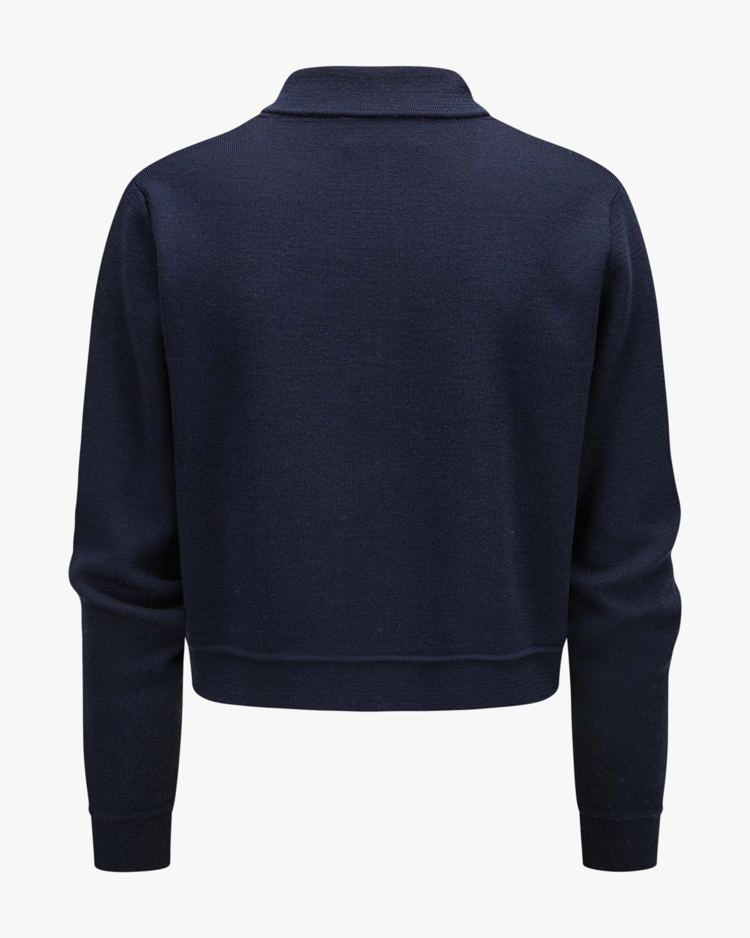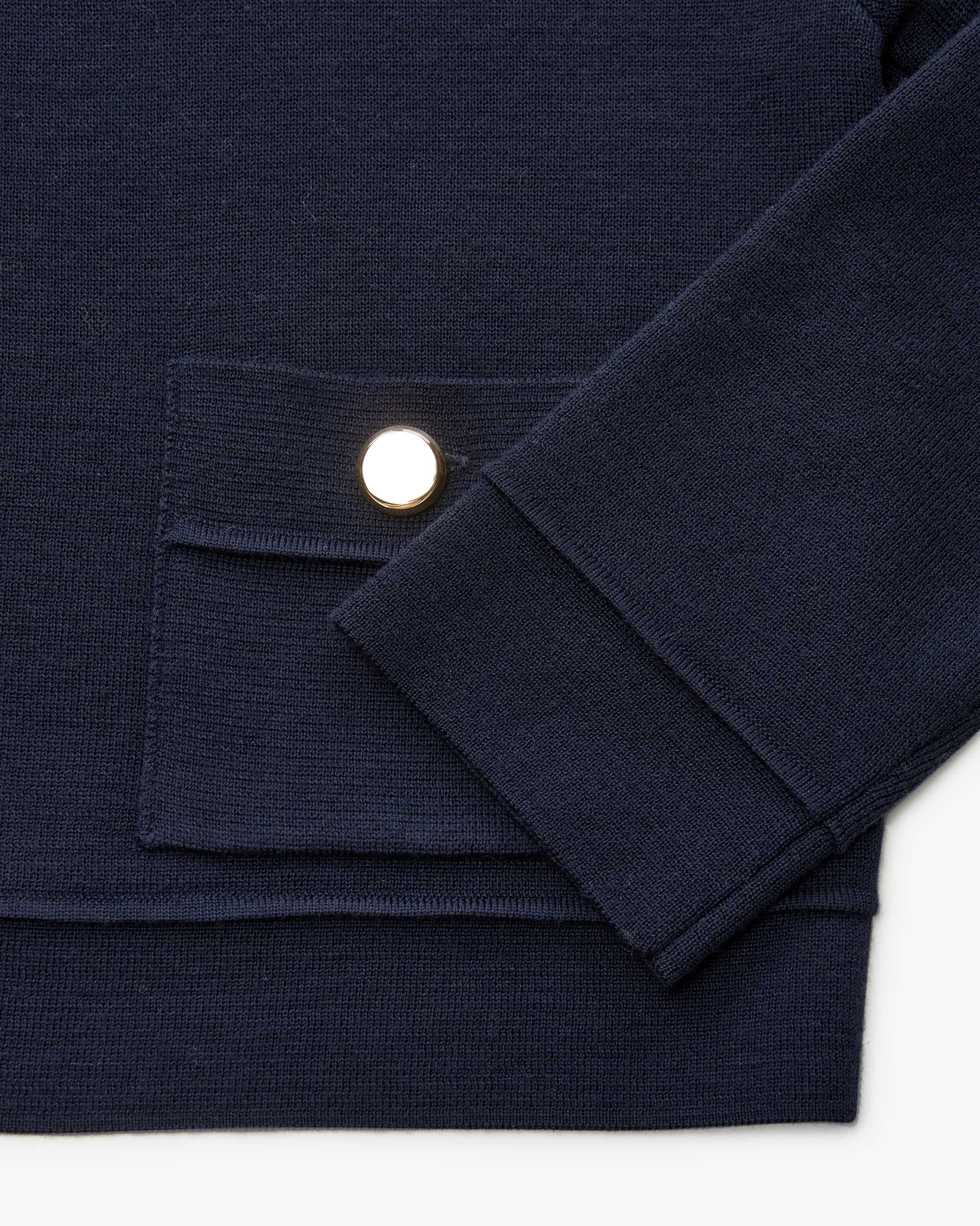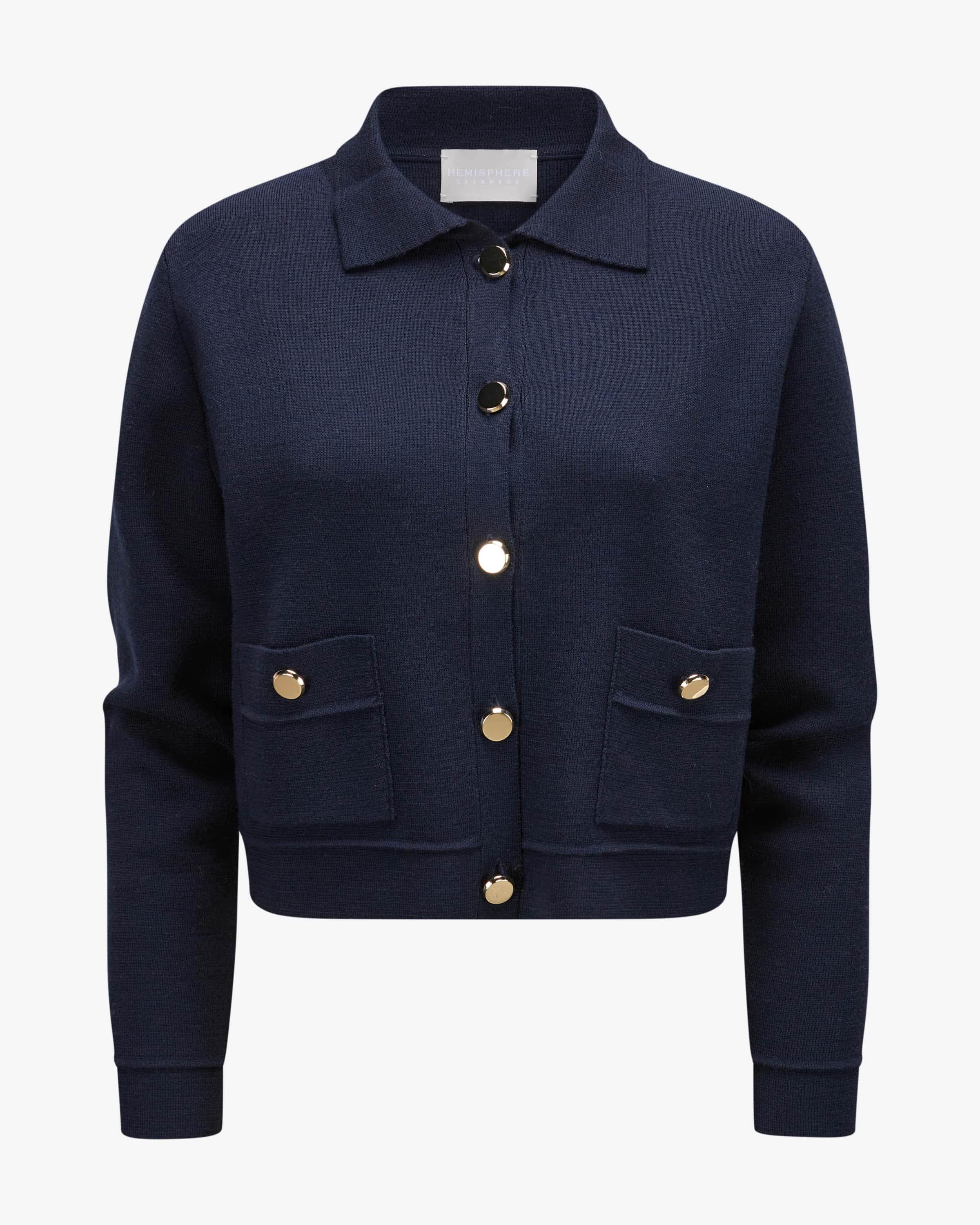 Strickjacke für Damen von Hemisphere in Nachtblau. Das Modell aus hochwertiger Merinowolle überzeugt mit angenehmen Tragemomenten, während der verkürzte Schnitt und die markanten goldfarbenen Knöpfe für besondere Akzente sorgen.