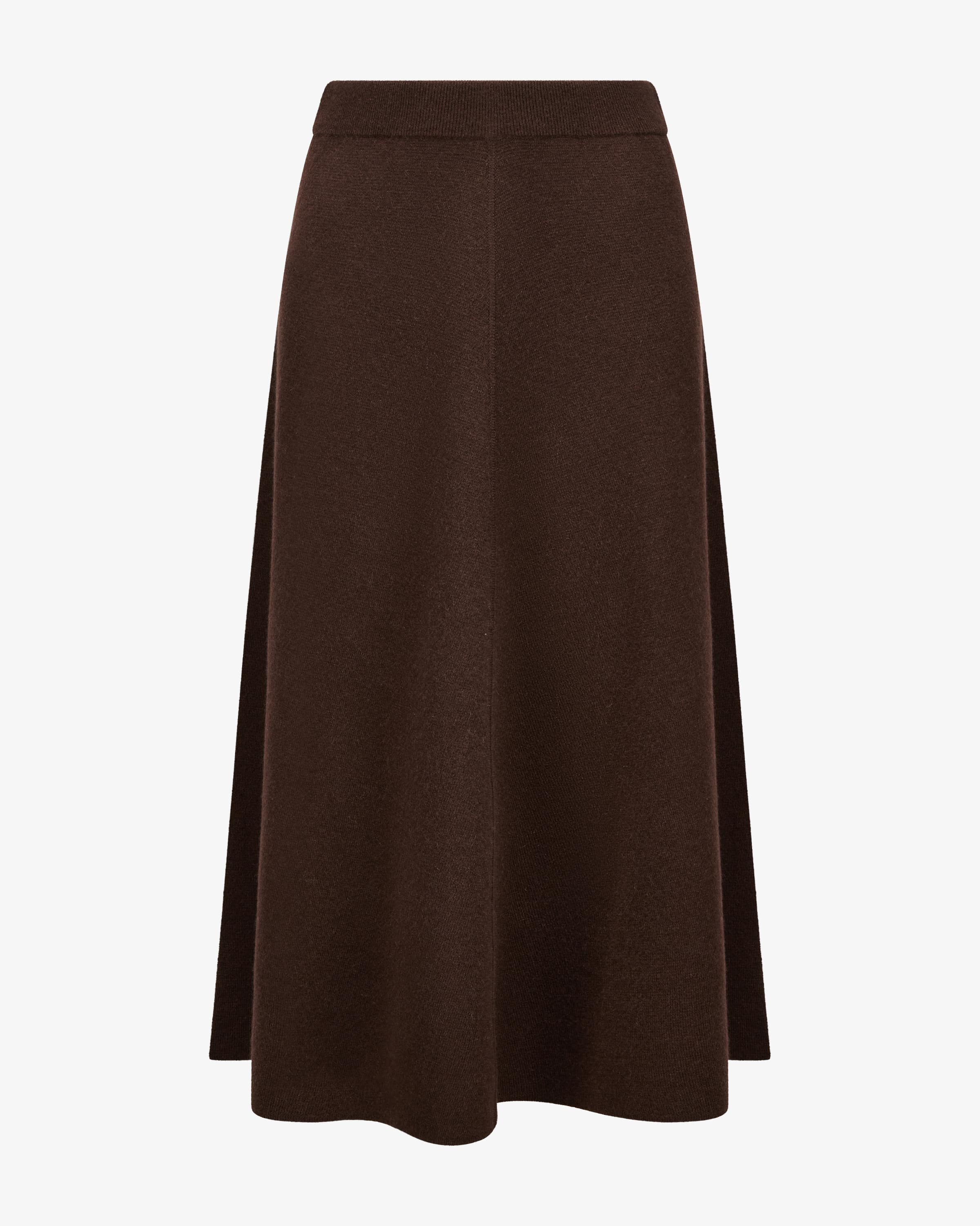 Strickrock für Damen von Allude in Dunkelbraun. Das Münchner Label wurde 1993 von Andrea Karg gegründet und ist bekannt für luxuriöse Strickmode aus edlem Cashmere. Auch dieses Modell überzeugt mit edlem Schurwoll-Cashmere-Mix in feiner Strick-Aufmachung, während die cleane Aufmachung und die ausgestellte Passform einen eleganten und femininen Look verleihen.