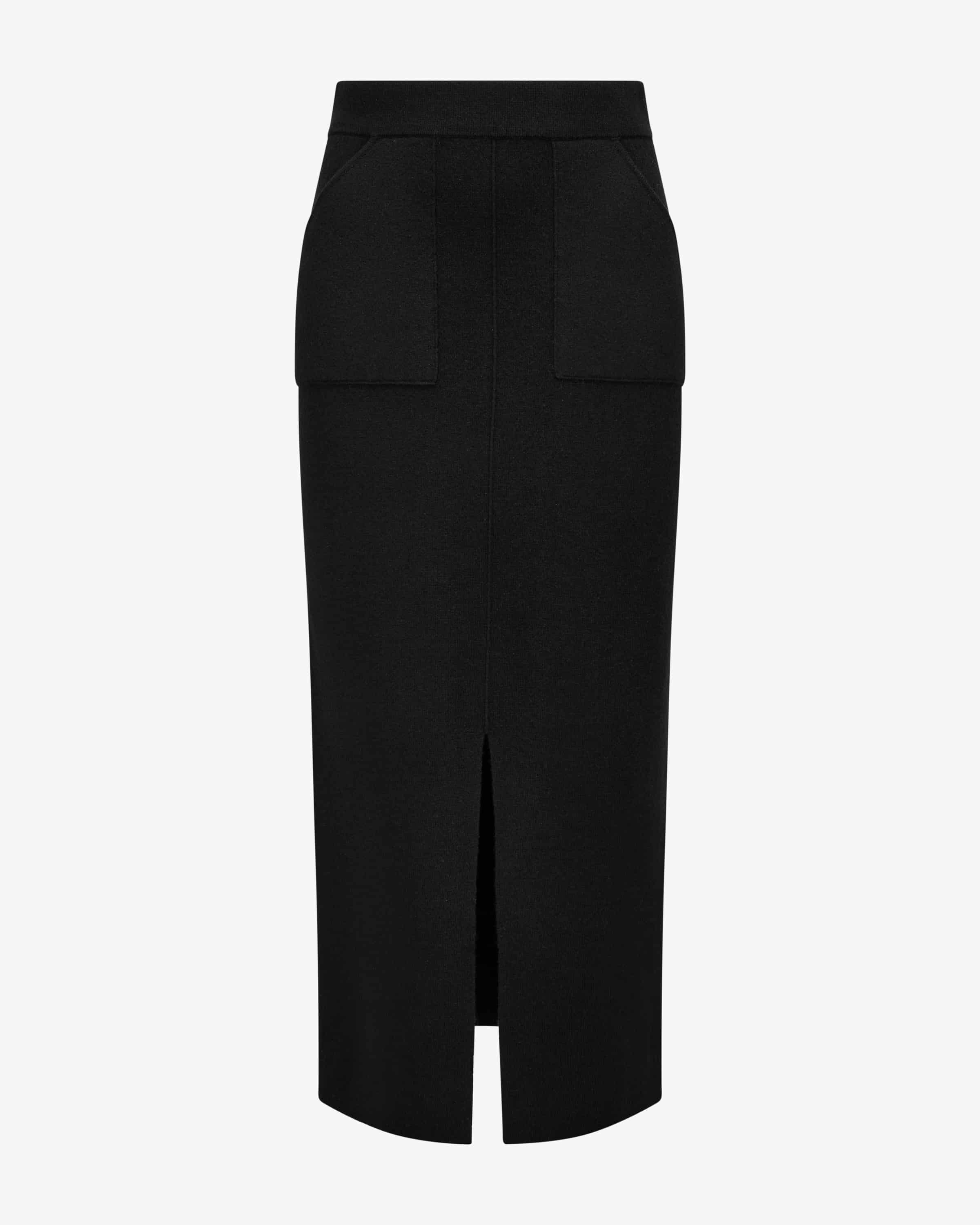 Strickrock für Damen von Allude in Schwarz. Das Münchner Label wurde 1993 von Andrea Karg gegründet und ist bekannt für luxuriöse Strickmode aus edlem Cashmere. Auch dieses Modell überzeugt mit edlem Schurwoll-Cashmere-Mix in feiner Strick-Aufmachung, während die cleane Aufmachung und der mittige Schlitz einen eleganten und femininen Look verleihen.