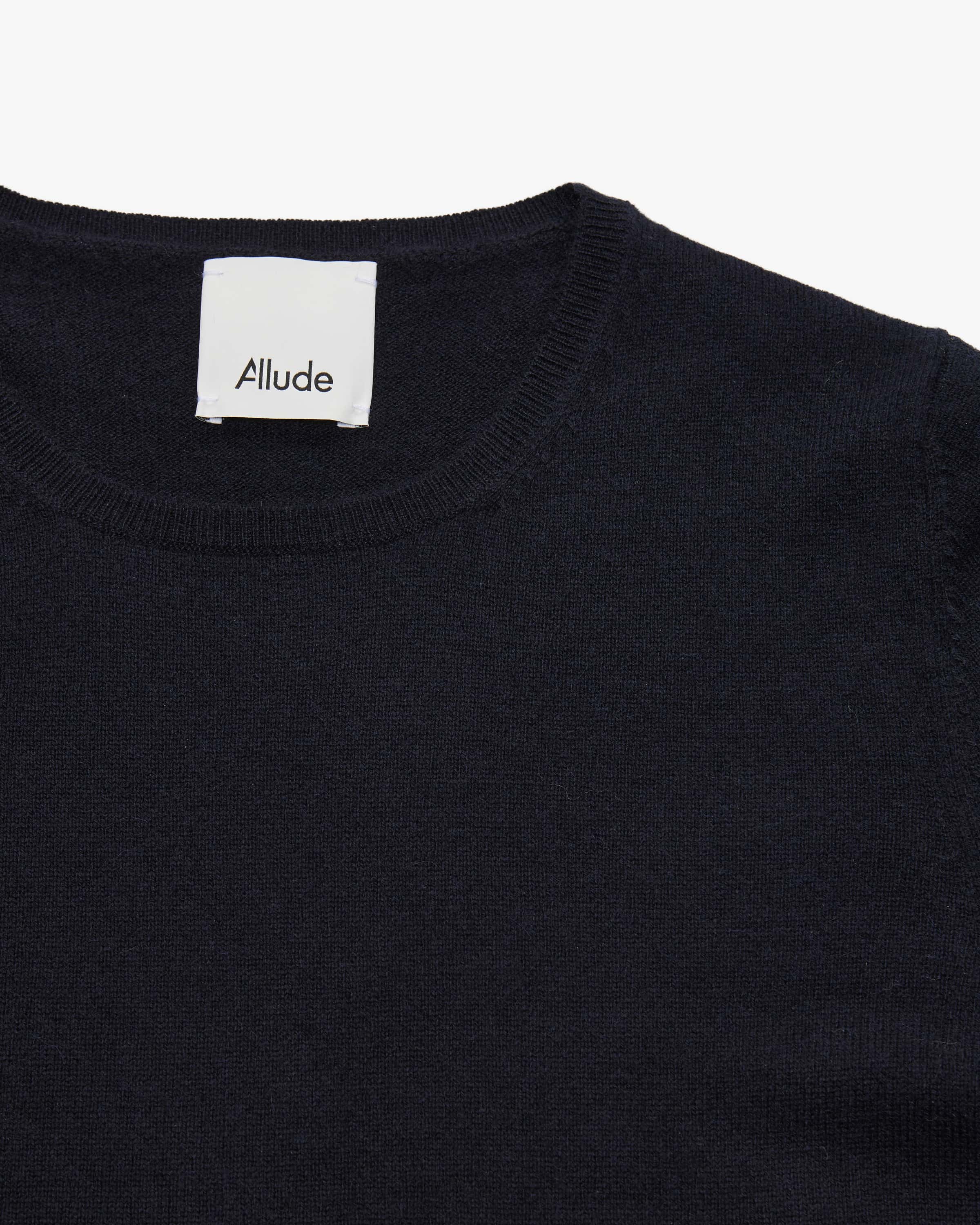 Strickshirt für Damen von Allude in Navy. Das Münchner Label wurde 1993 von Andrea und Christian Karg gegründet und ist bekannt für luxuriöse Strickmode aus edlem Kaschmir. Gefertigt aus luxuriöser Cashmere-Wolle, besticht das Modell mit besonders weichem Griff und leichter Strick-Haptik. Das cleane Design mit antaillierter Silhouette schafft dabei ein feminines Basic mit zeitlosem Charakter.