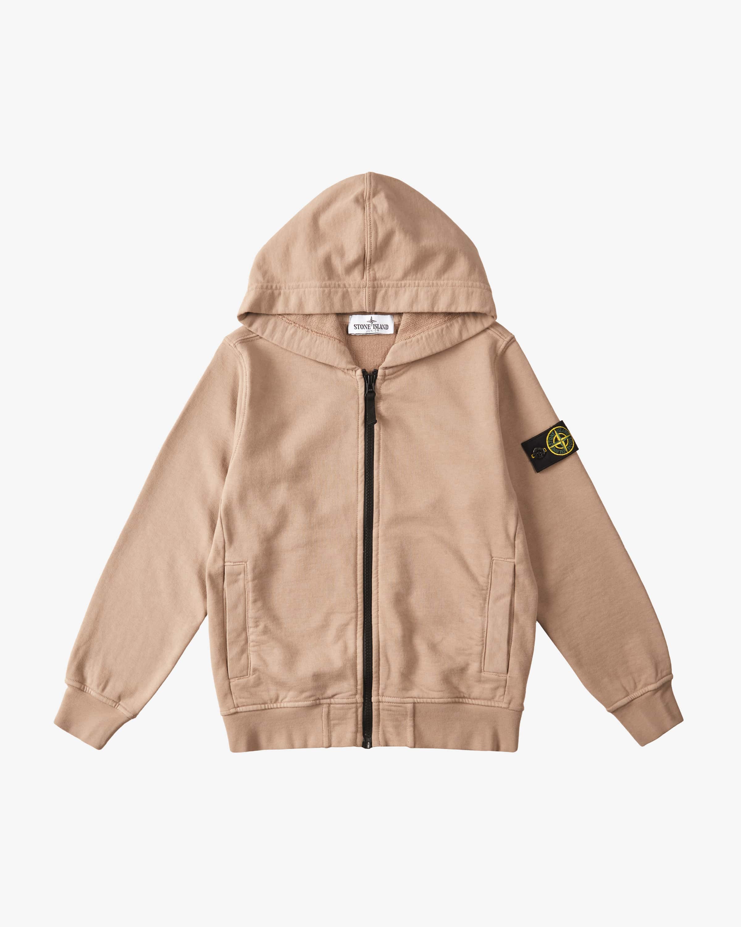 Sweatjacke für Jungen von Stone Island Junior in Beige. Die Mini-Version der ikonischen Sportswear-Marke – urban, technisch, cool. Das gerade geschnittene Modell aus angenehmer Baumwolle präsentiert sich in minimalistischer Aufmachung. Zugleich setzt die Logo-Plakette besondere Akzente.