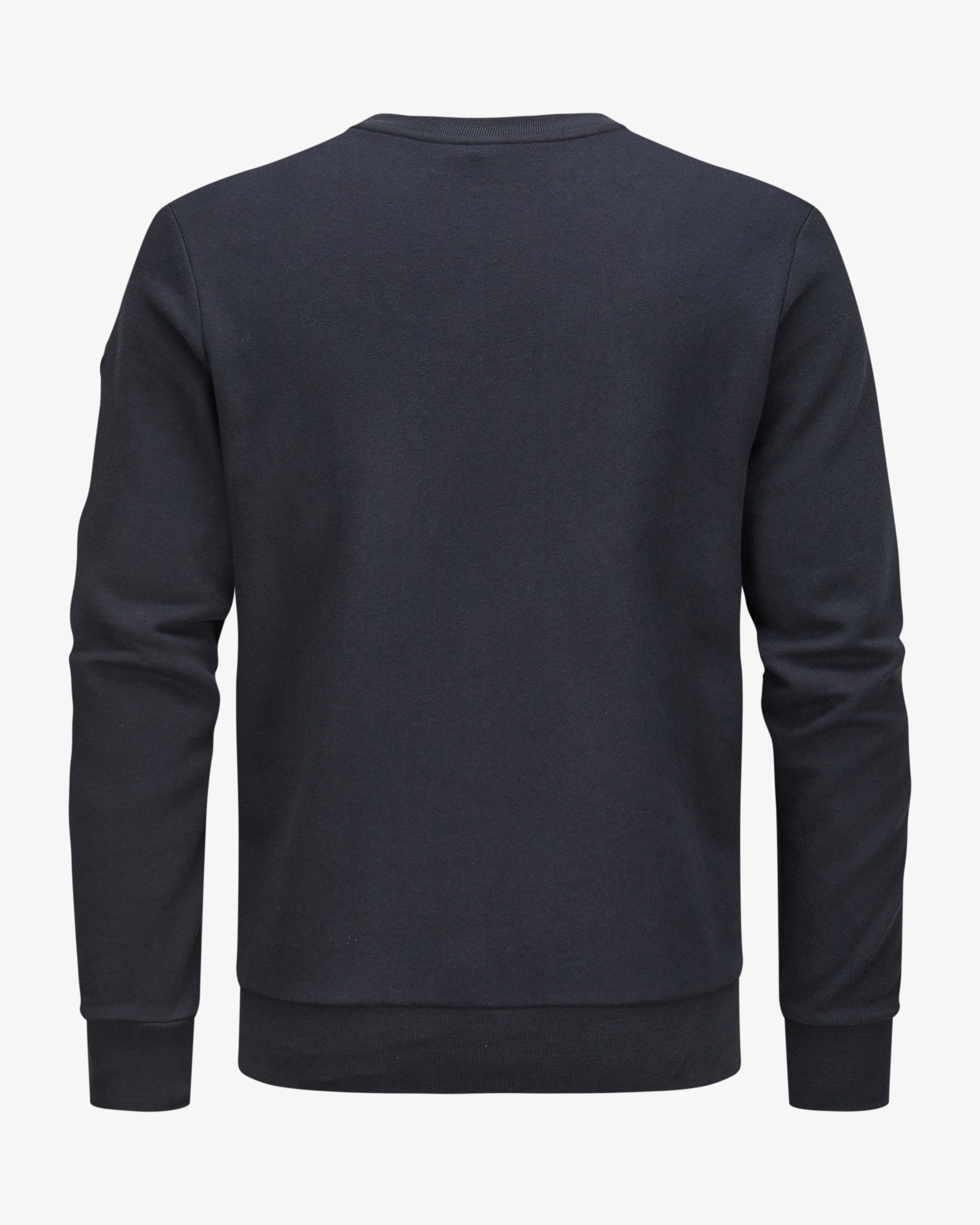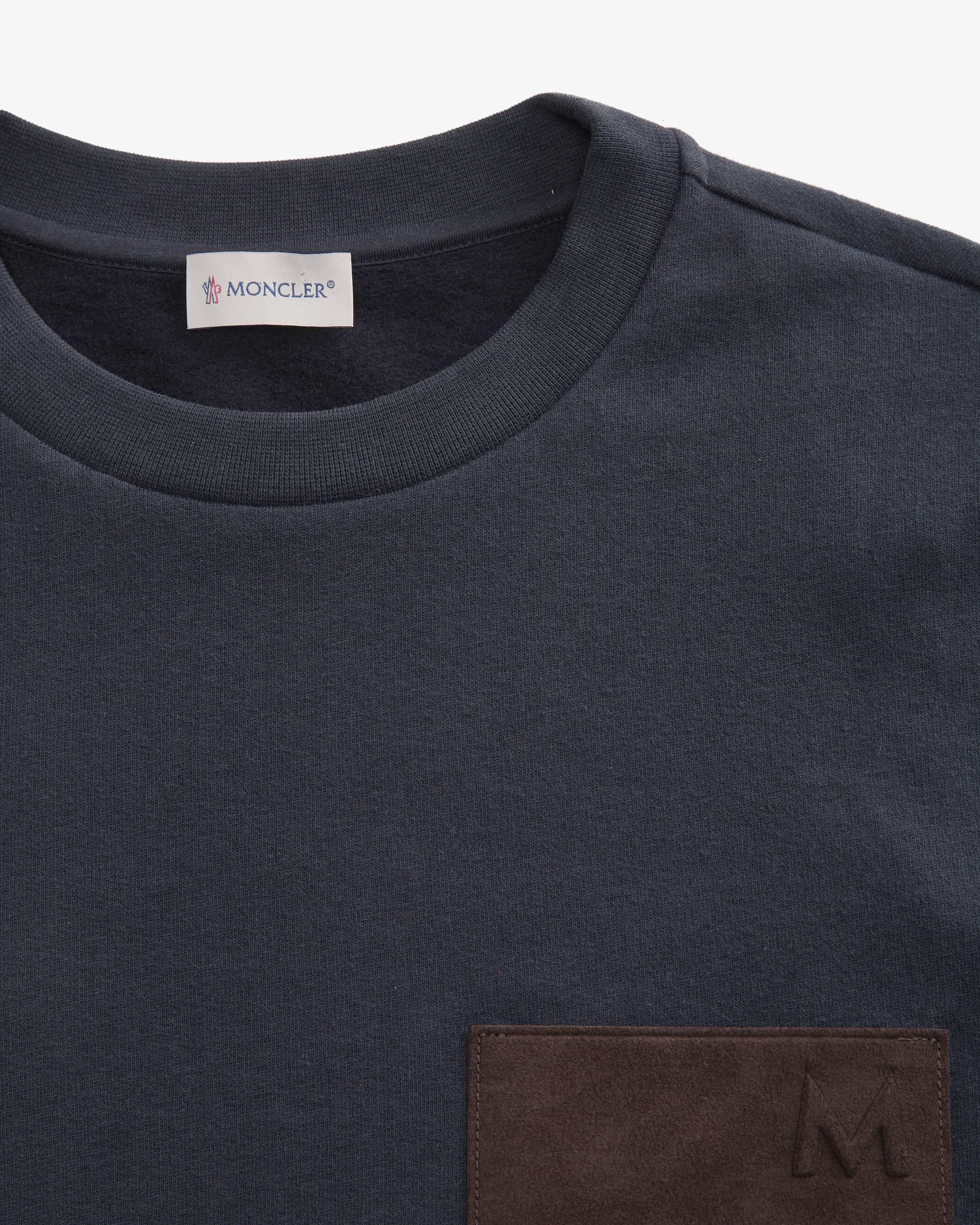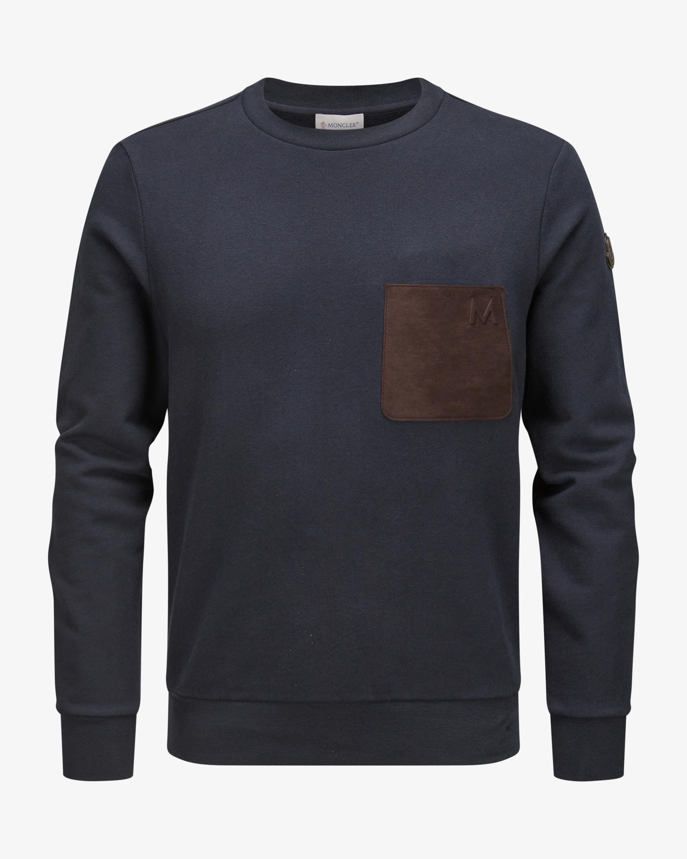 Sweatshirt für Herren von Moncler in Navy. Das Modell präsentiert sich dank der schlichten Schnittführung als vielseitiges Basic, während die Brusttasche aus hochwertigem Veloursleder modische Akzente setzen.