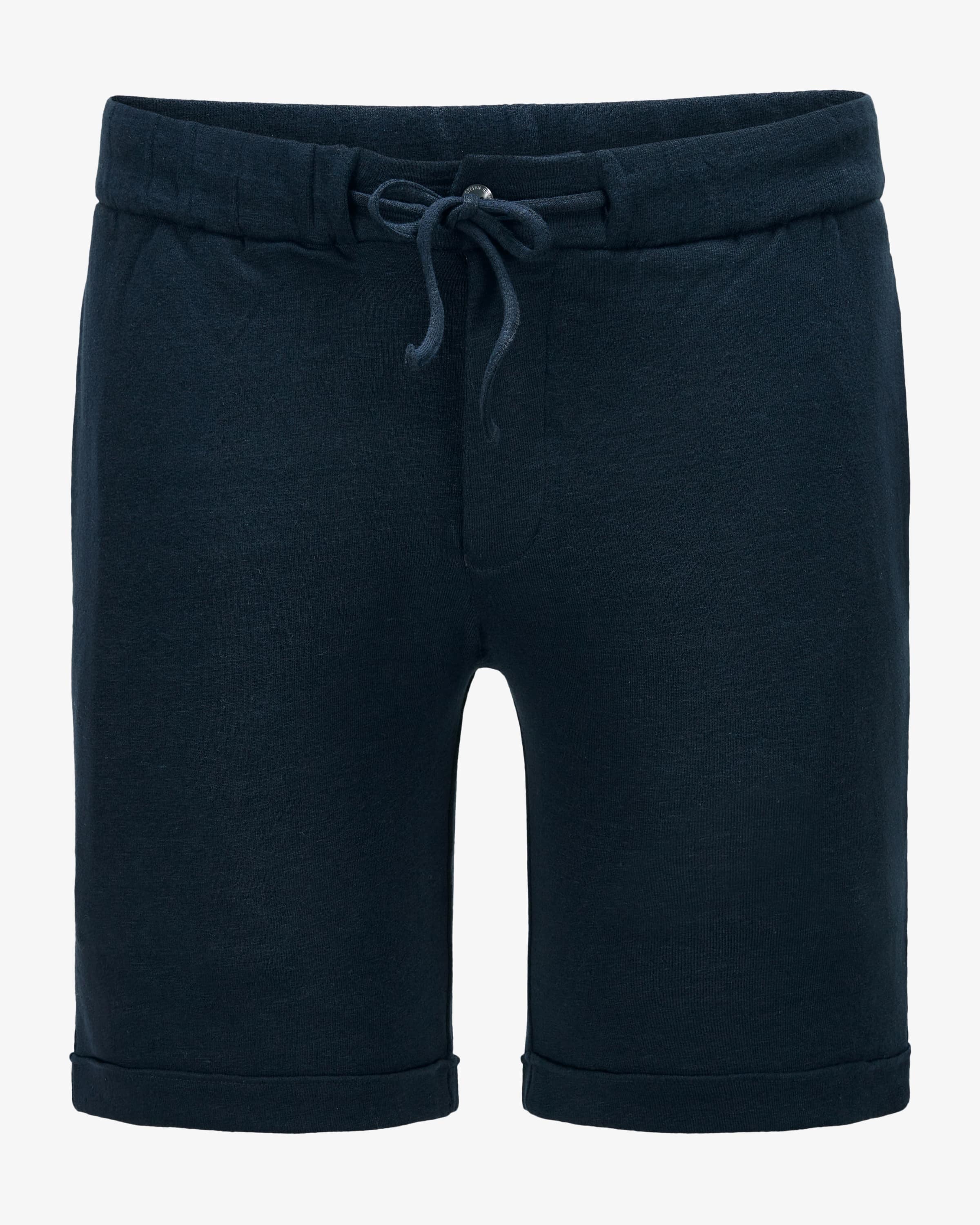 Sweatshort Jon für Herren von Stefan Brandt in Nachtblau. Deutsches Luxuslabel für puristische Jersey- und Strickmode – handwerklich präzise, kompromisslos edel. Dank der soften Leinen-Qualität präsentiert sich das Modell als angenehmer Begleiter und überzeugt dank der Taschen mit sportiven Look, während klassischen Details das maskuline Gesamtbild harmonisch abrunden.