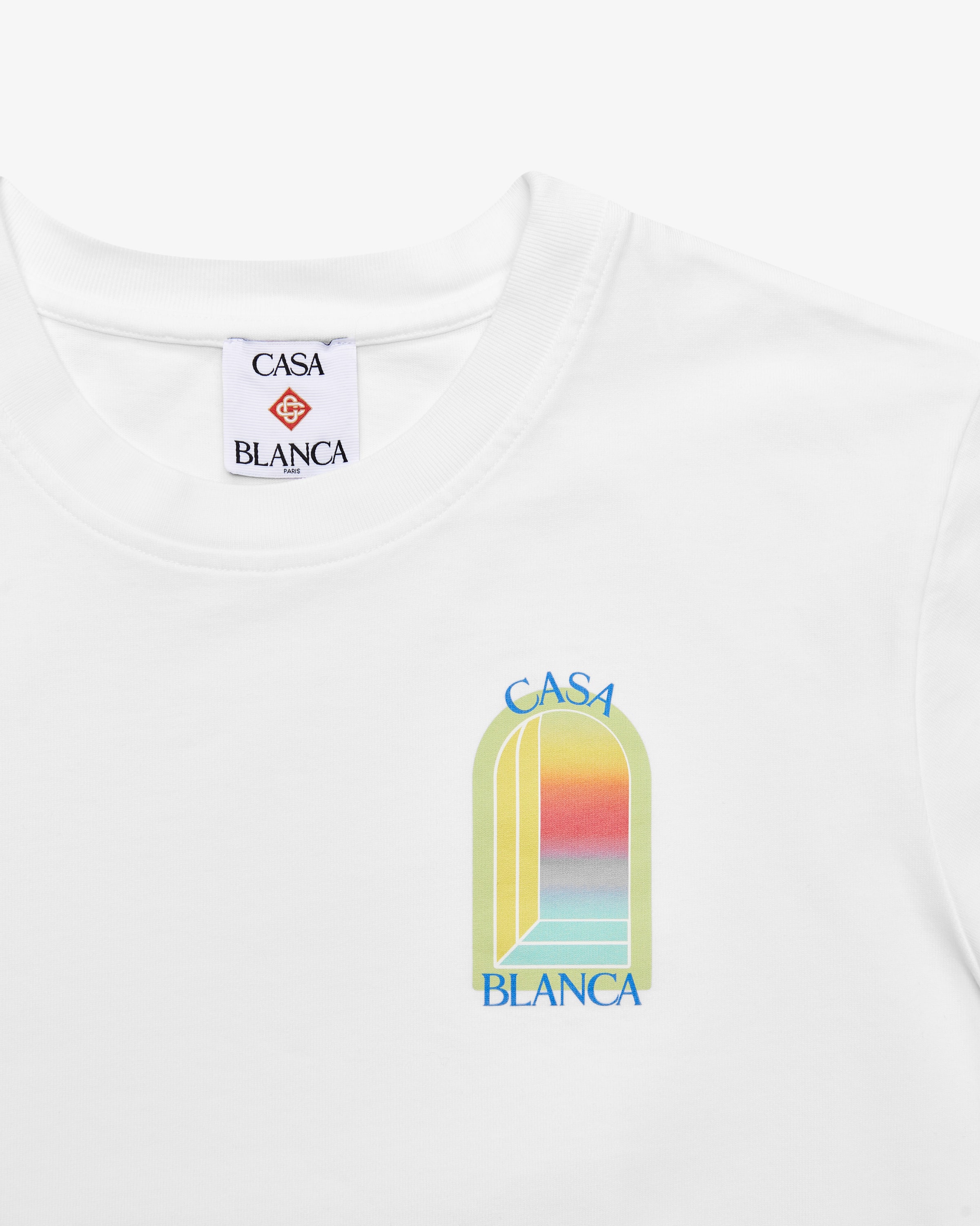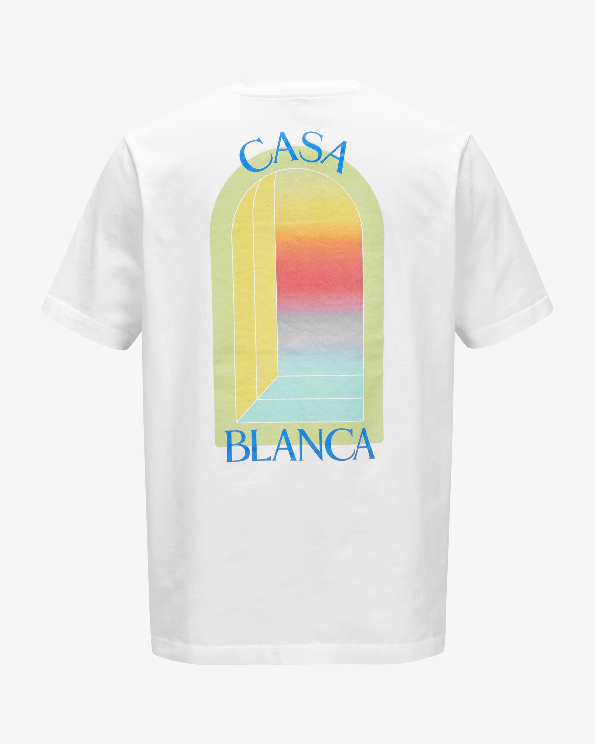 T-Shirt für Herren von Casablanca in Weiß und Bunt. Die Pariser Marke kombiniert Retro-Sportswear mit Luxusmode – inspiriert von Tenniskultur und Reiselust. Auch dieses Modell in fester Baumwoll-Qualität überzeugt mit angenehmen Tragemomenten, während der farbenfrohe Print den Gesamtlook modern abrundet. Ein besonderes Basic, welches sich vielseitig kombinieren lässt.