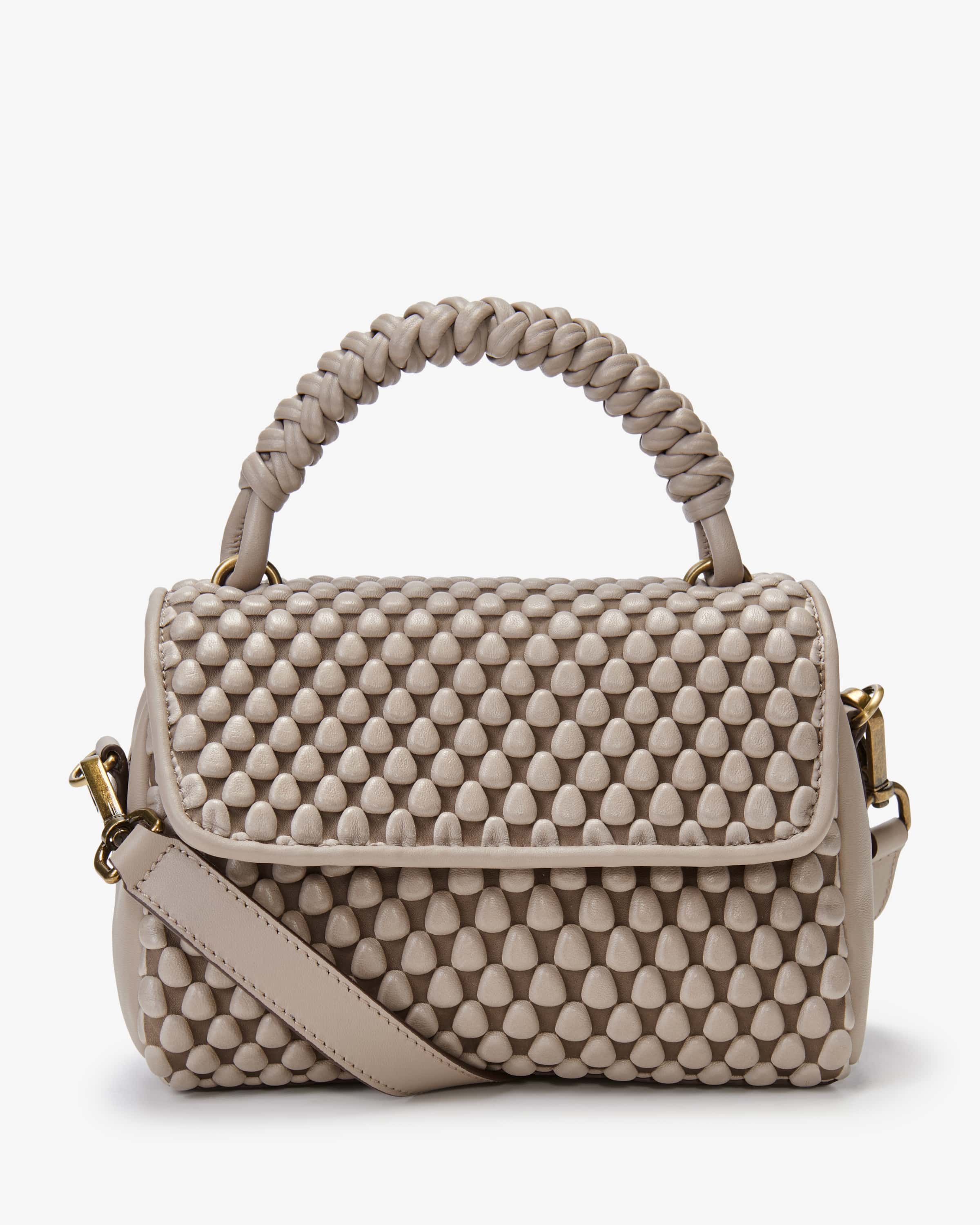 Umhängetasche Babushka von Tissa Fontaneda in Taupe. Das 2010 gegründete Label vereint Handwerkliches Können und Liebe zum Detail. Die sofort erkennbare „Bubble Bag“ ist zum Markenzeichen der Kollektion Tissa Fontaneda geworden. Auch dieses Modell begeistert in charakteristischer Aufmachung mit strukturierter Optik, während die kompakte Form mit abnehmbarem Schulterriemen einen modernen Begleiter für Events kreiert.