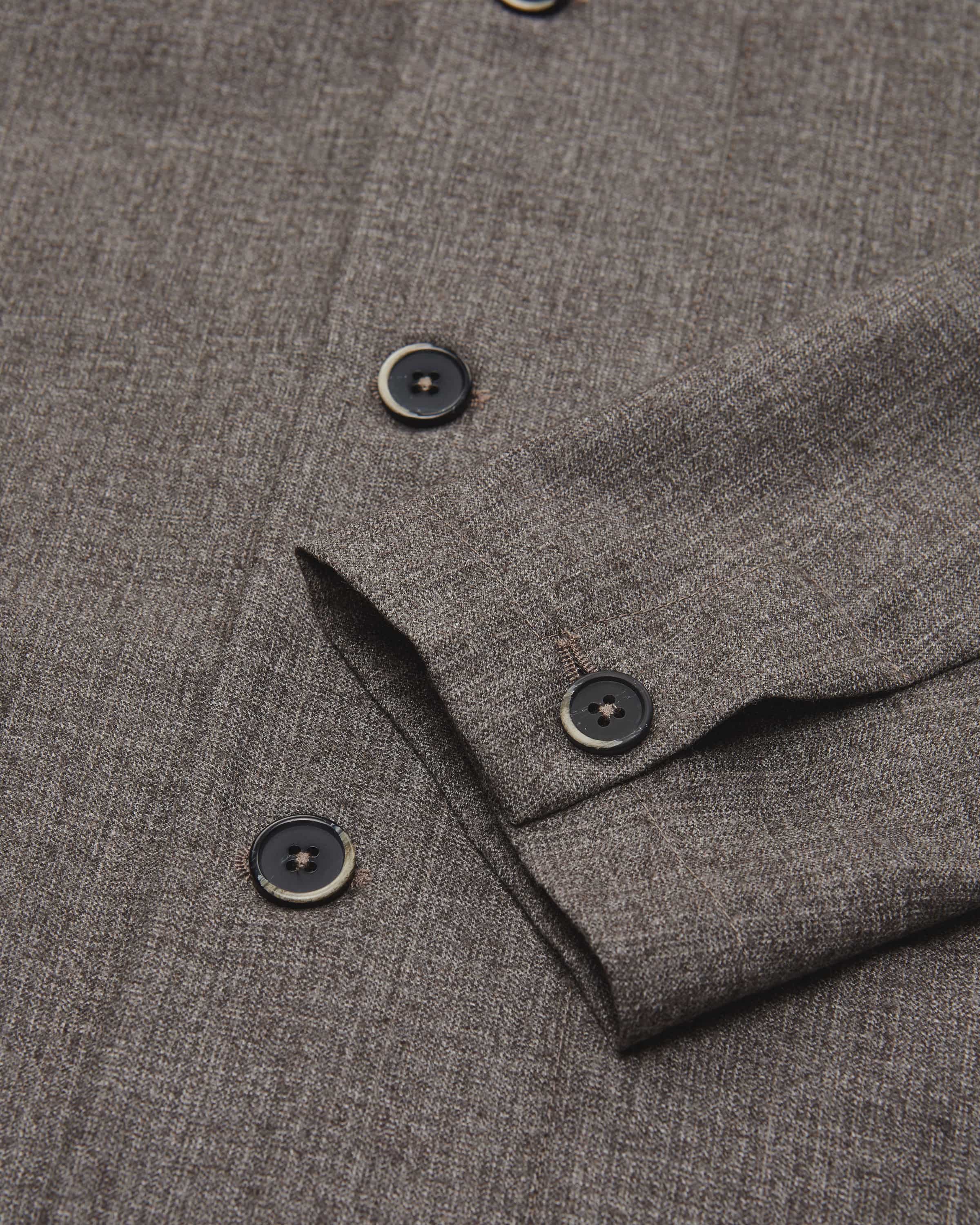 Visal Bita Overshirt für Herren von Barena in Stein. Das Modell aus leichter Schurwoll-Qualität begeistert mit der leicht melierten Optik, welche in Kombination mit den markanten Stecktaschen einen modischen Casual-Begleiter im Overshirt-Look schafft.