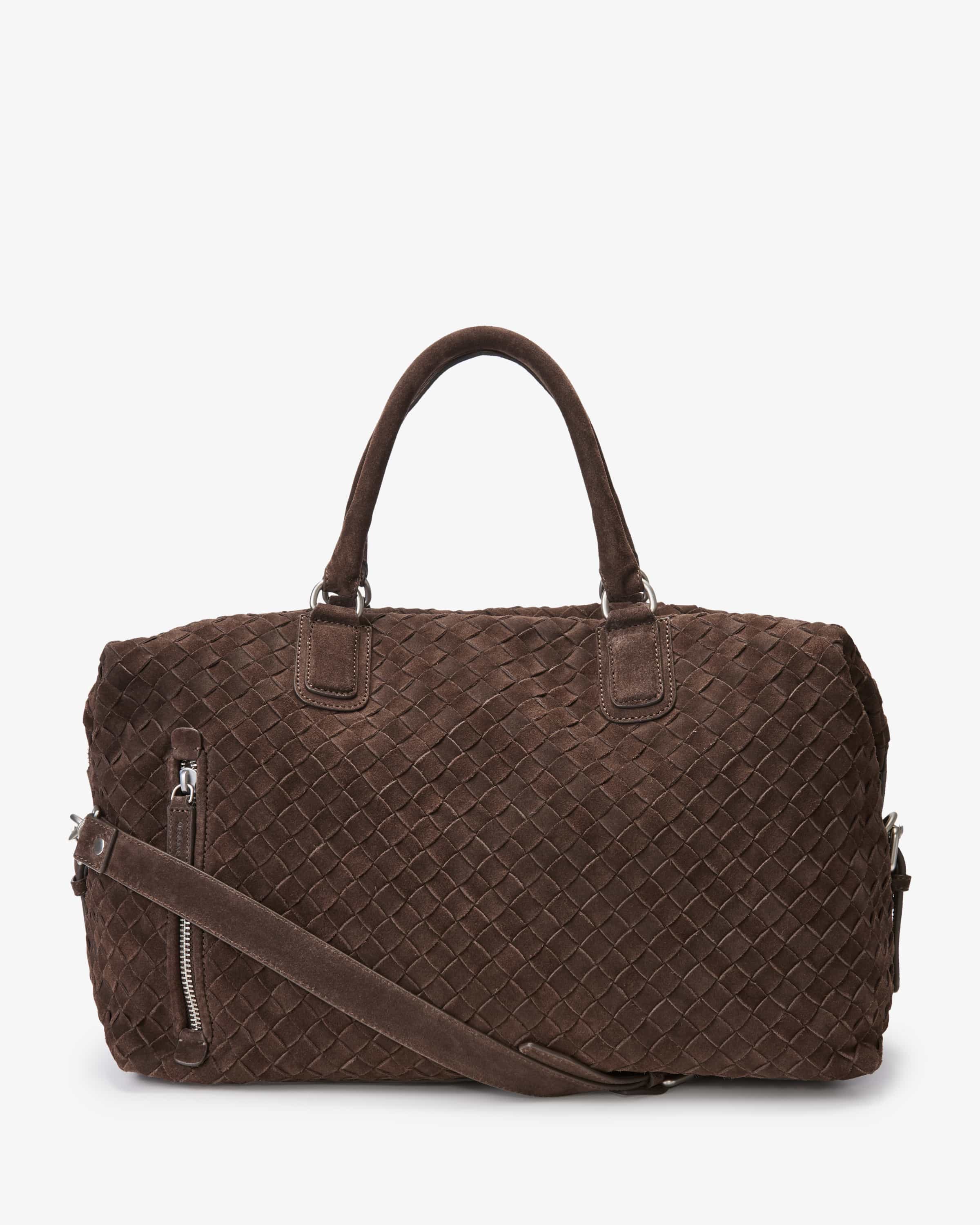 Weekender für Herren von Officine Creative in Braun. Ein edler Begleiter auf Reisen - Die Tasche präsentiert sich dank geflochtenem Veloursleder-Design in stilvoller Aufmachung und bietet dank dem geräumigen Hauptfach mit praktischen Innentaschen genug Platz für all Ihre Essentials – egal ob im Business-Kontext oder privat.