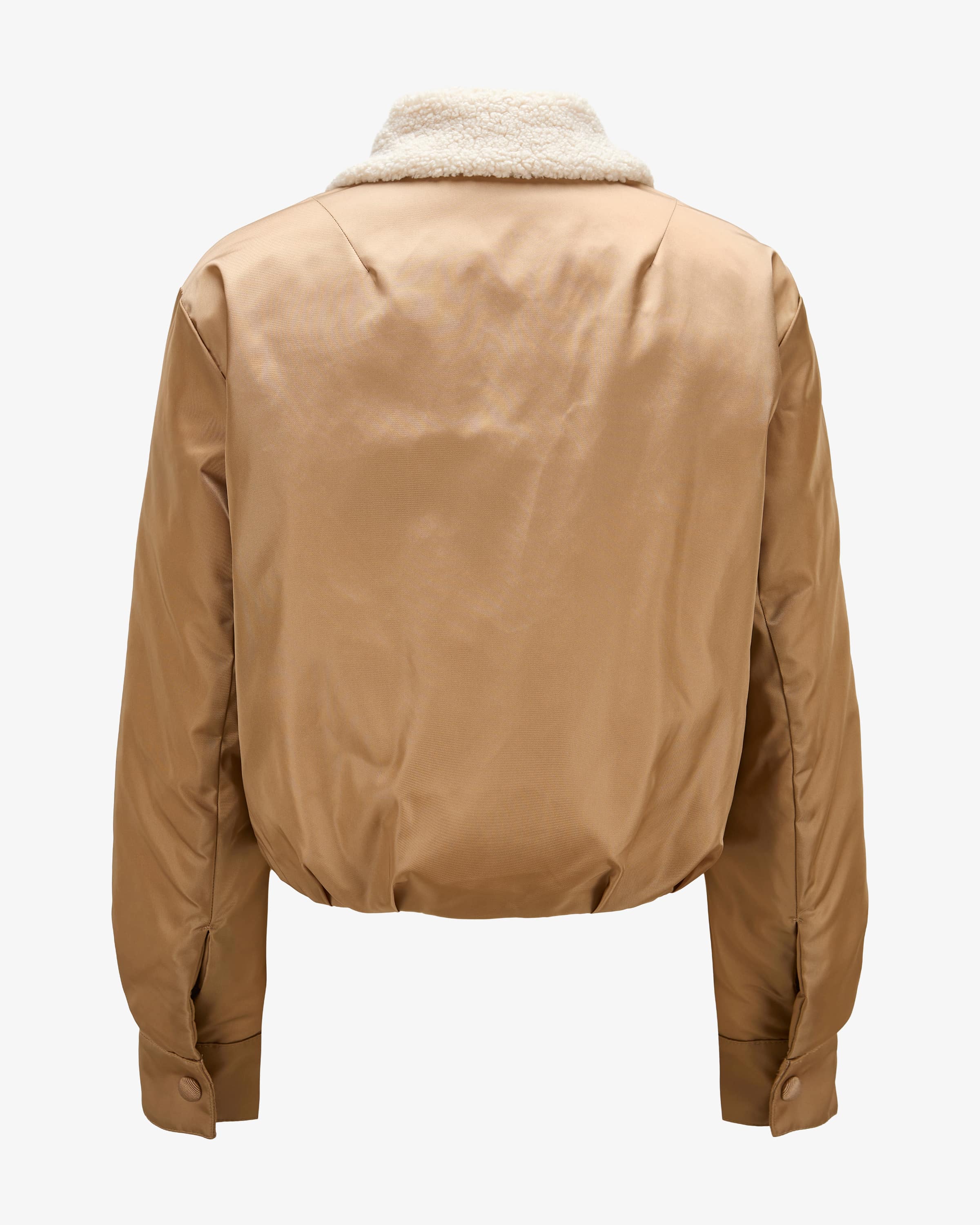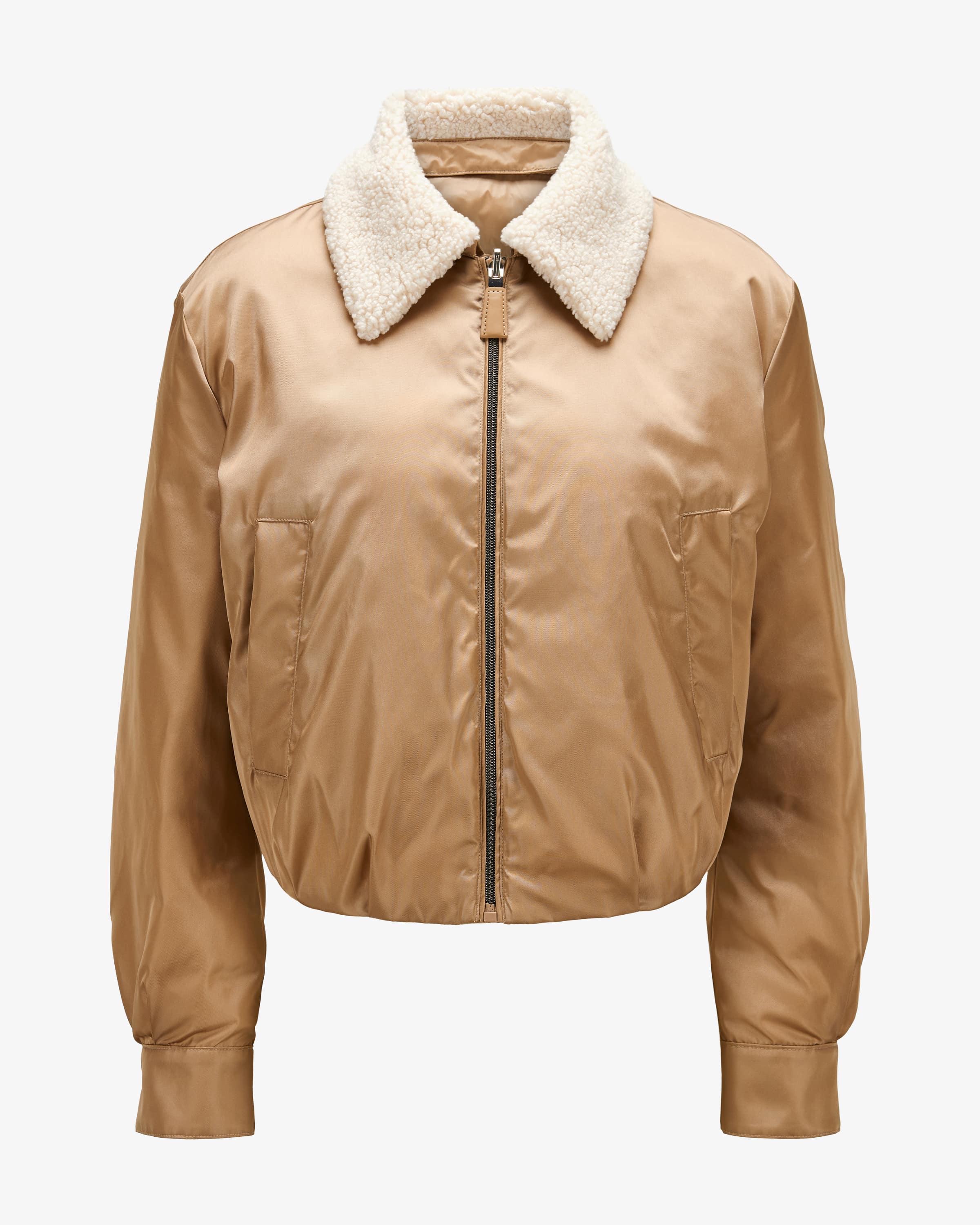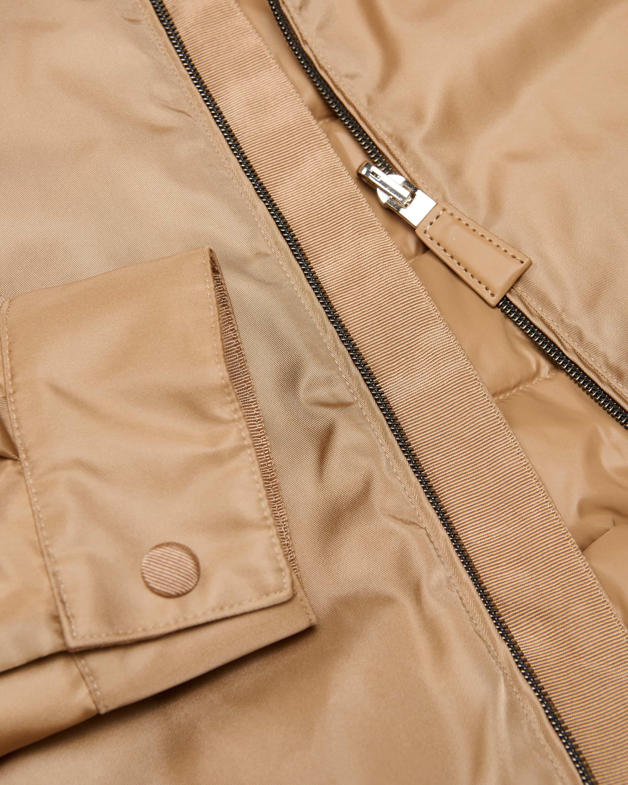 Wende-Daunenjacke für Damen von Luisa Cerano in Camel. Das deutsche Label mit Fokus auf elegante Alltagstauglichkeit, überzeugt mit hochwertigen Stoffen und lässiger Feminität. Dieses Modell mit leichter Daunen-Feder-Wattierung verspricht dank der Wendefunktion mit abnehmbarem Fake-Fur-Kragen individuelle Tragemöglichkeiten, wobei die glatte, changierende Seite ein legeres Bomberjacken-Flair ausstrahlt.