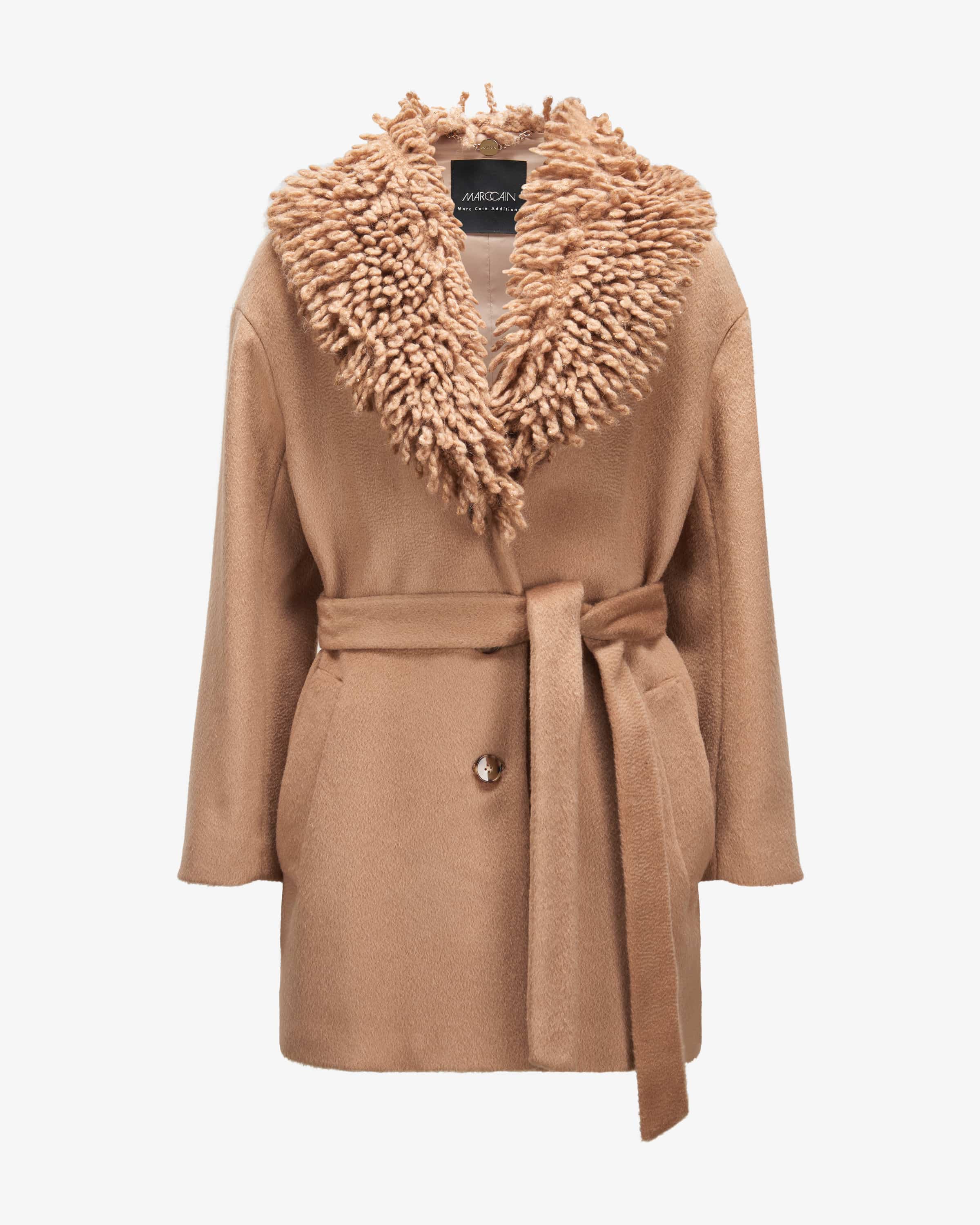 Wollmantel für Damen von Marc Cain in Camel. Mit klassischen Details und angenehmer Haptik dank hochwertigem Woll-Mix überzeugt der Mantel im Casual Design, während der markante Schalkragen in originellem Strick-Dessin mit modischen Akzenten punktet.